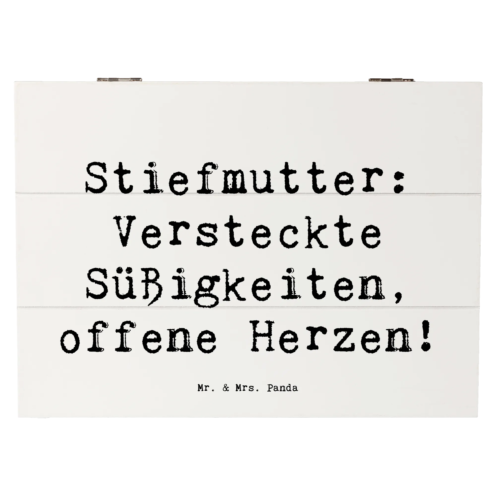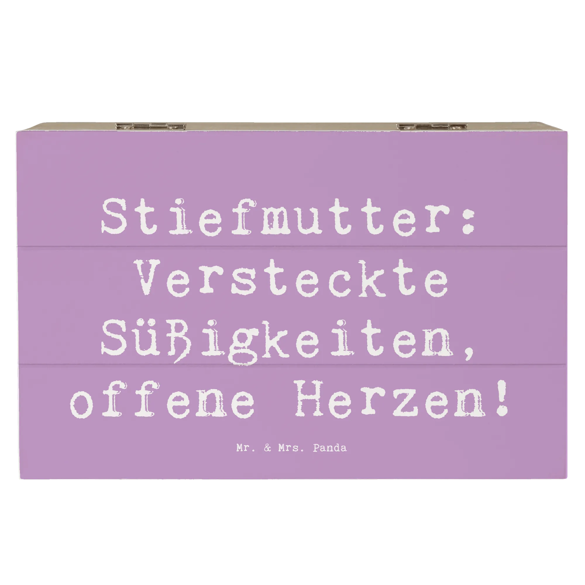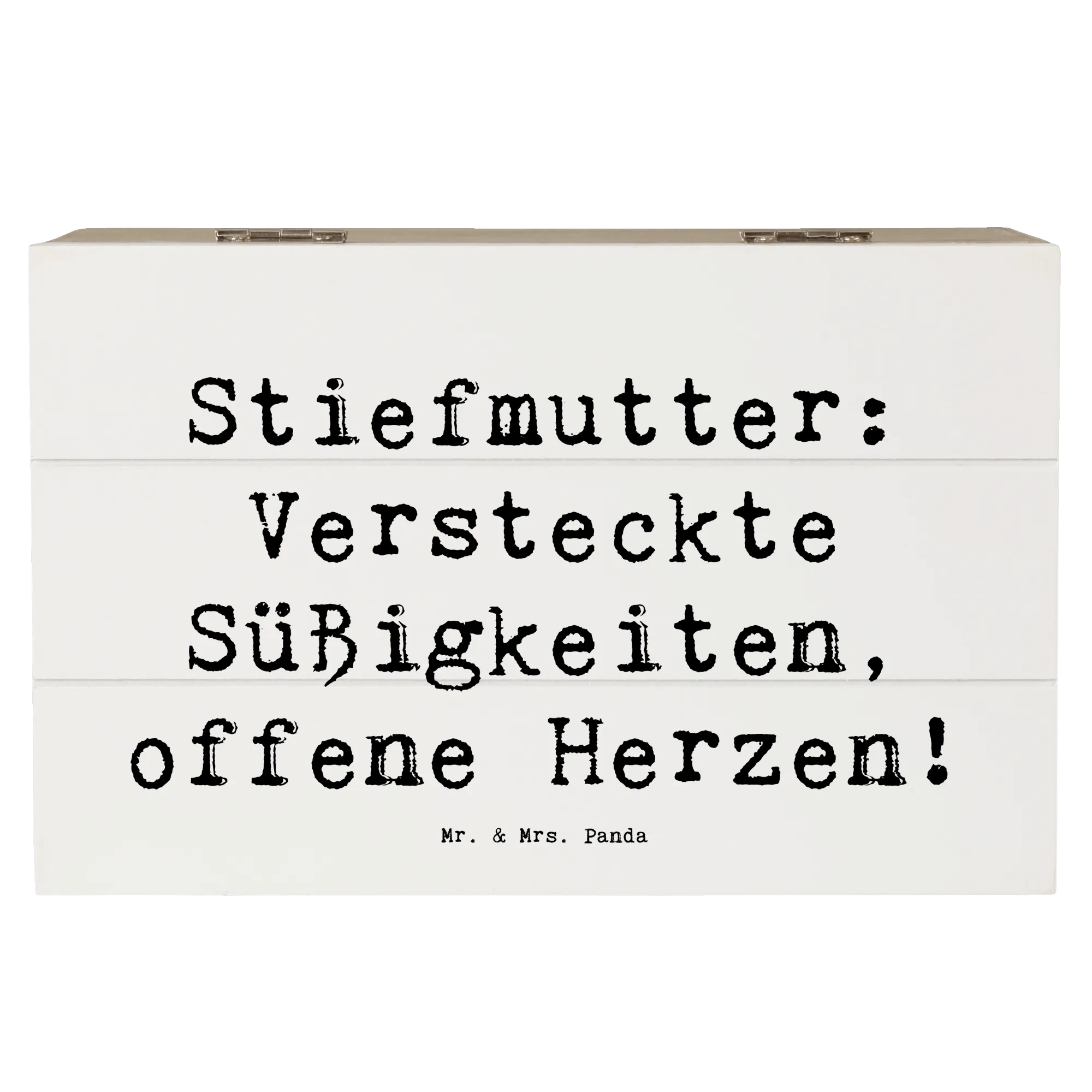 Die wunderschöne Holzkiste von Mr. & Mrs. Panda ist das perfekte Geschenk für all jene, die eine besondere Stiefmutter in ihrem Leben haben. Mit dem liebevollen Motiv 'Stiefmutter: Versteckte Süßigkeiten, offene Herzen!' wird diese Kiste zu einem echten Hingucker.