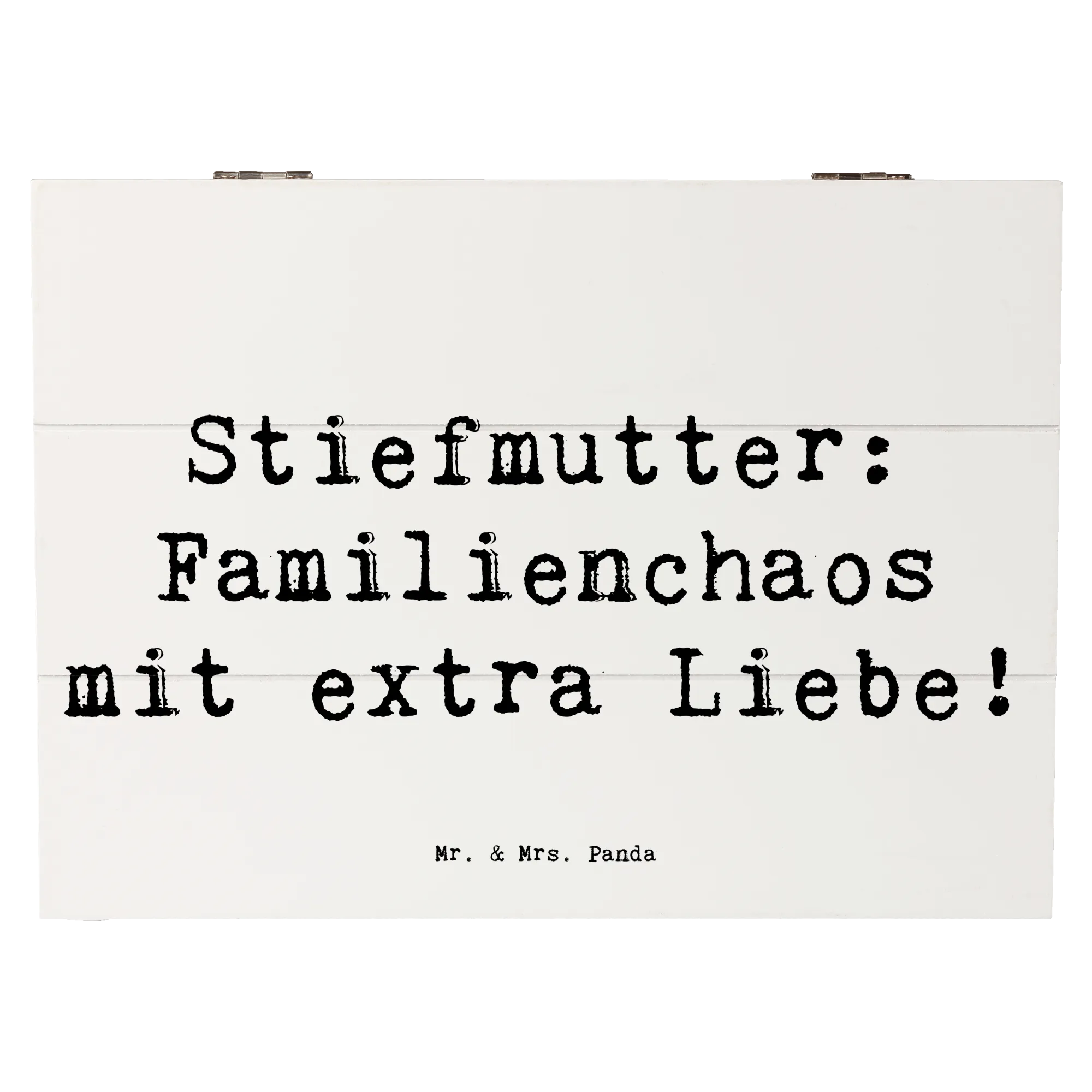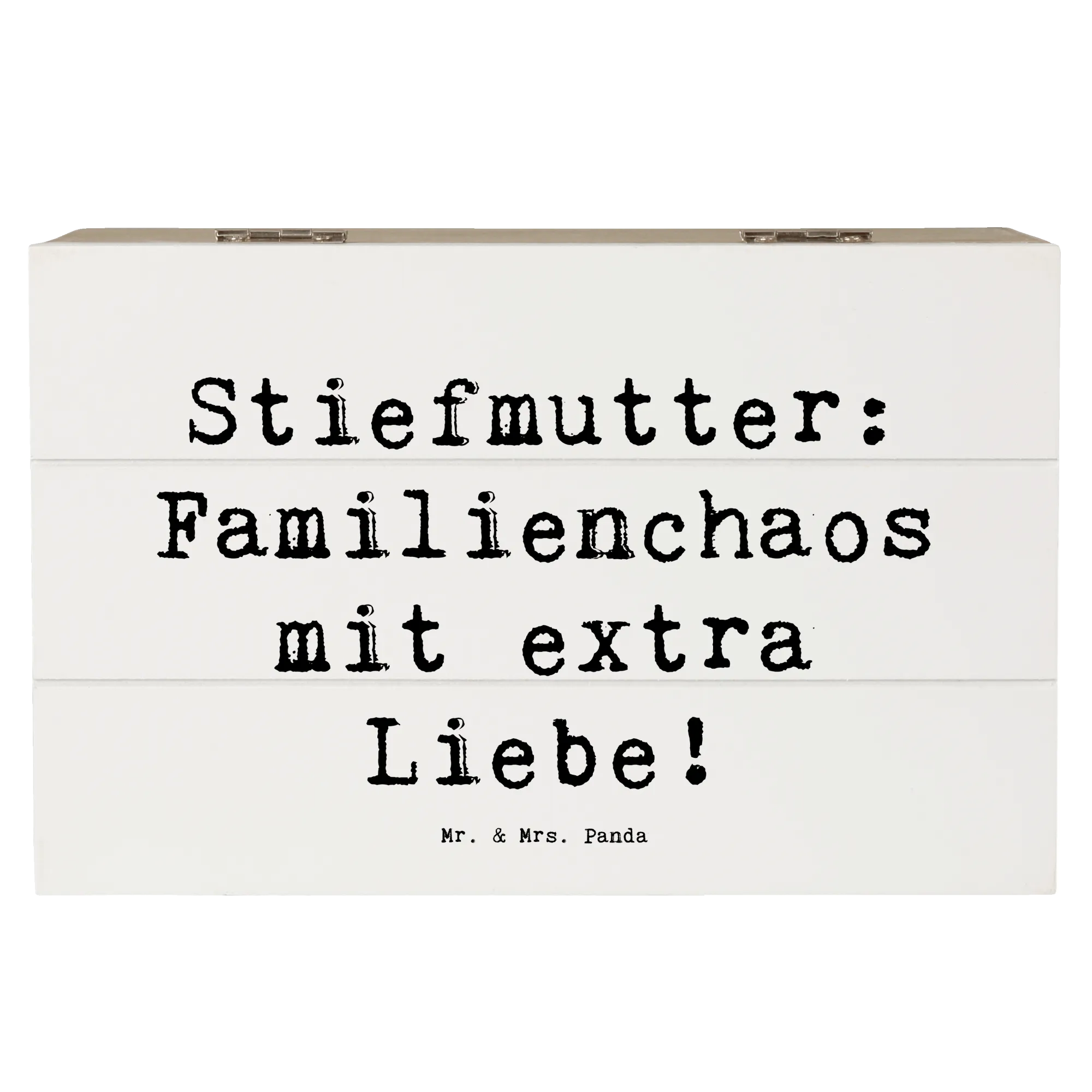 Die wunderschöne Holzkiste von Mr. & Mrs. Panda mit dem liebevollen Motiv "Stiefmutter: Familienchaos mit extra Liebe!" ist das perfekte Geschenk für jede Stiefmutter und ihre Patchwork-Familie. Diese Kiste ist mehr als nur ein einfaches Aufbewahrungsbehältnis; sie ist ein Ort, an dem wertvolle Erinnerungen und Schätze aufbewahrt werden können.