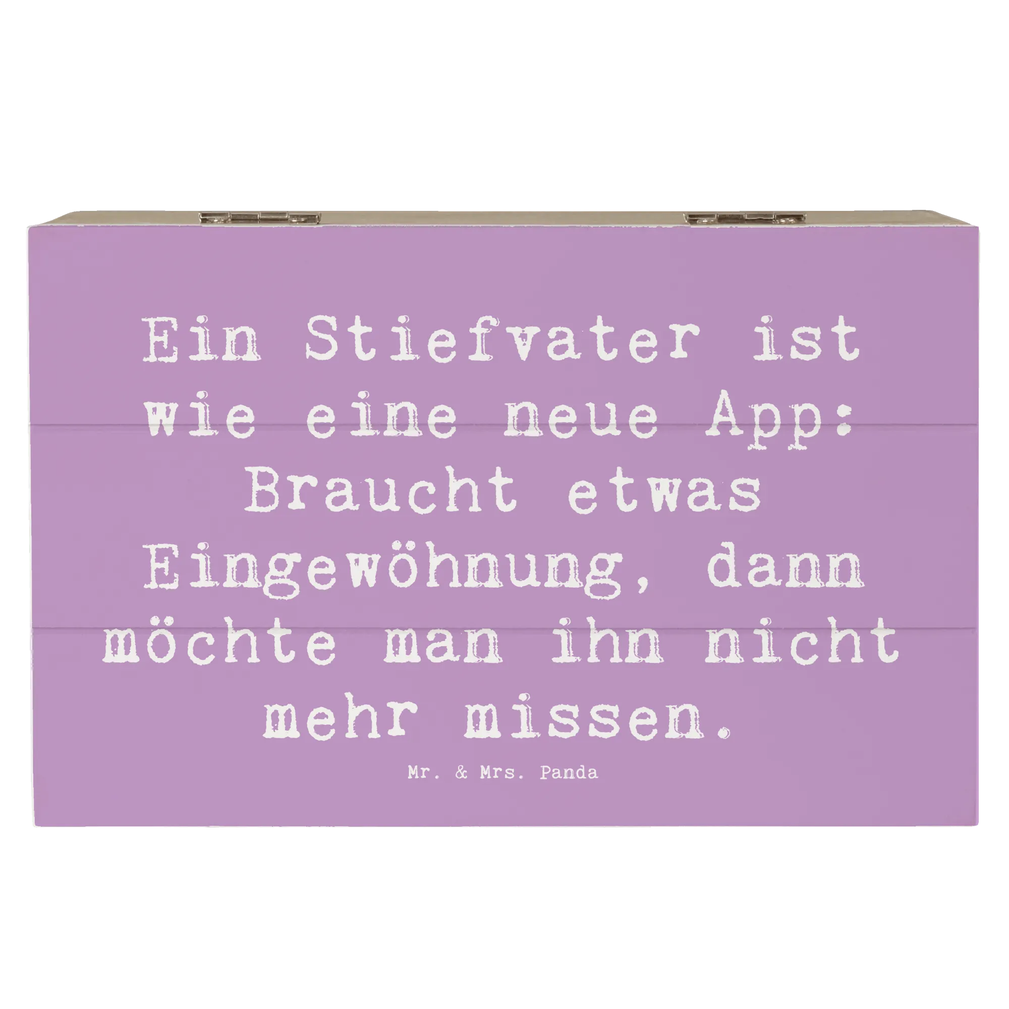 Entdecke die liebevoll gestaltete Holzkiste von Mr. & Mrs. Panda! Diese wunderschöne Schatzkiste kommt mit dem charmanten Motiv "Stiefvater: Er kam, wir sahen ihn, Mama liebte ihn. Familiengeschichte neugeschrieben." Eine ideale Aufbewahrungsmöglichkeit für Erinnerungen, sei es zu festlichen Anlässen, für Kindheitserinnerungen oder als sichere Aufbewahrung für Fotos.