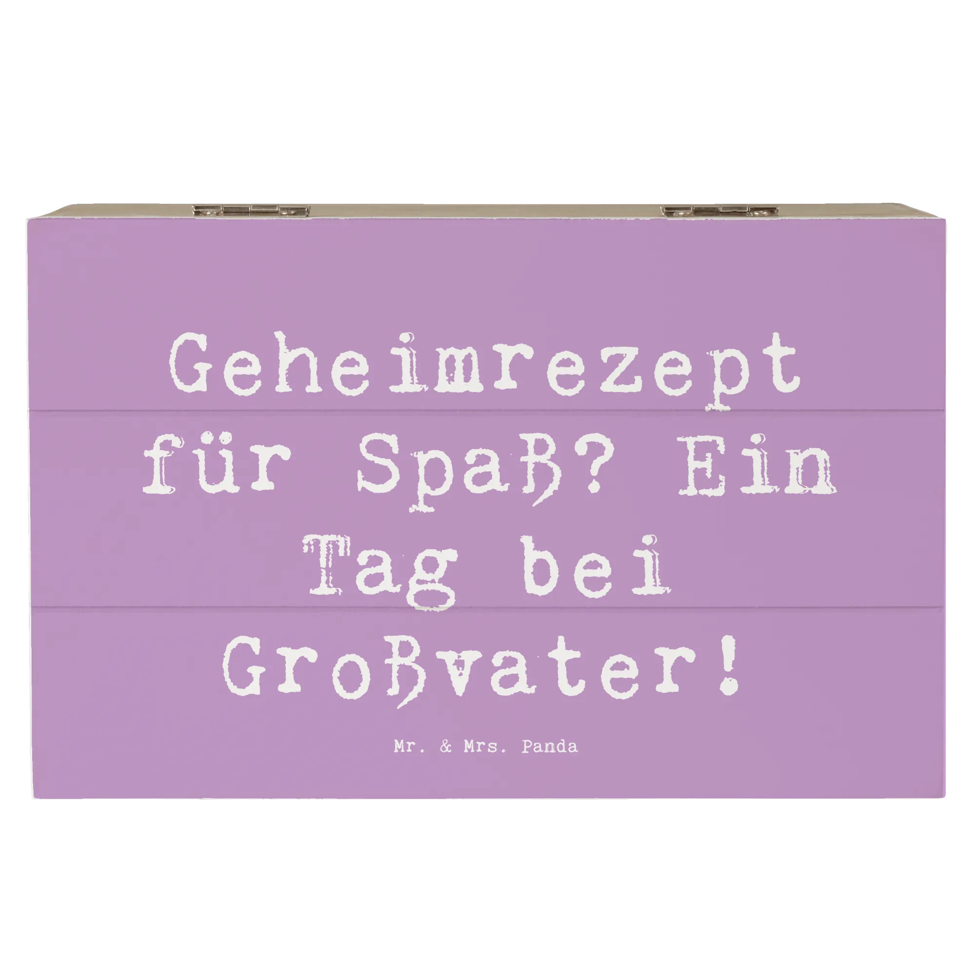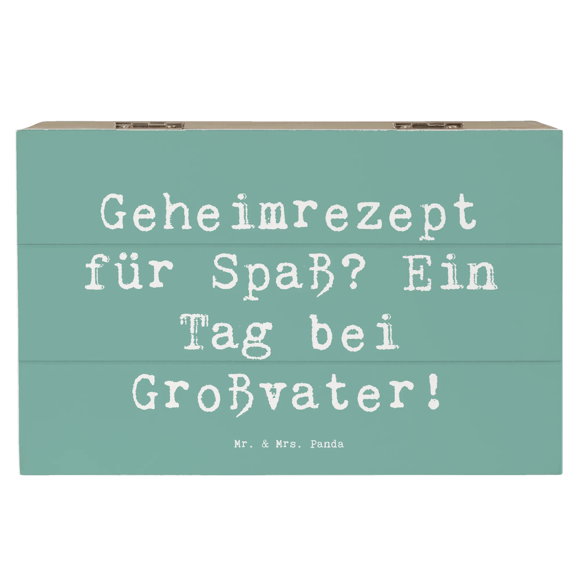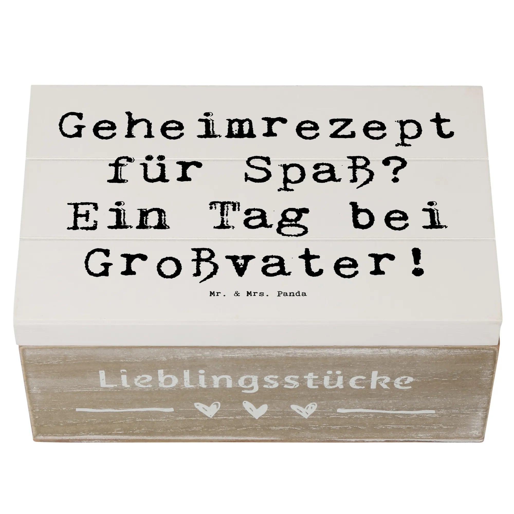 Der Slogan 'Geheimrezept für Spaß? Ein Tag bei Großvater!' zaubert nicht nur ein Lächeln ins Gesicht, sondern macht deutlich, wie wertvoll gemeinsame Zeit ist. Diese Kiste ist nicht nur funktional, sondern auch ein liebevolles Deorelement im Wohnraum und bringt ein Stück Familiengeschichte in jedes Zuhause.
