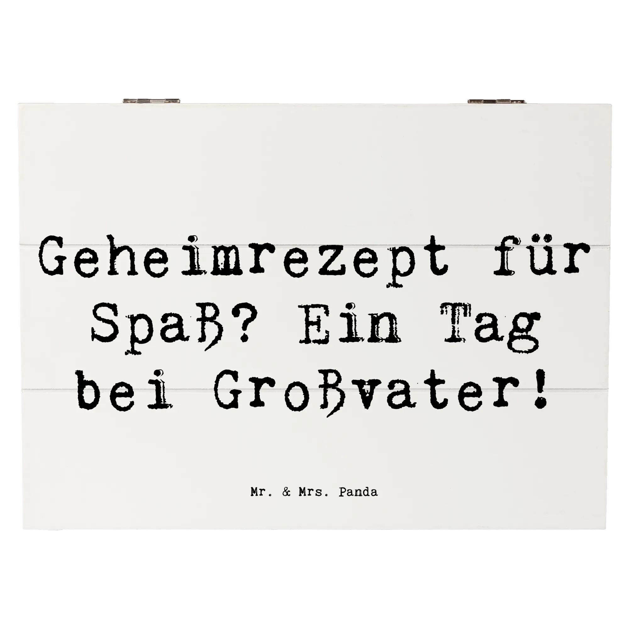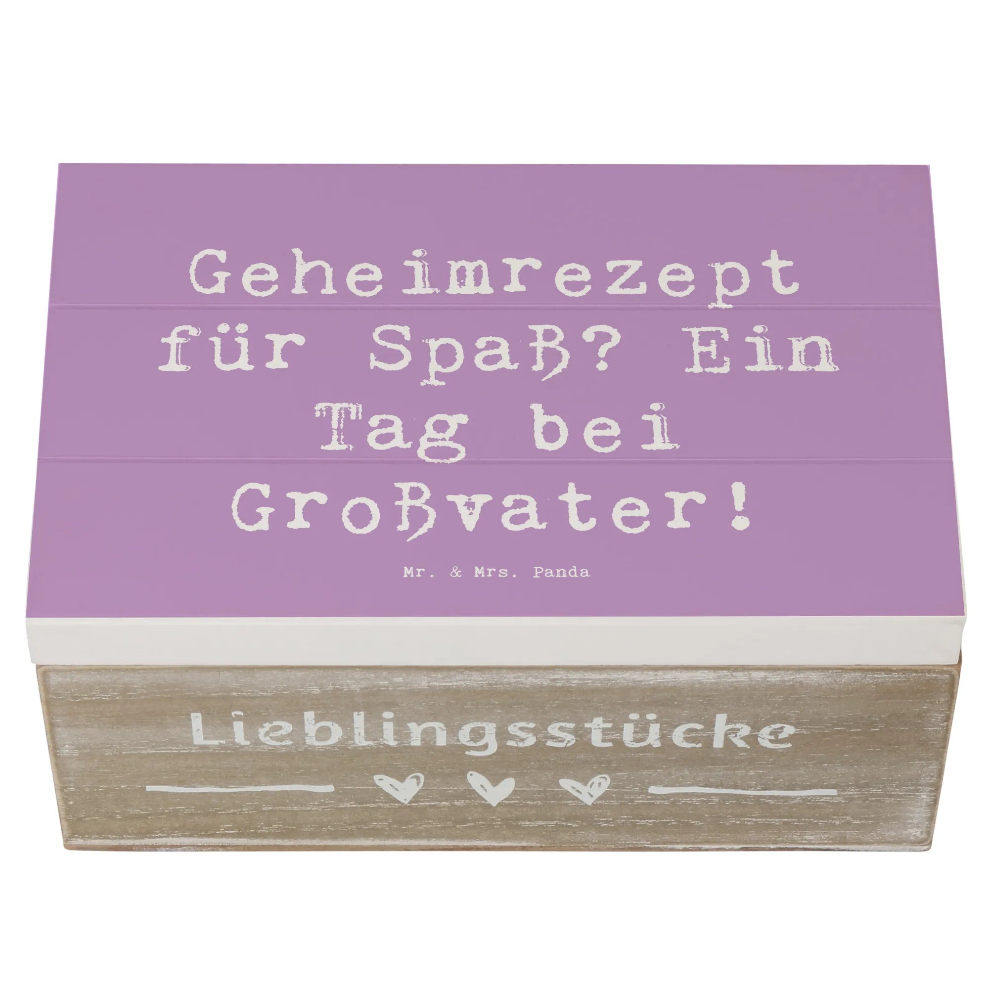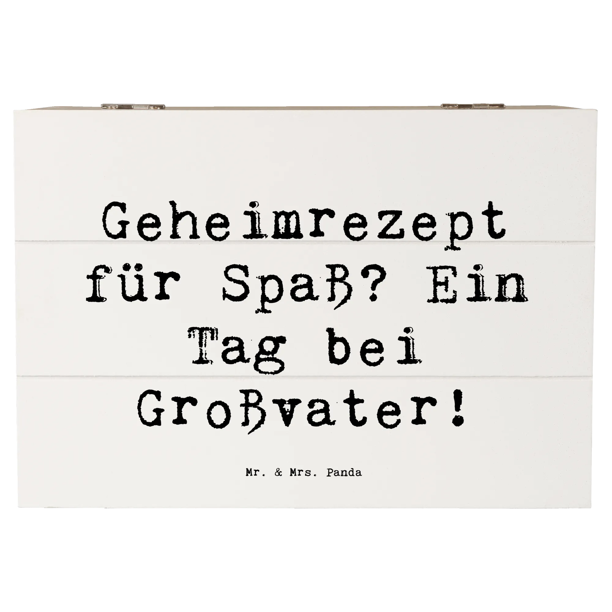Der Slogan 'Geheimrezept für Spaß? Ein Tag bei Großvater!' zaubert nicht nur ein Lächeln ins Gesicht, sondern macht deutlich, wie wertvoll gemeinsame Zeit ist. Diese Kiste ist nicht nur funktional, sondern auch ein liebevolles Deorelement im Wohnraum und bringt ein Stück Familiengeschichte in jedes Zuhause.