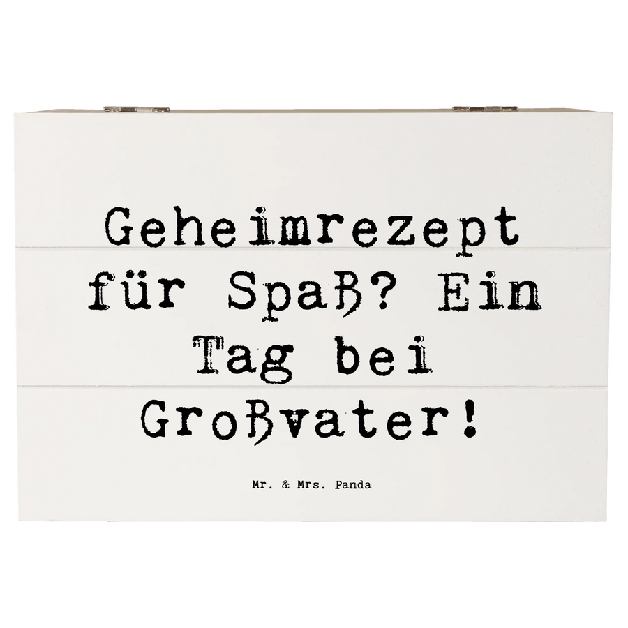 Die wunderschöne Holzkiste von Mr. & Mrs. Panda ist das perfekte Geschenk für Großväter, die im Familienkreis unvergessliche Erinnerungen schaffen. Mit dem liebevollen Slogan "Geheimrezept für Spaß? Ein Tag bei Großvater!" wird diese Kiste zum idealen Aufbewahrungsort für all die kleinen Schätze und wertvollen Erinnerungen, die wir mit unseren Großvätern verbinden.
