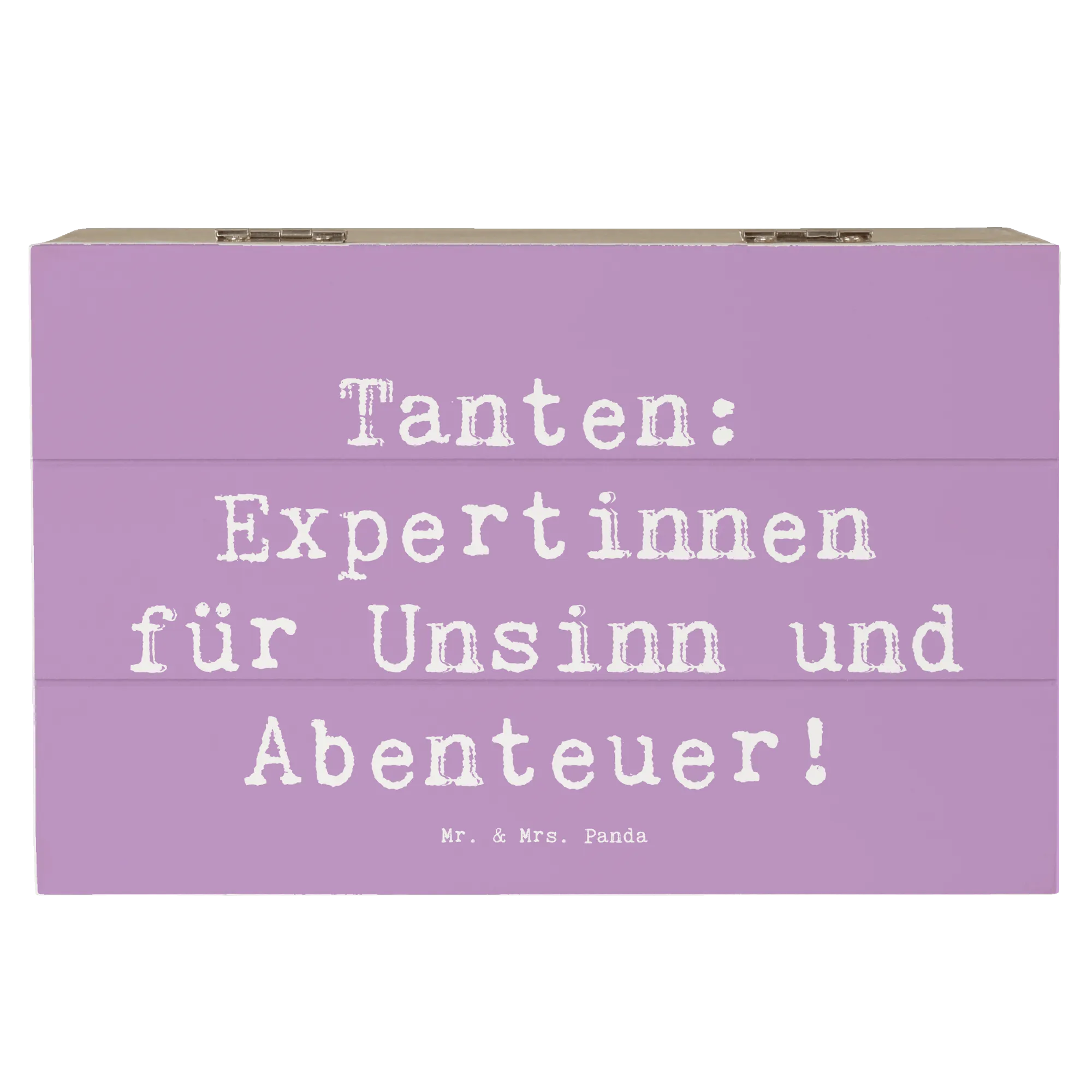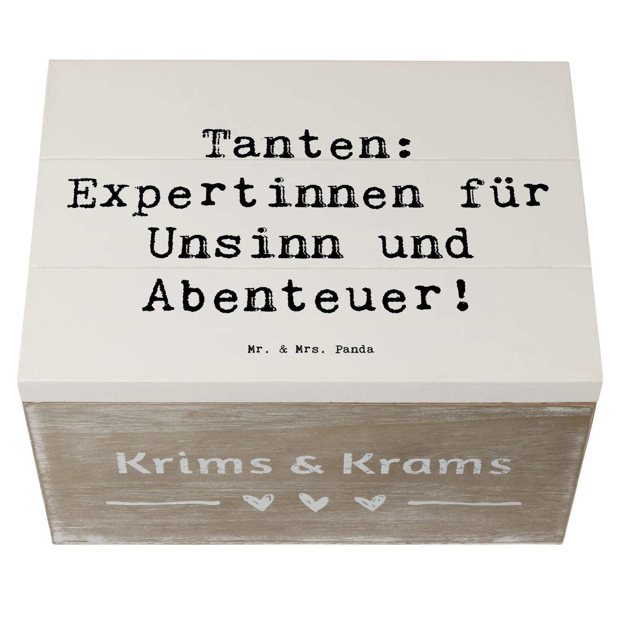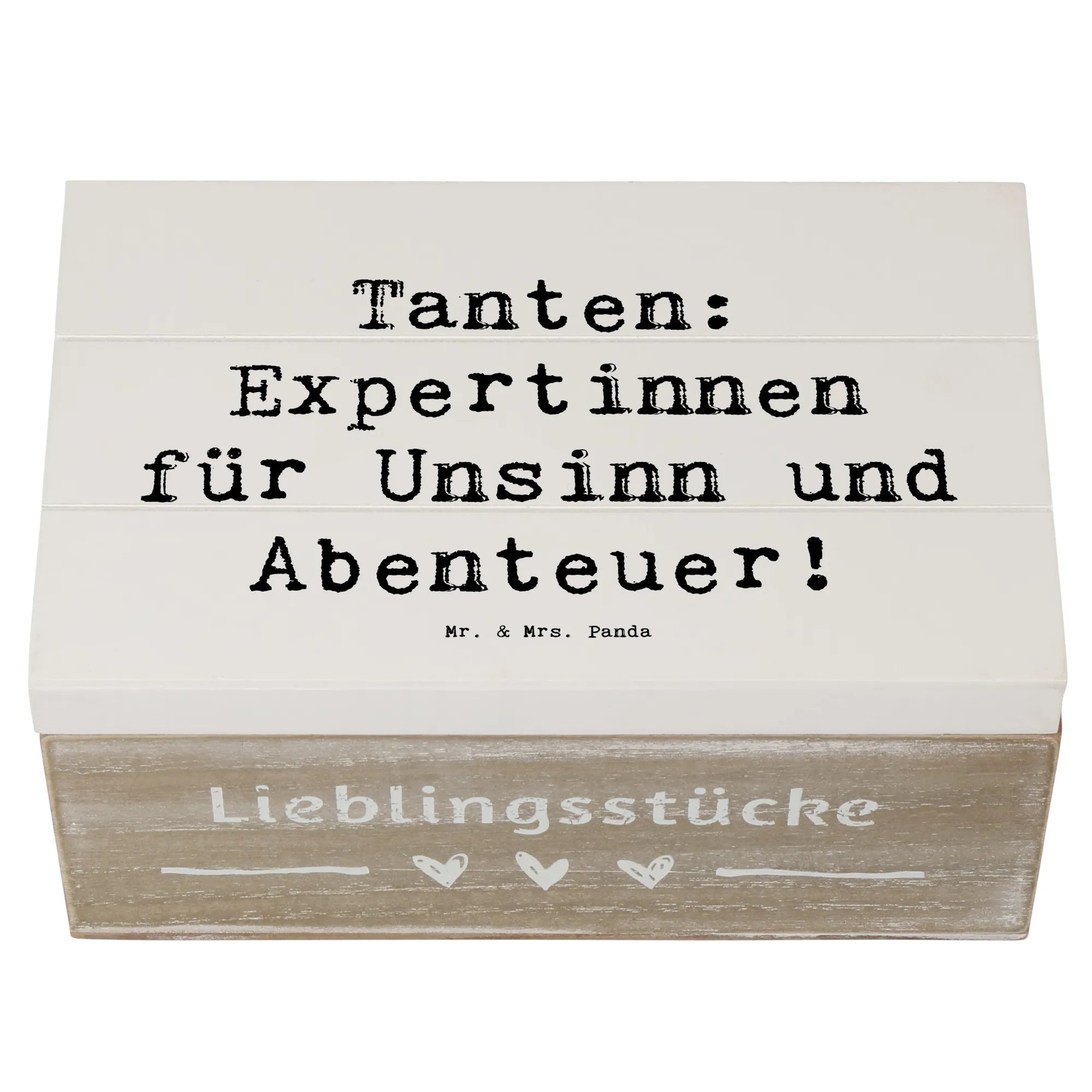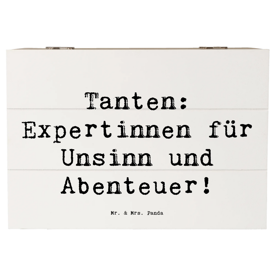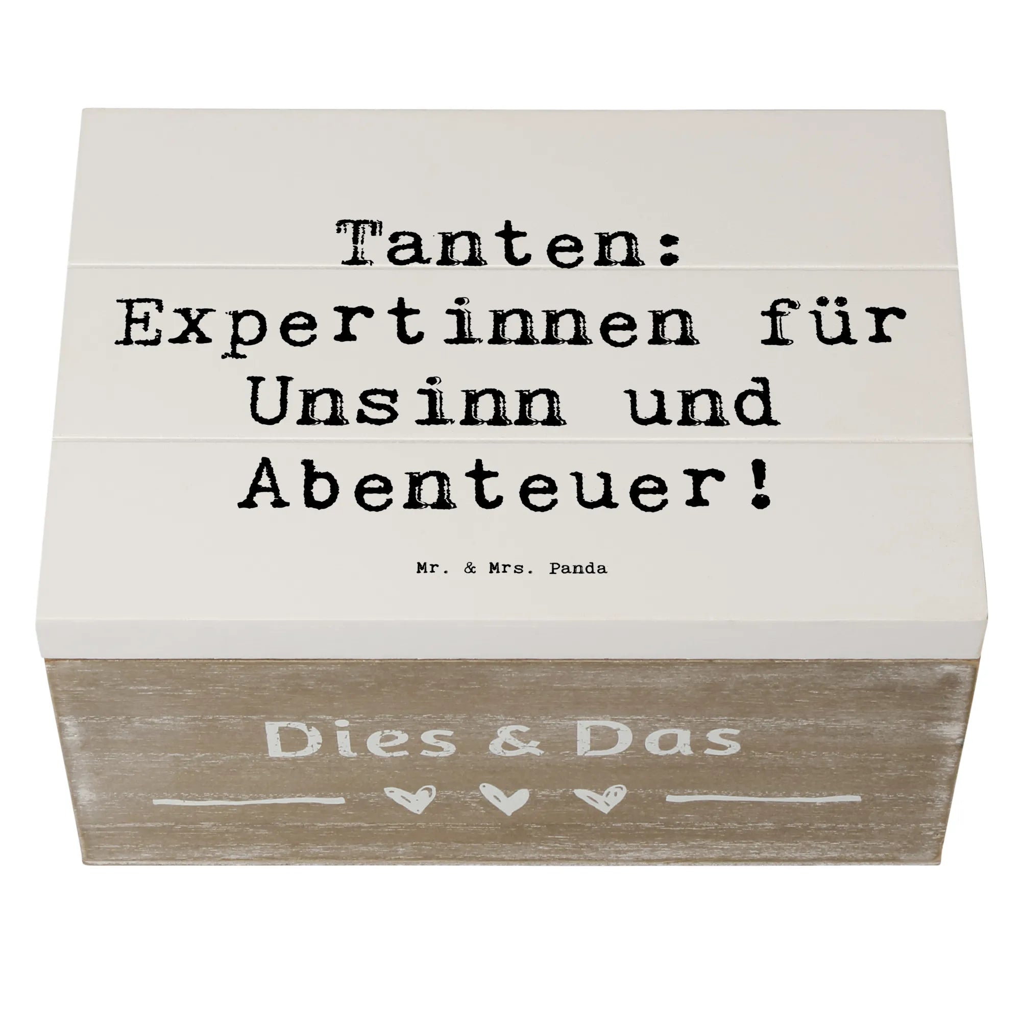 Die wunderschöne Holzkiste von Mr. & Mrs. Panda ist das perfekte Geschenk für Deine Tante! Mit dem charmanten Spruch "Tanten: Expertinnen für Unsinn und Abenteuer!" wird diese Kiste zu einem ganz besonderen Aufbewahrungsort für all die kostbaren Erinnerungen.