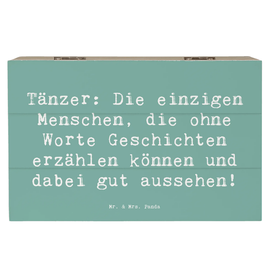 Entdecke die bezaubernde Holzkiste von Mr. & Mrs. Panda, die perfekt für alle Tanzbegeisterten ist! Diese wunderschöne Erinnerungskiste, beeindruckend bedruckt mit dem Spruch "Tänzer: Die einzigen Menschen, die ohne Worte Geschichten erzählen können und dabei gut aussehen!", ist ein wahrer Schatz für jeden, der das Tanzen liebt. Mit ihren Maßen von 180 mm x 250 mm x 150 mm bietet sie genügend Platz für all die wertvollen Erinnerungen an Deine tänzerischen Abenteuer.