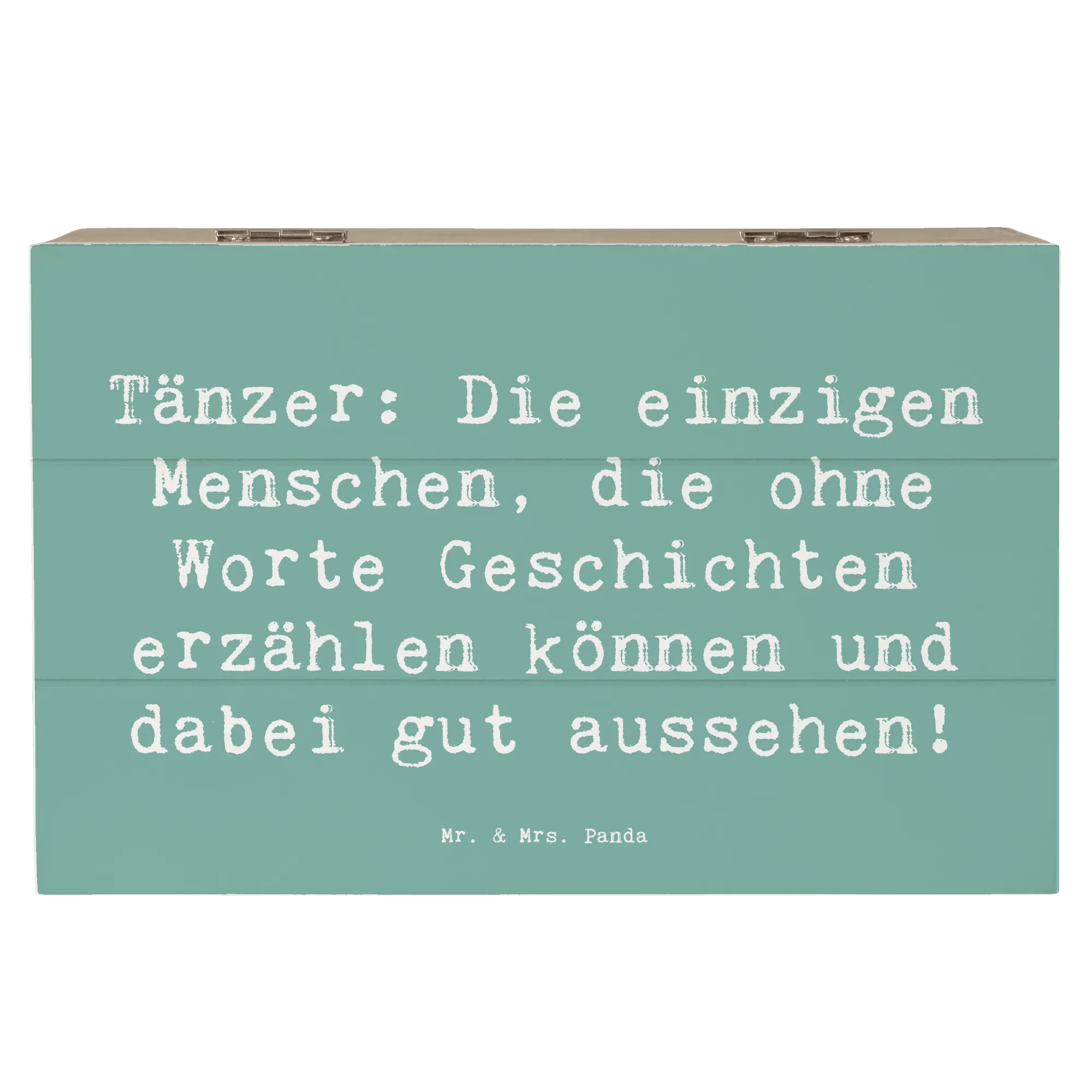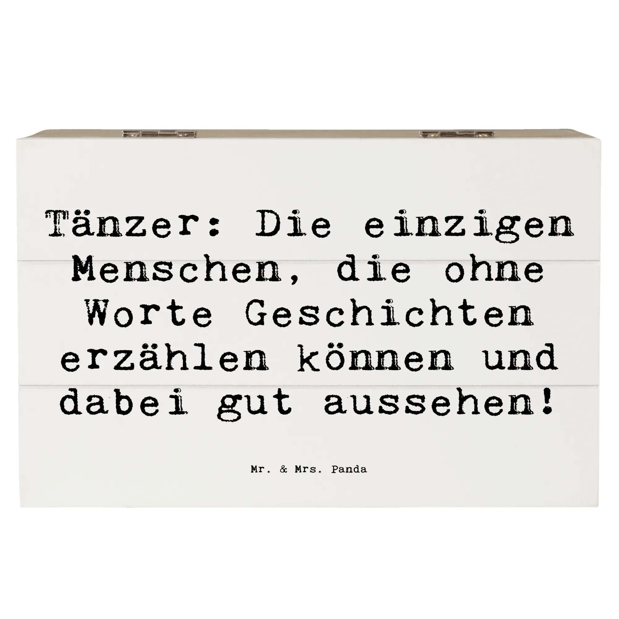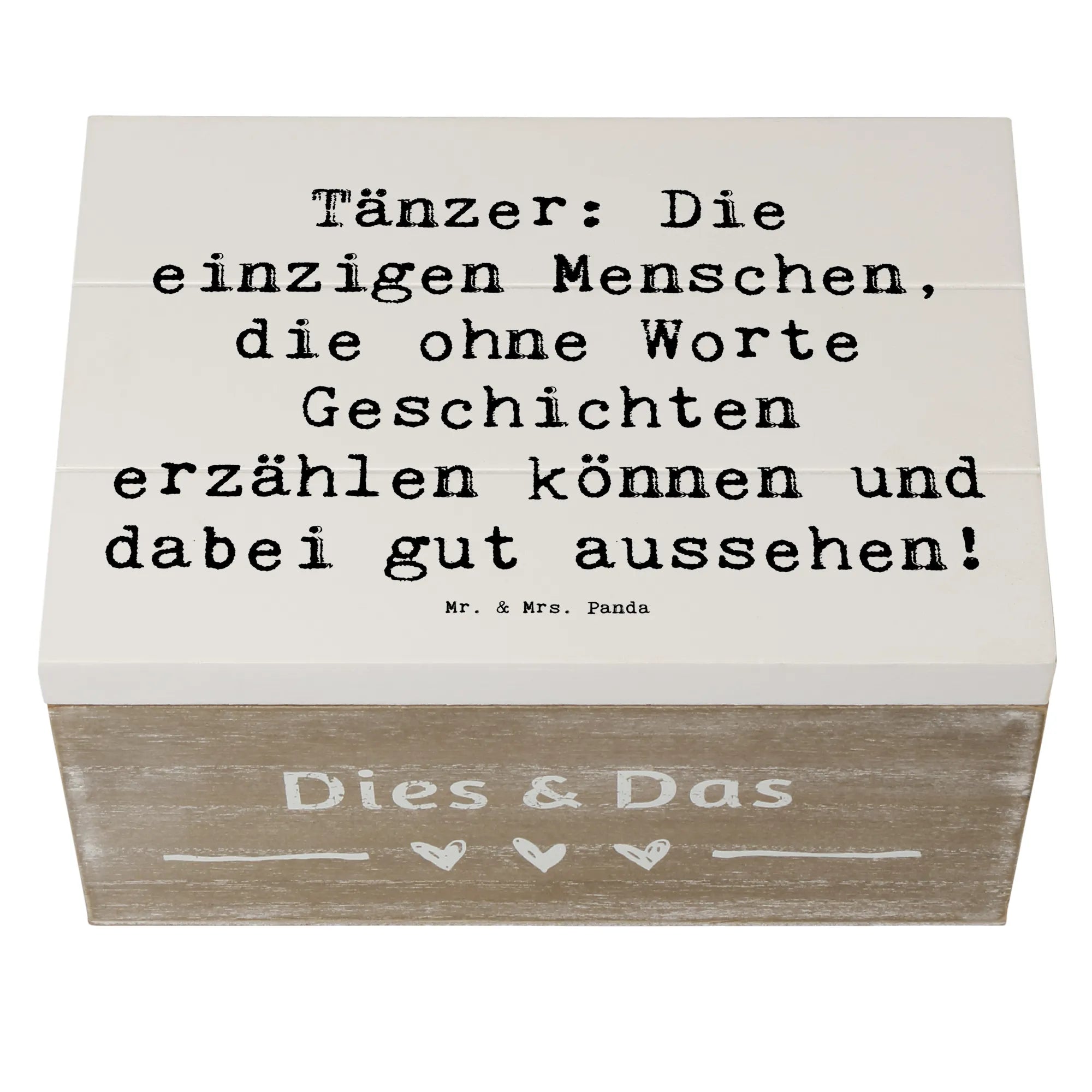Eine wunderschöne Holzkiste von Mr. & Mrs. Panda, bedruckt mit dem zauberhaften Spruch: „Tänzer: Die einzigen Menschen, die ohne Worte Geschichten erzählen können und dabei gut aussehen!“. Diese Holzkiste Tanzen aus unserer Sportarten-Kollektion ist das ideale Geschenk für alle Tanzbegeisterten – vom Ballett über Contemporary bis zum Hip-Hop.