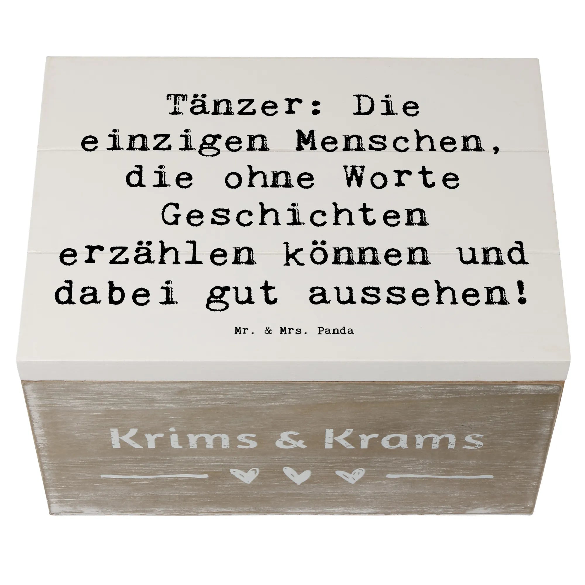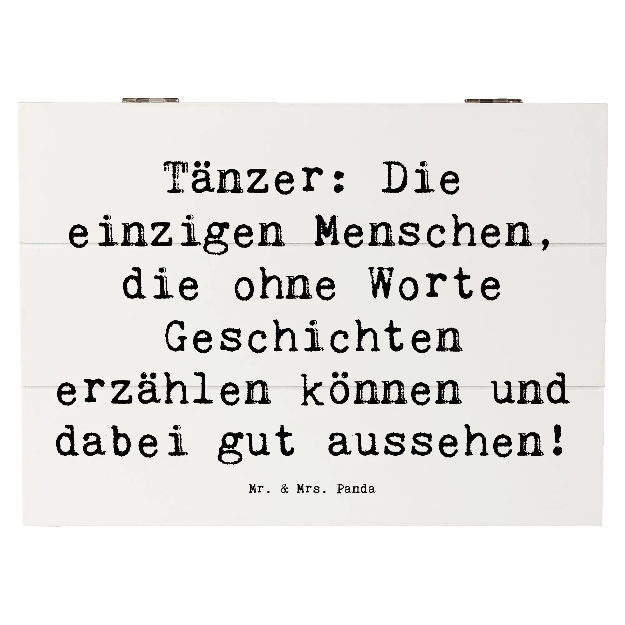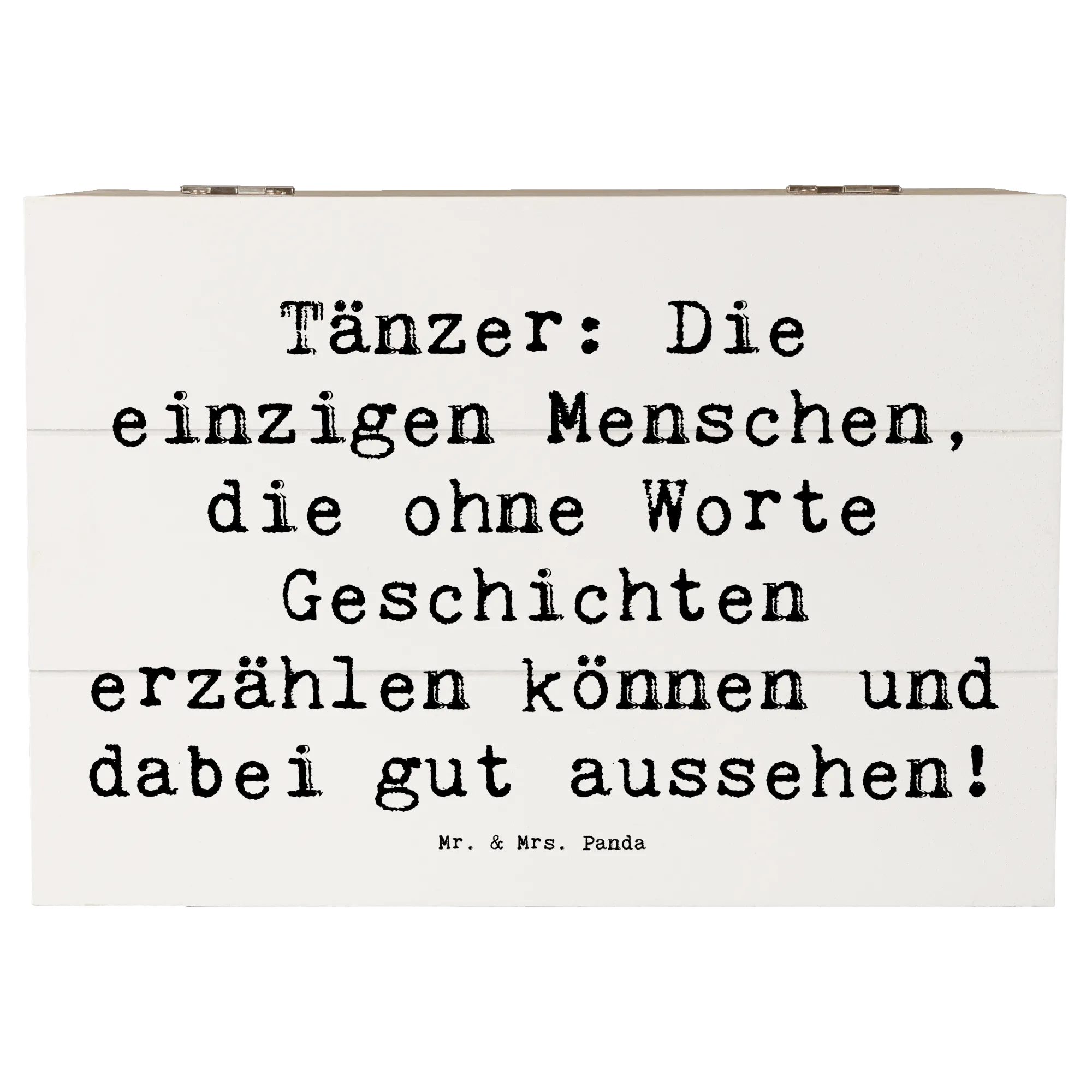 Eine wunderschöne Holzkiste von Mr. & Mrs. Panda, bedruckt mit dem zauberhaften Spruch: „Tänzer: Die einzigen Menschen, die ohne Worte Geschichten erzählen können und dabei gut aussehen!“. Diese Holzkiste Tanzen aus unserer Sportarten-Kollektion ist das ideale Geschenk für alle Tanzbegeisterten – vom Ballett über Contemporary bis zum Hip-Hop.