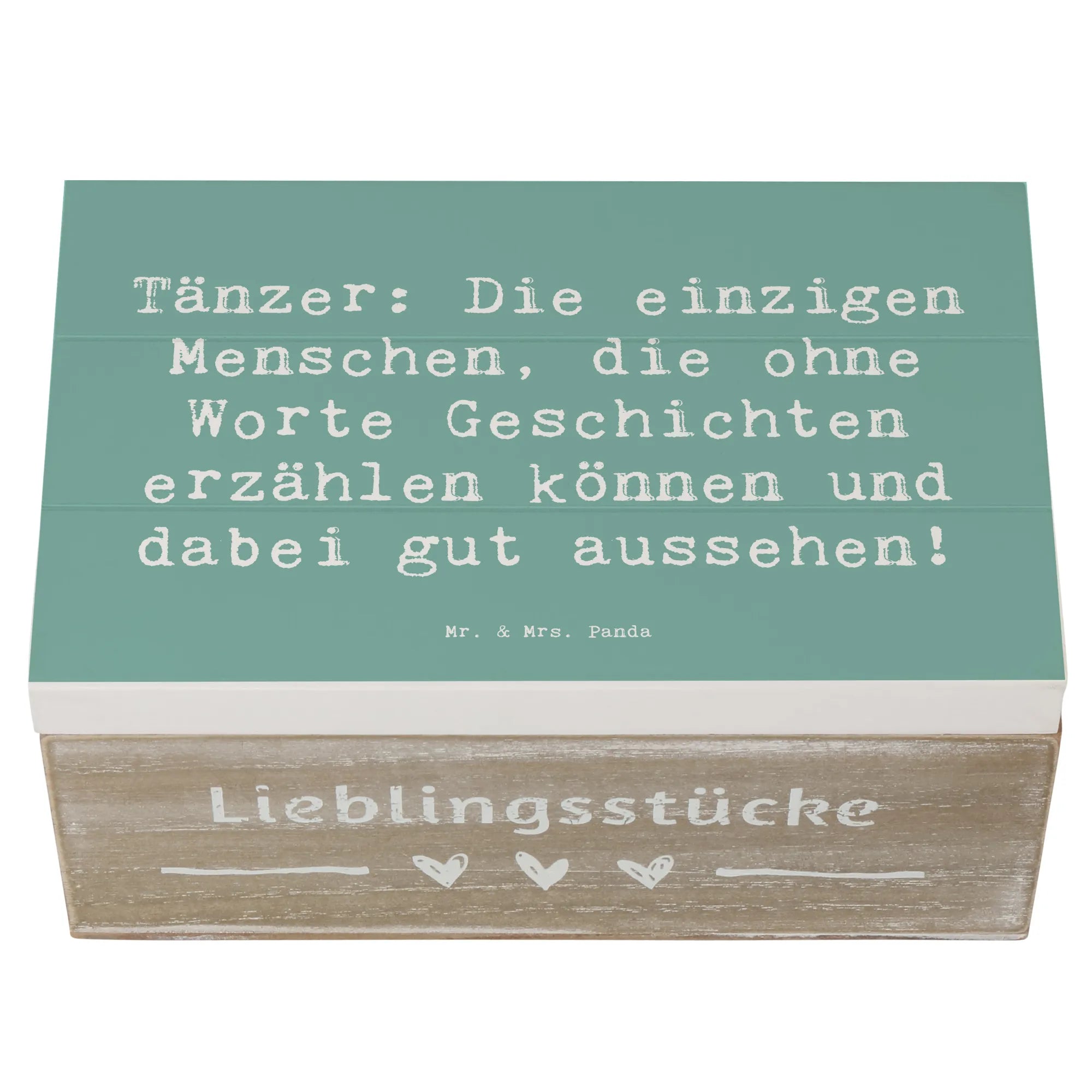 Entdecke die bezaubernde Holzkiste von Mr. & Mrs. Panda, die perfekt für alle Tanzbegeisterten ist! Diese wunderschöne Erinnerungskiste, beeindruckend bedruckt mit dem Spruch "Tänzer: Die einzigen Menschen, die ohne Worte Geschichten erzählen können und dabei gut aussehen!", ist ein wahrer Schatz für jeden, der das Tanzen liebt. Mit ihren Maßen von 180 mm x 250 mm x 150 mm bietet sie genügend Platz für all die wertvollen Erinnerungen an Deine tänzerischen Abenteuer.