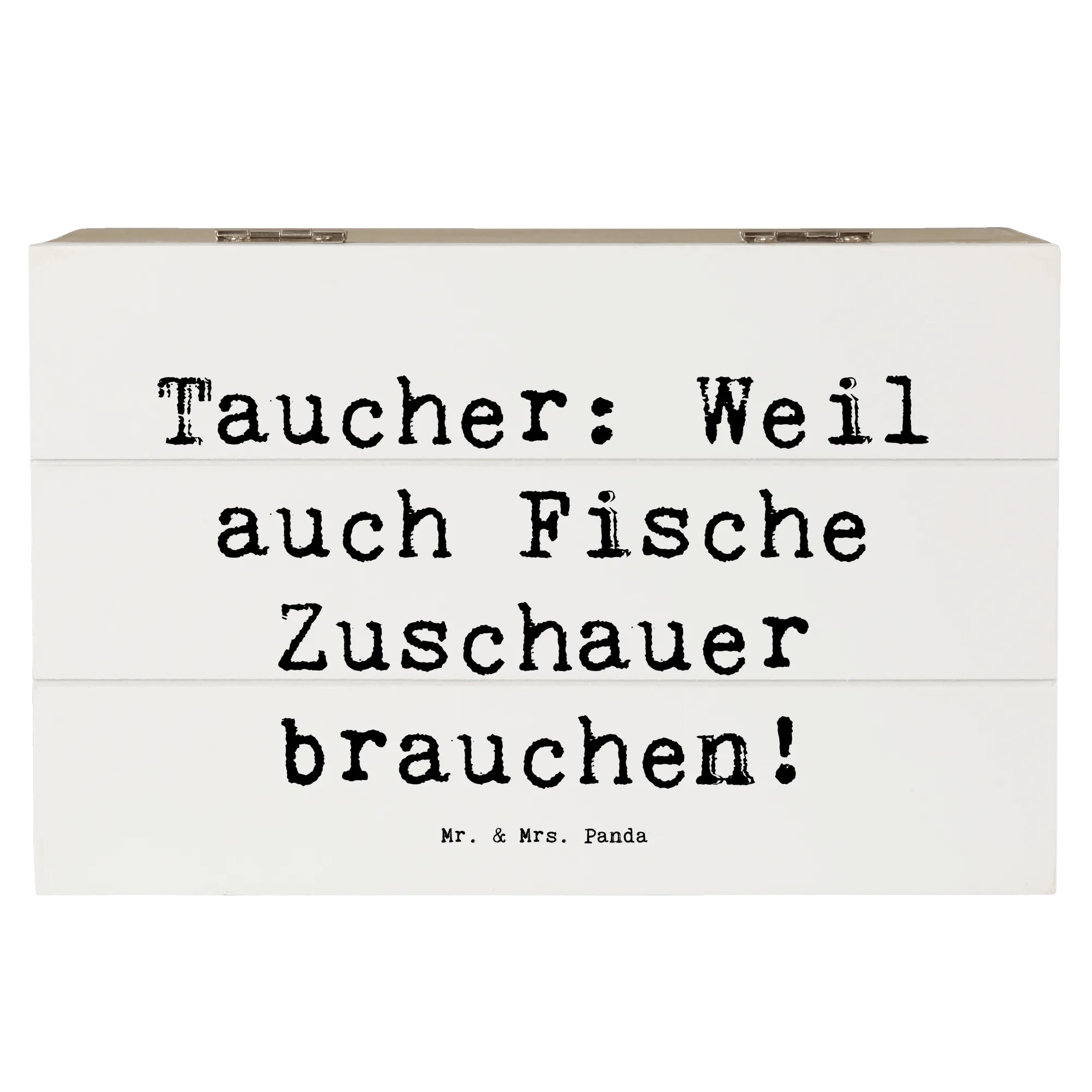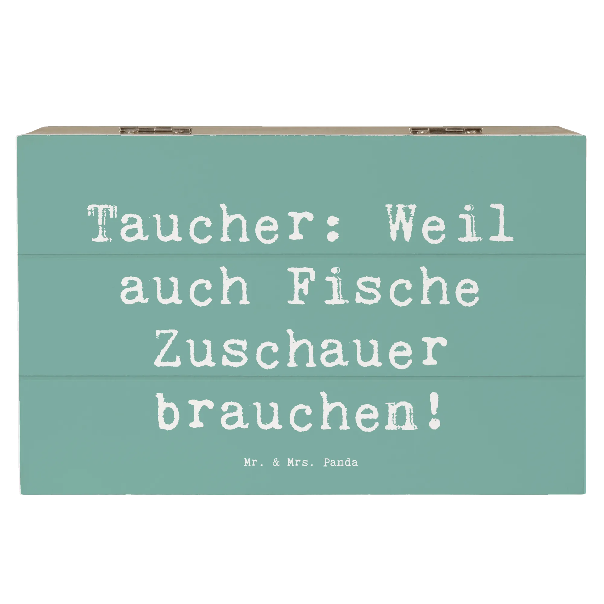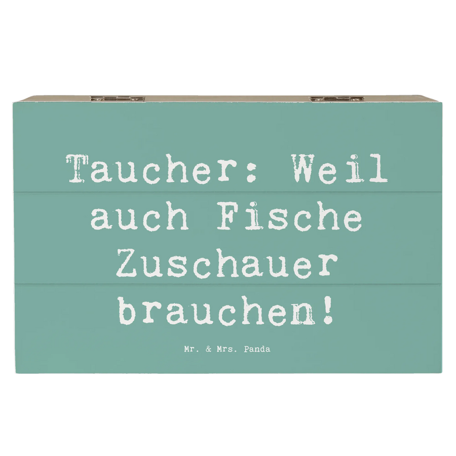 Entdecke die perfekte Holzkiste von Mr. & Mrs. Panda, die mit einem liebevollen Taucher-Motiv sowie dem witzigen Spruch 'Taucher: Weil auch Fische Zuschauer brauchen!' versehen ist. Diese wunderschöne Erinnerungskiste ist nicht nur ein idealer Aufbewahrungsort für wertvolle Schätze, sondern auch das perfekte Geschenk für alle Sportliebhaber.