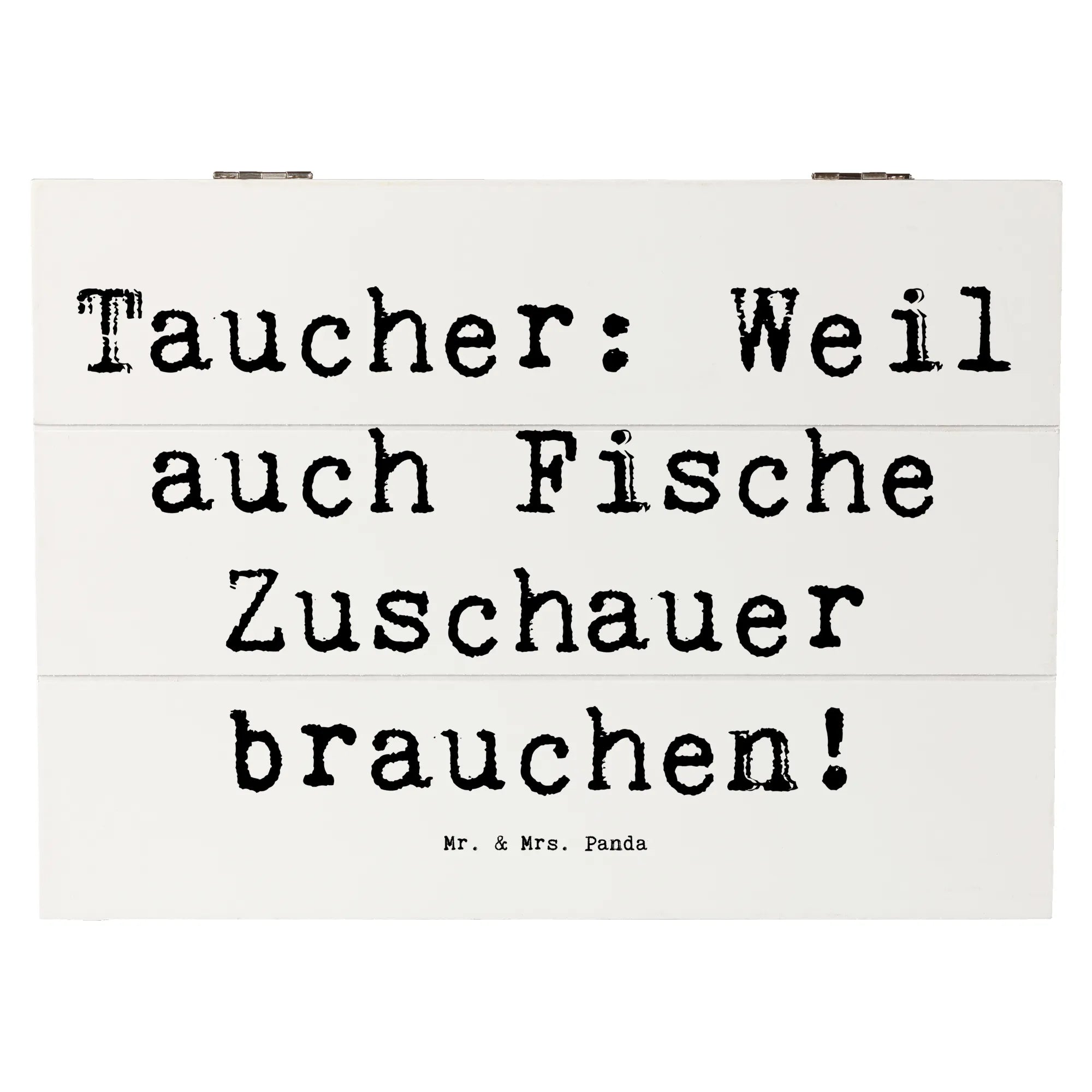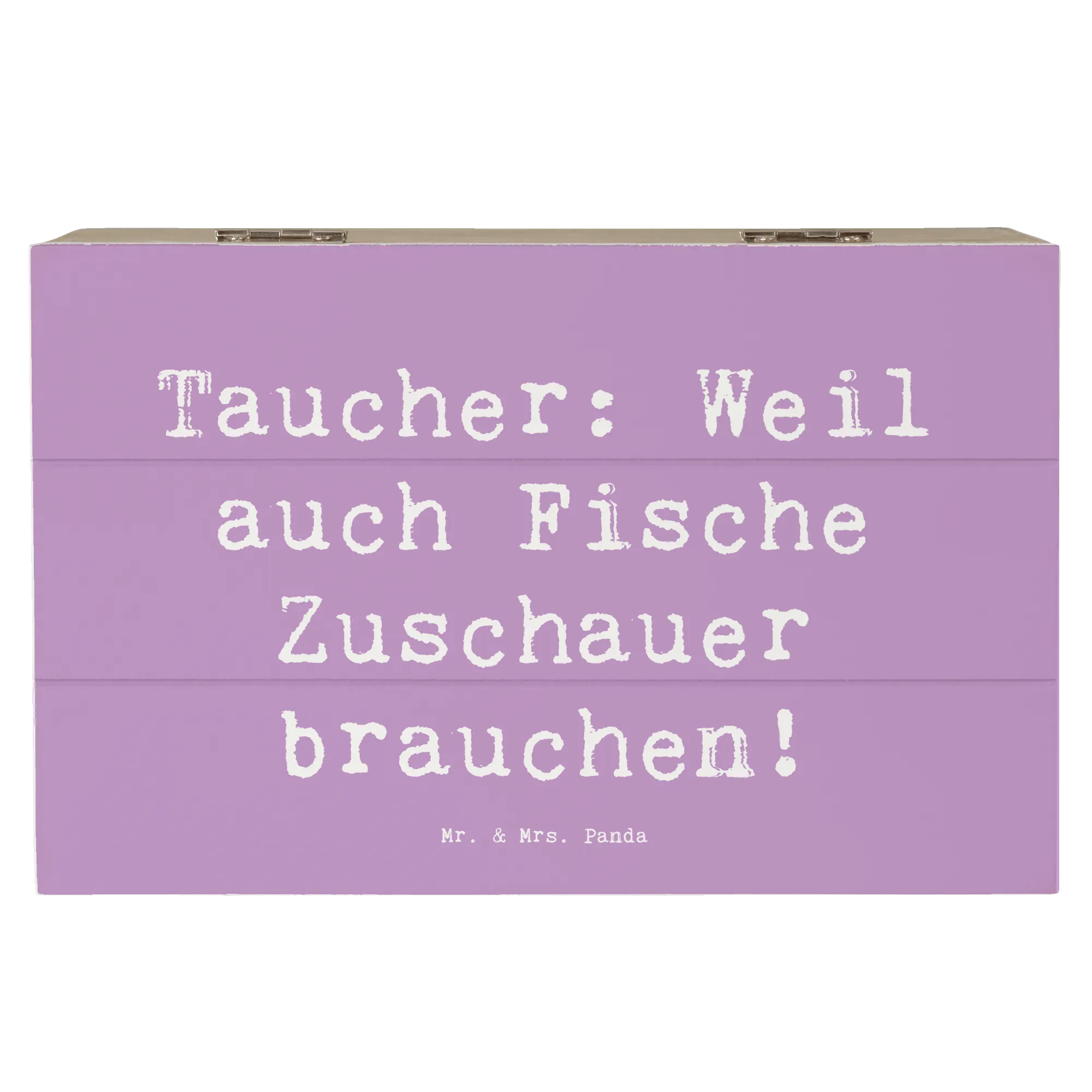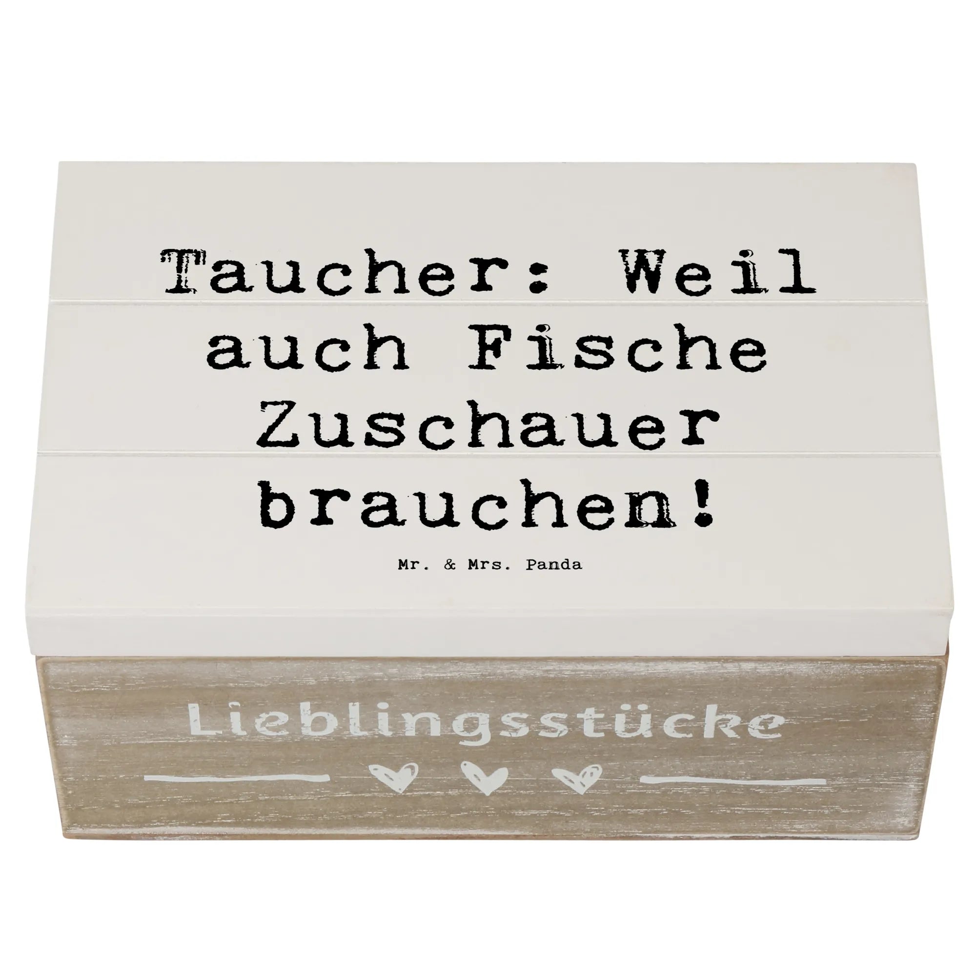 Entdecke die perfekte Holzkiste von Mr. & Mrs. Panda, die mit einem liebevollen Taucher-Motiv sowie dem witzigen Spruch 'Taucher: Weil auch Fische Zuschauer brauchen!' versehen ist. Diese wunderschöne Erinnerungskiste ist nicht nur ein idealer Aufbewahrungsort für wertvolle Schätze, sondern auch das perfekte Geschenk für alle Sportliebhaber.