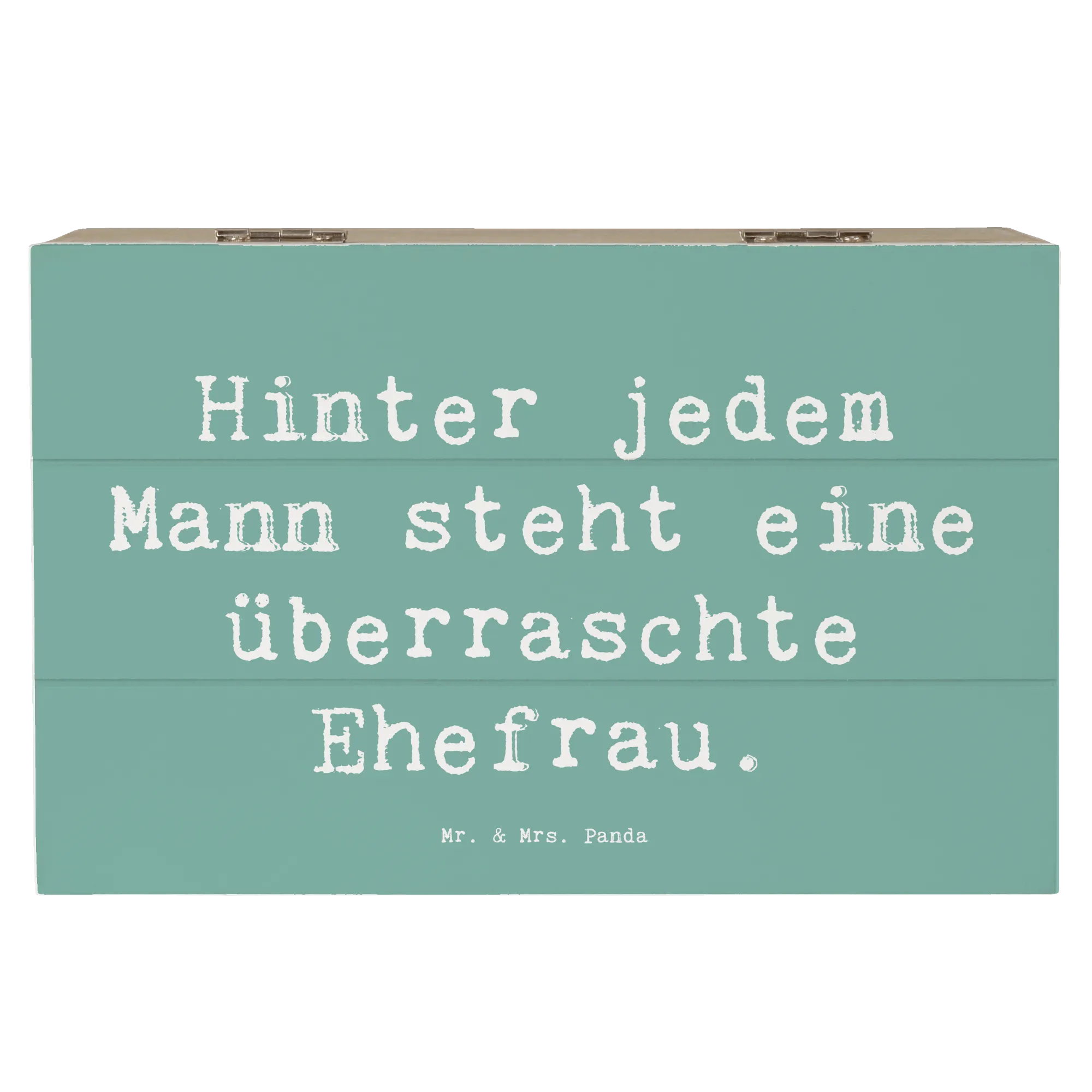 Die wunderschöne Holzkiste von Mr. & Mrs. Panda ist das perfekte Geschenk für Deine Ehefrau! Mit einem einzigartigen Motiv und dem liebevollen Spruch 'Hinter jedem Mann steht eine überraschte Ehefrau.' bringt diese Kiste nicht nur Freude, sondern auch eine persönliche Note in Dein Zuhause.