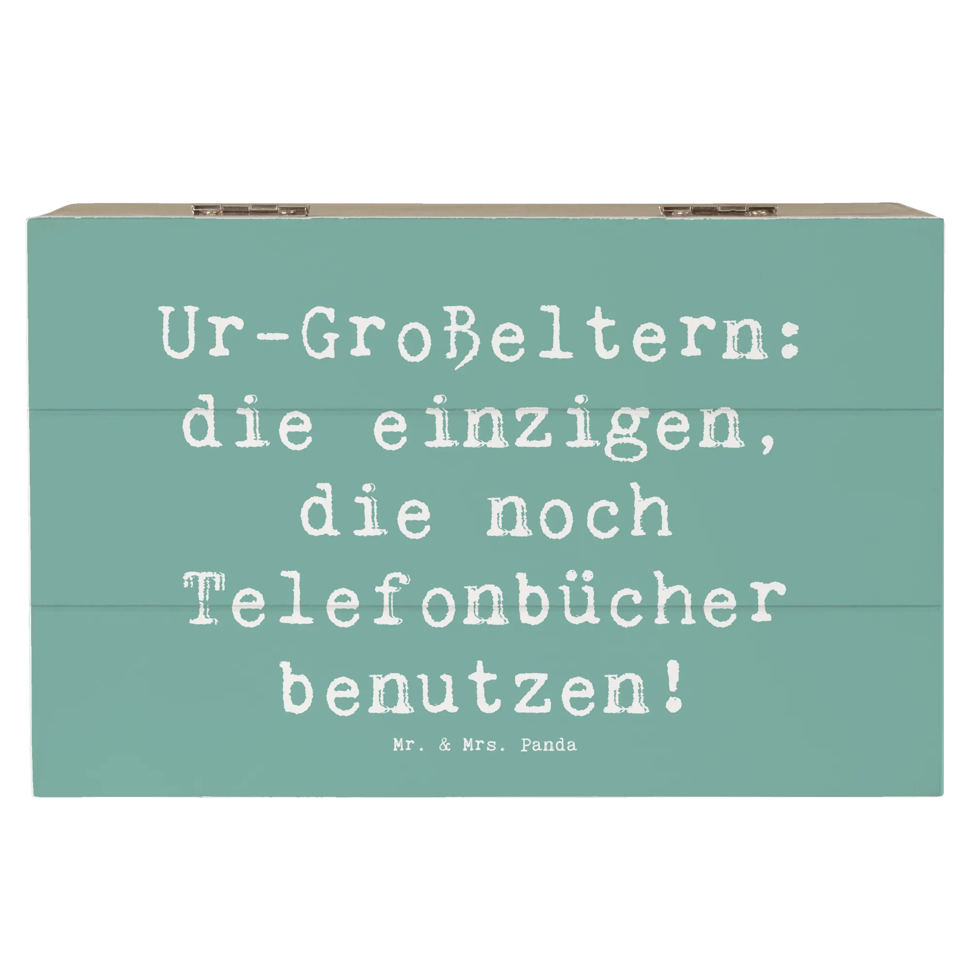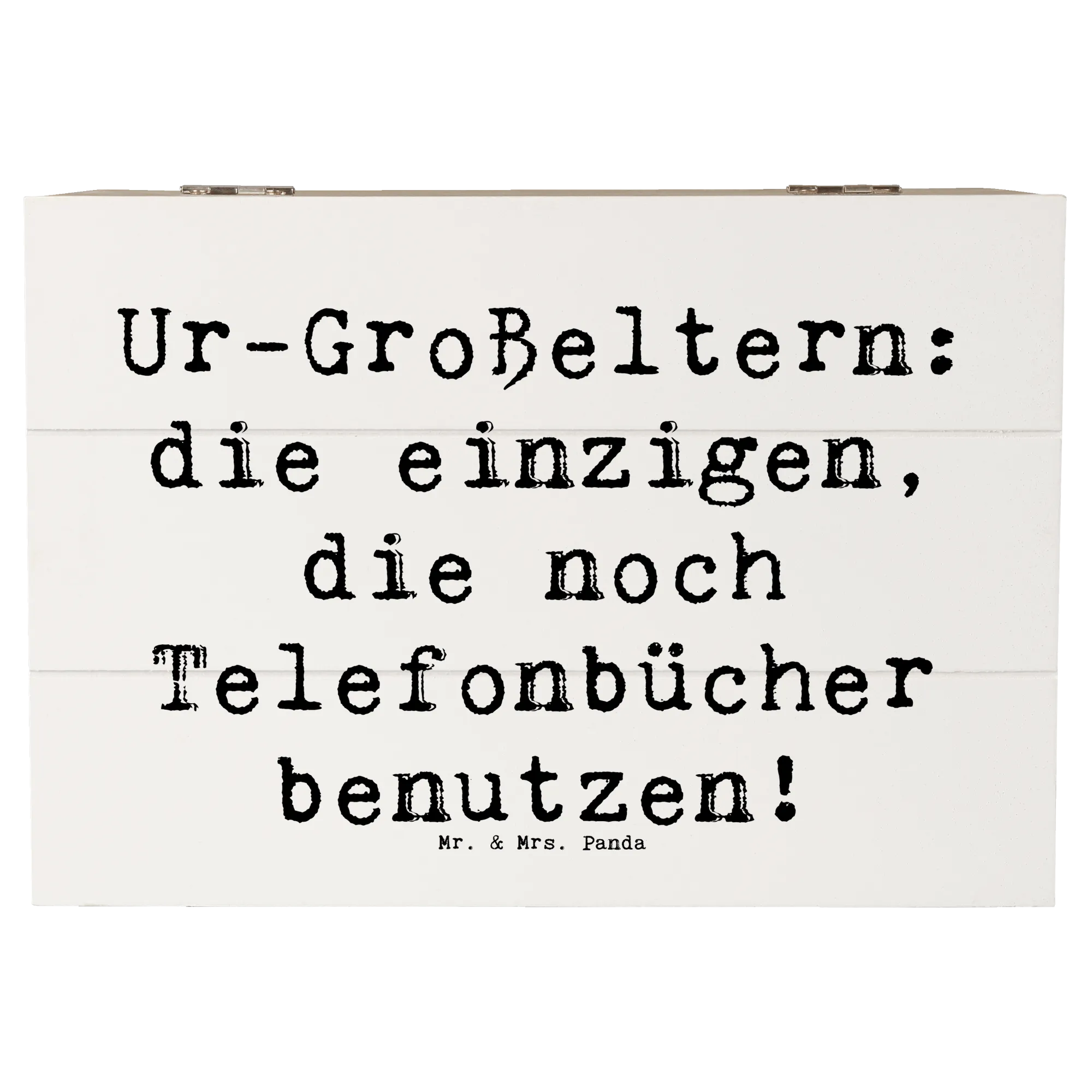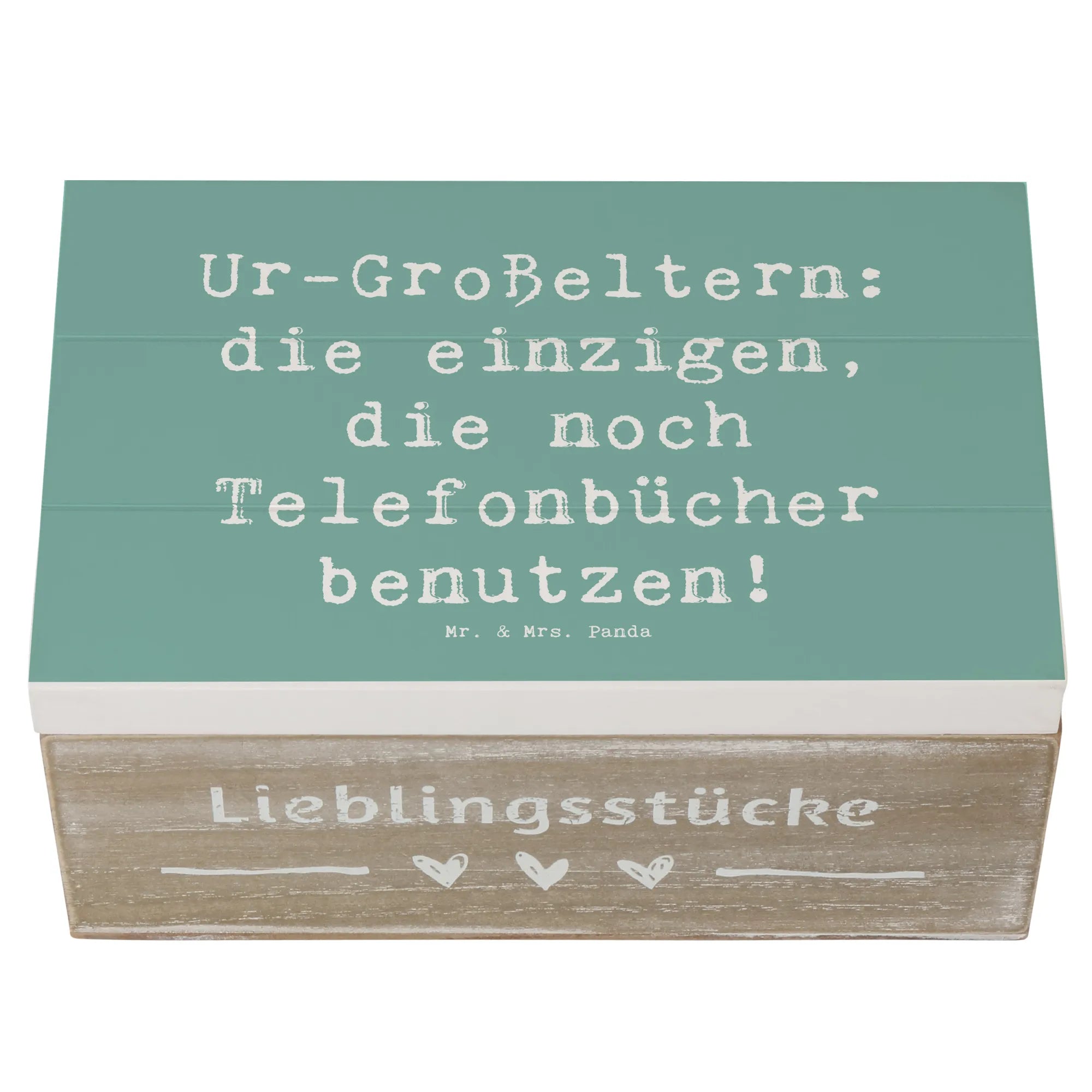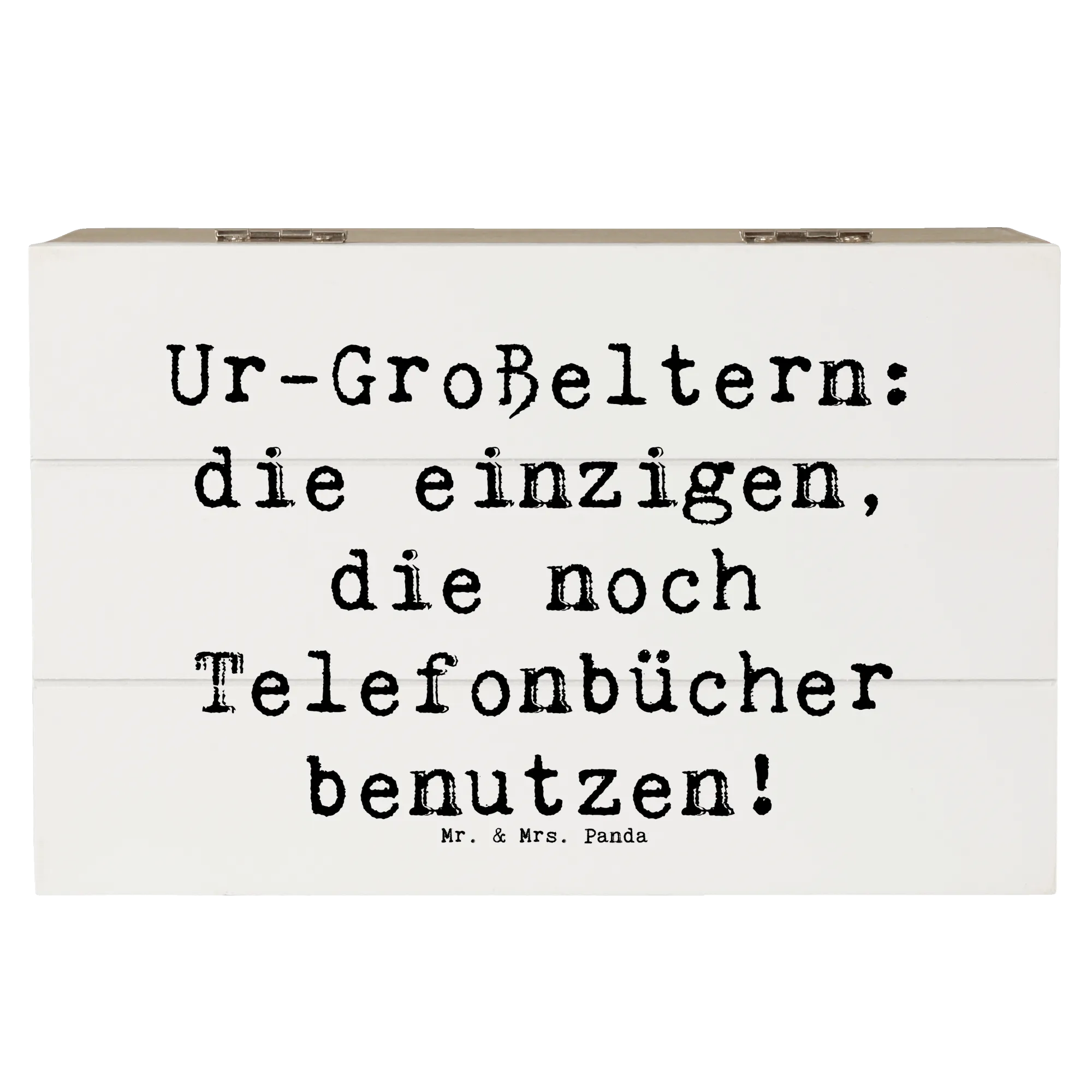 Wenn Du auf der Suche nach dem perfekten Geschenk für Deine Ur-Großeltern bist, dann ist die Holzkiste von Mr. & Mrs. Panda genau das Richtige! Diese wunderschöne Holzkiste, die liebevoll mit dem Motiv 'Ur-Großeltern: die einzigen, die noch Telefonbücher benutzen!' bedruckt ist, ist nicht nur ein echter Blickfang, sondern auch eine tolle Möglichkeit, wertvolle Erinnerungen zu bewahren.