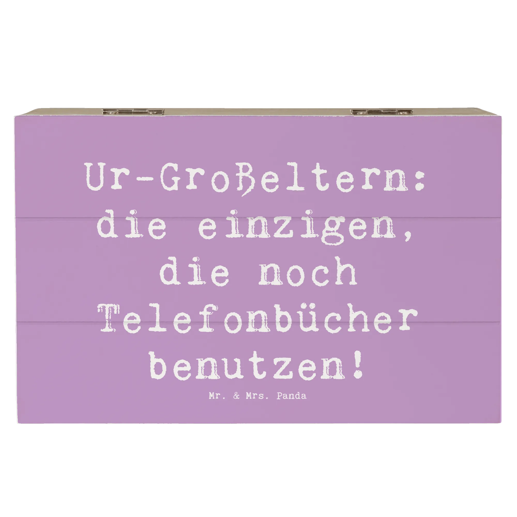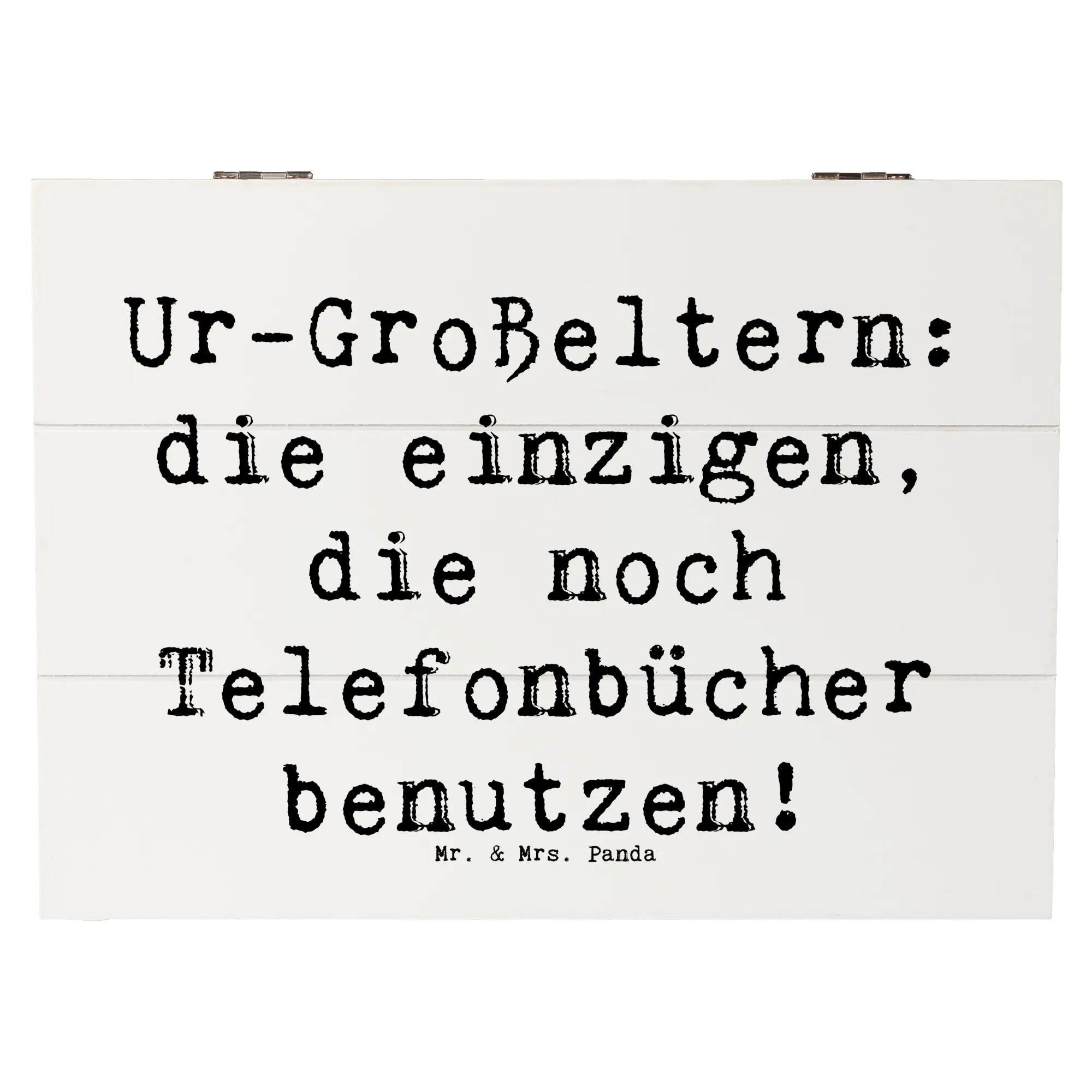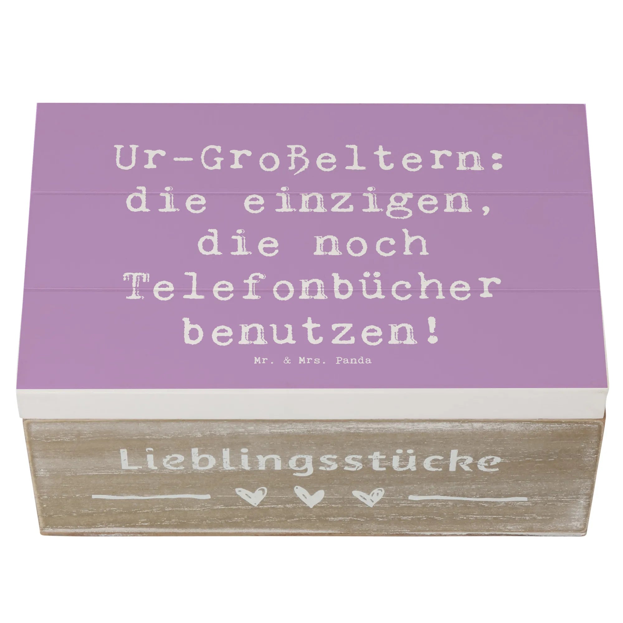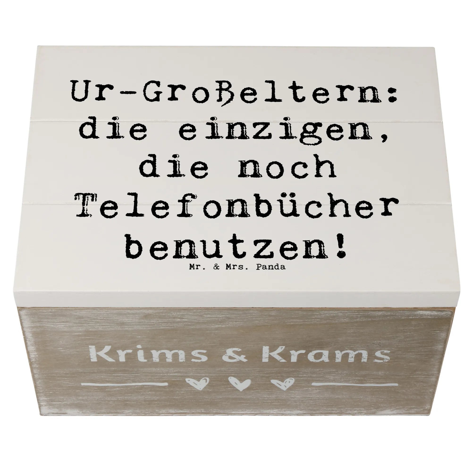 Wenn Du auf der Suche nach dem perfekten Geschenk für Deine Ur-Großeltern bist, dann ist die Holzkiste von Mr. & Mrs. Panda genau das Richtige! Diese wunderschöne Holzkiste, die liebevoll mit dem Motiv 'Ur-Großeltern: die einzigen, die noch Telefonbücher benutzen!' bedruckt ist, ist nicht nur ein echter Blickfang, sondern auch eine tolle Möglichkeit, wertvolle Erinnerungen zu bewahren.