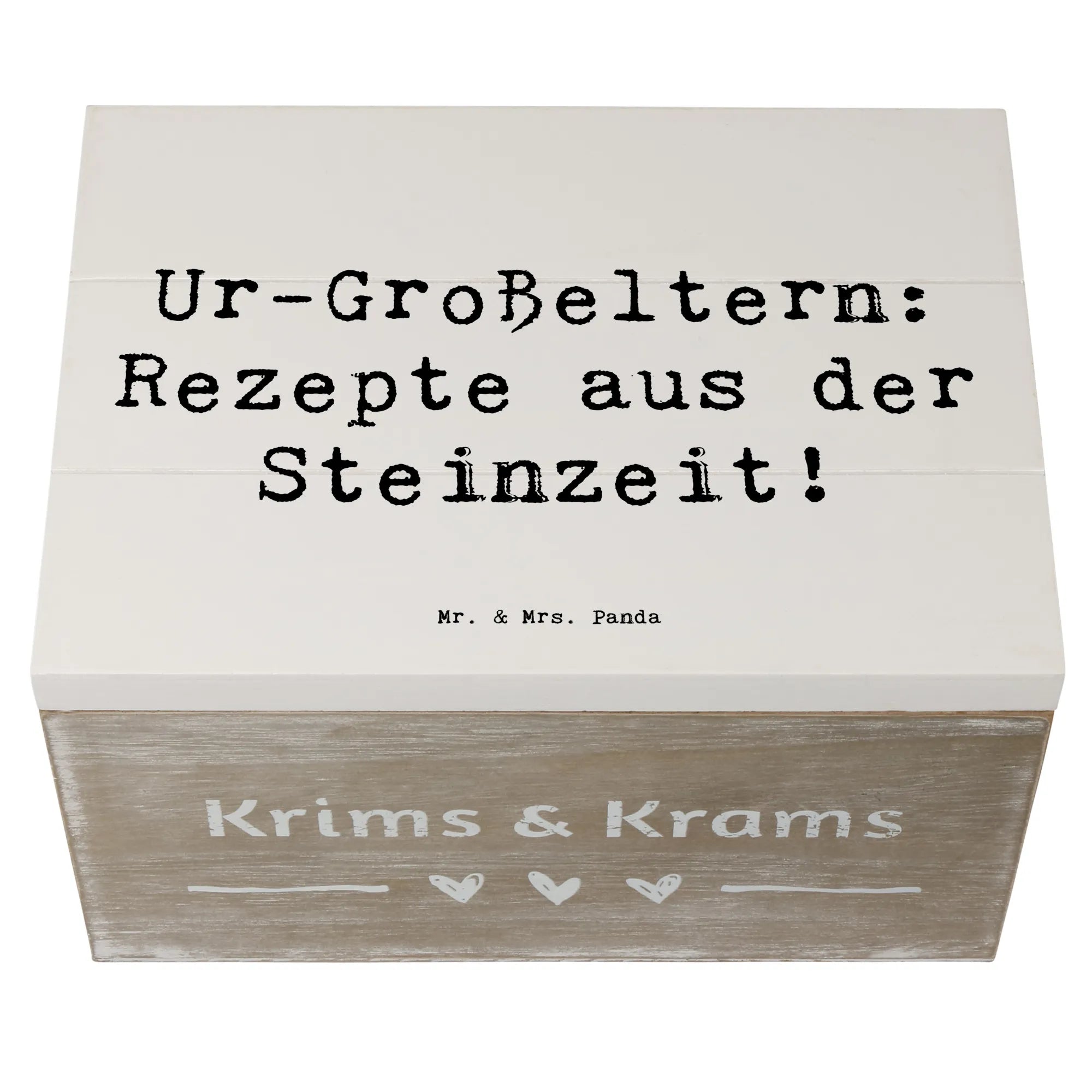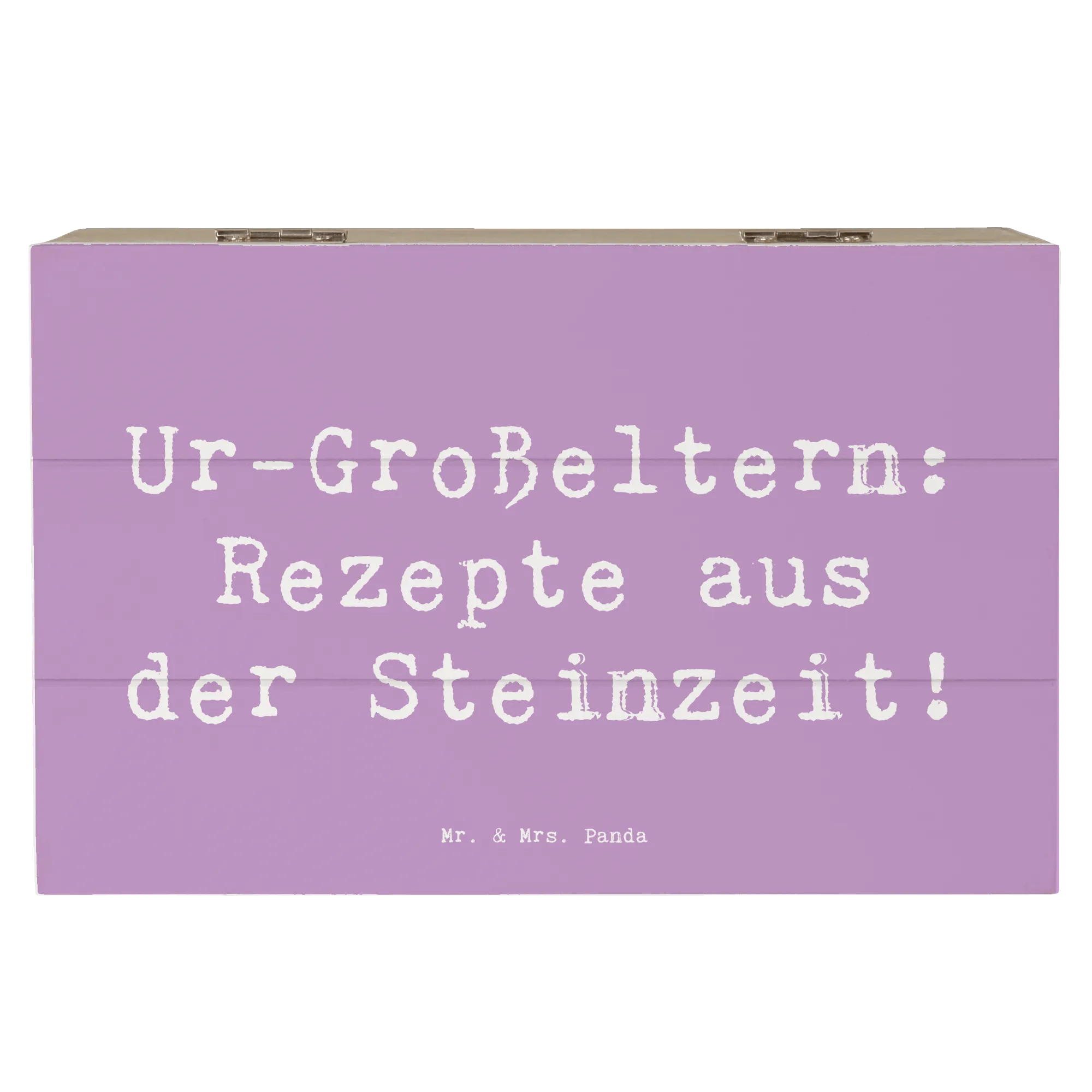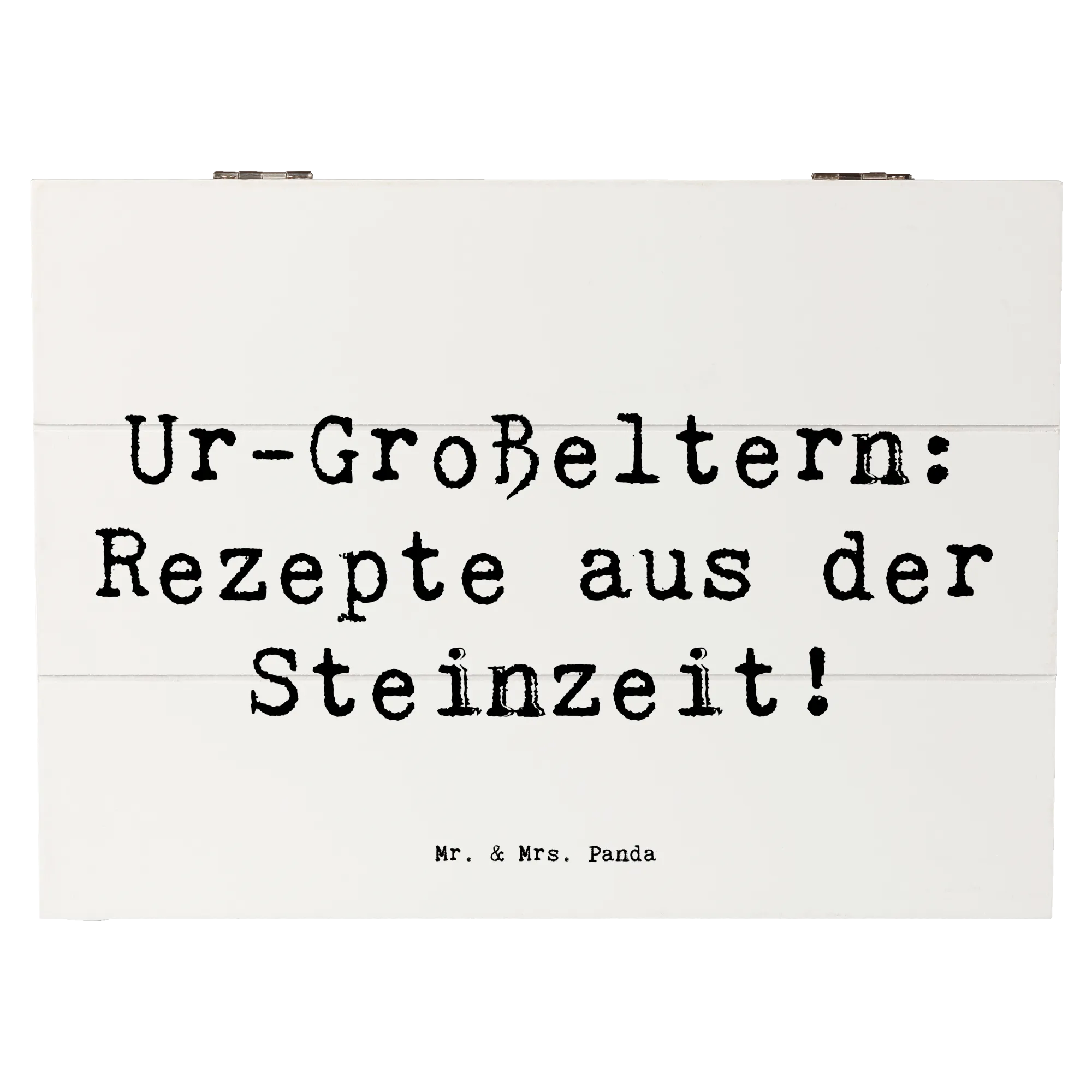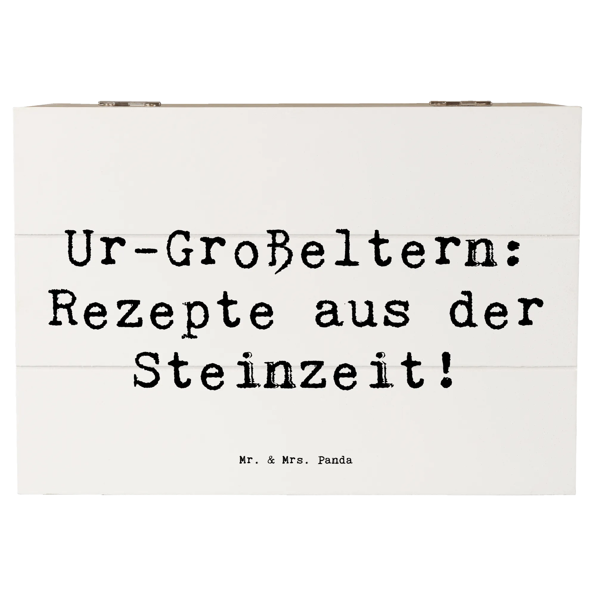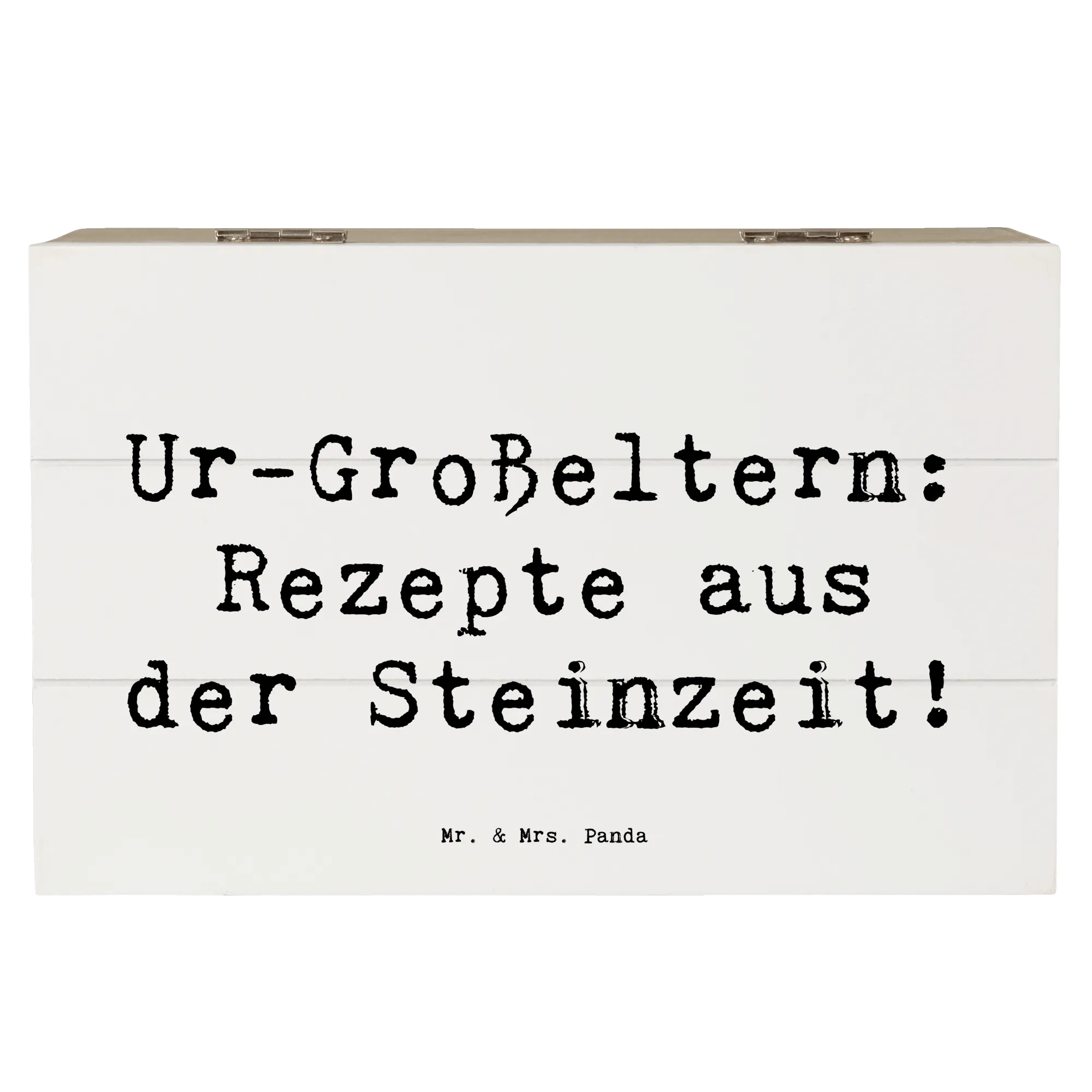 Die wunderschöne Holzkiste von Mr. & Mrs. Panda mit dem Motiv 'Ur-Großeltern: Rezepte aus der Steinzeit!' ist die perfekte Wahl für Dich, wenn Du ein besonderes Geschenk suchst. Diese einzigartige Kiste ist nicht nur ein praktischer Aufbewahrungsort für wertvolle Erinnerungen, sondern auch ein wunderschönes Dekorationsstück.
