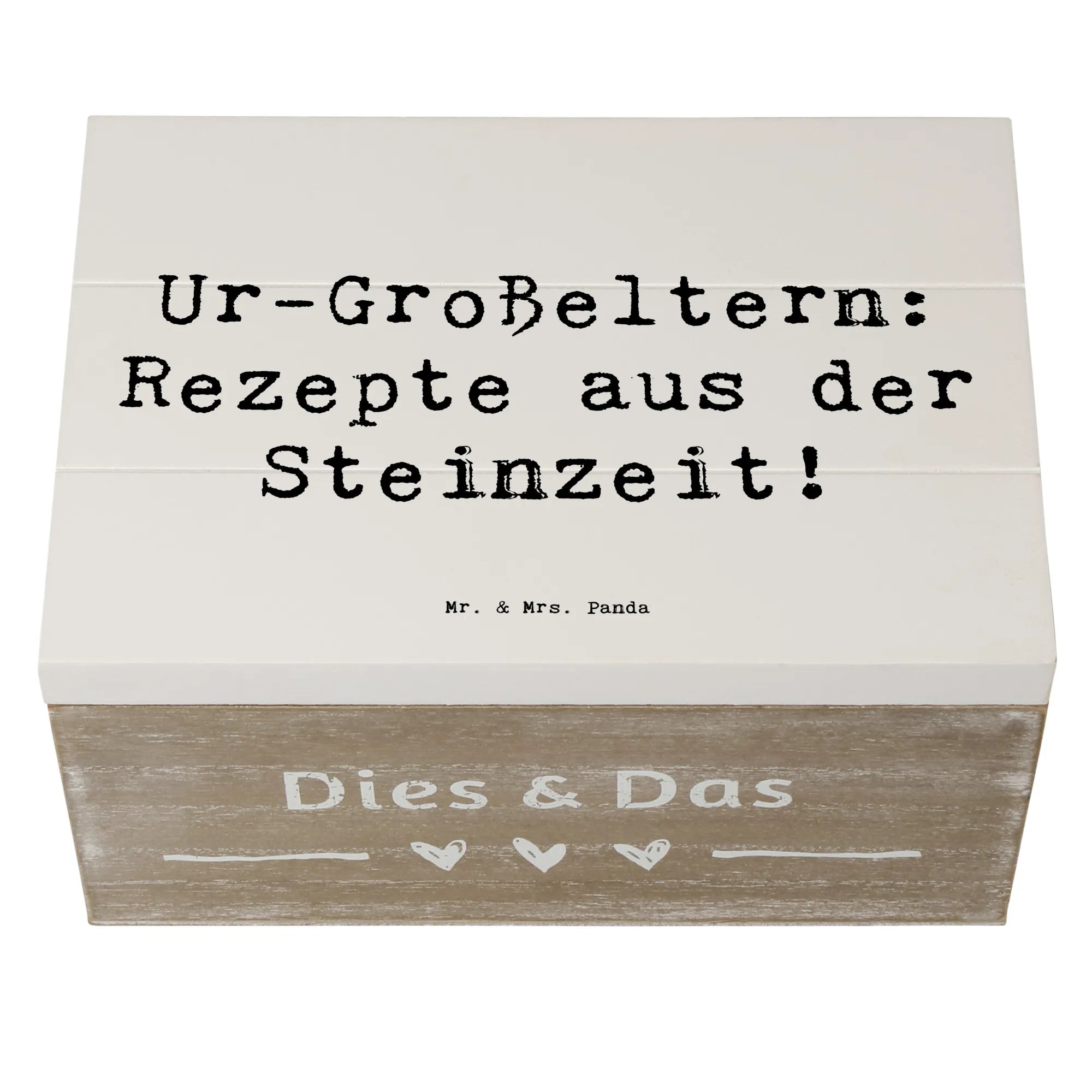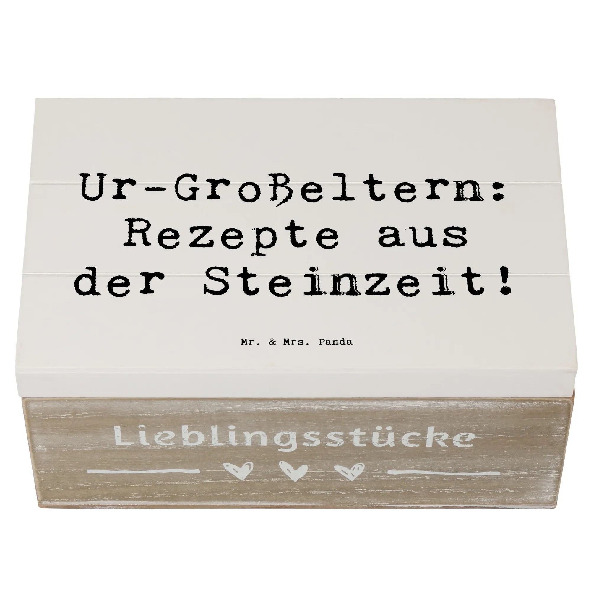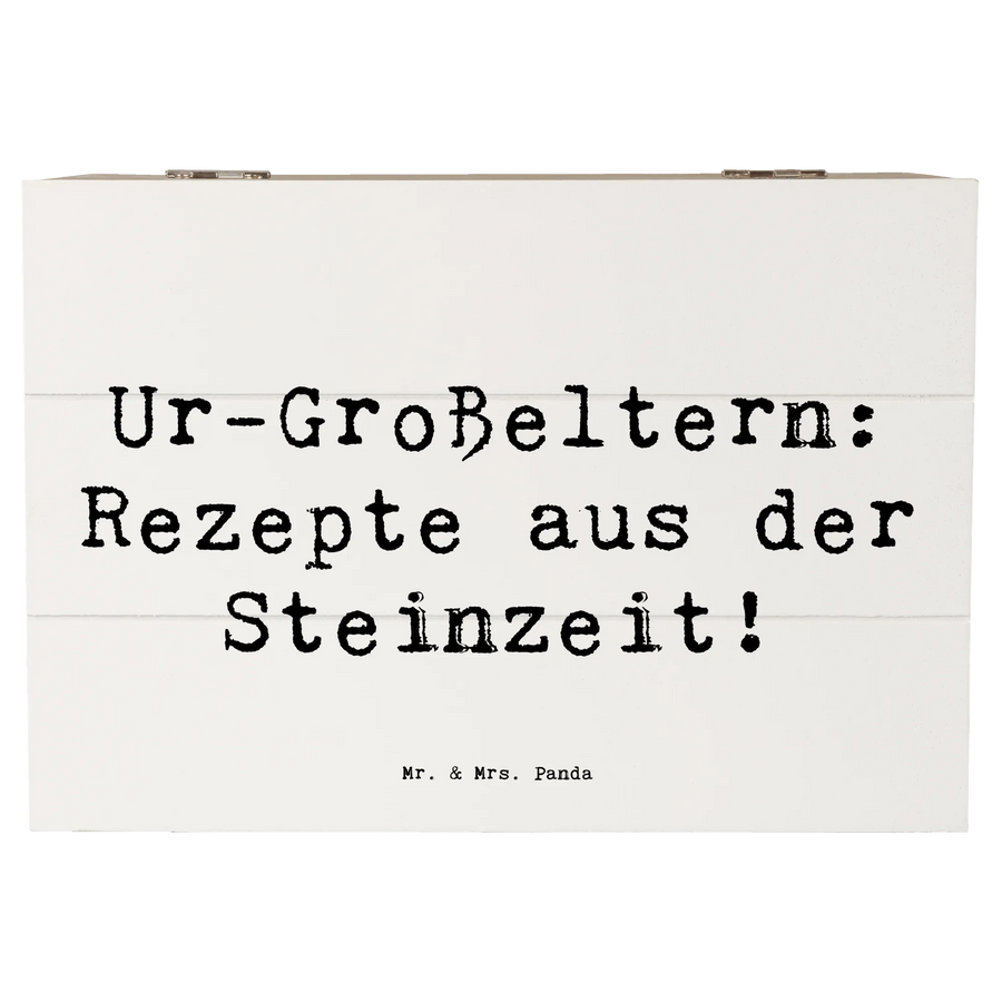 Die wunderschöne Holzkiste von Mr. & Mrs. Panda, bedruckt mit dem charmanten Motiv "Ur-Großeltern: Rezepte aus der Steinzeit!", ist das perfekte Geschenk für alle, die ihre Familientraditionen und Erinnerungen liebevoll aufbewahren möchten. Mit ihren Maßen von 180 mm x 250 mm x 150 mm bietet sie ausreichend Platz für die wertvollsten Schätze, sei es für Fotos, Kindheitserinnerungen oder andere familiäre Kostbarkeiten.