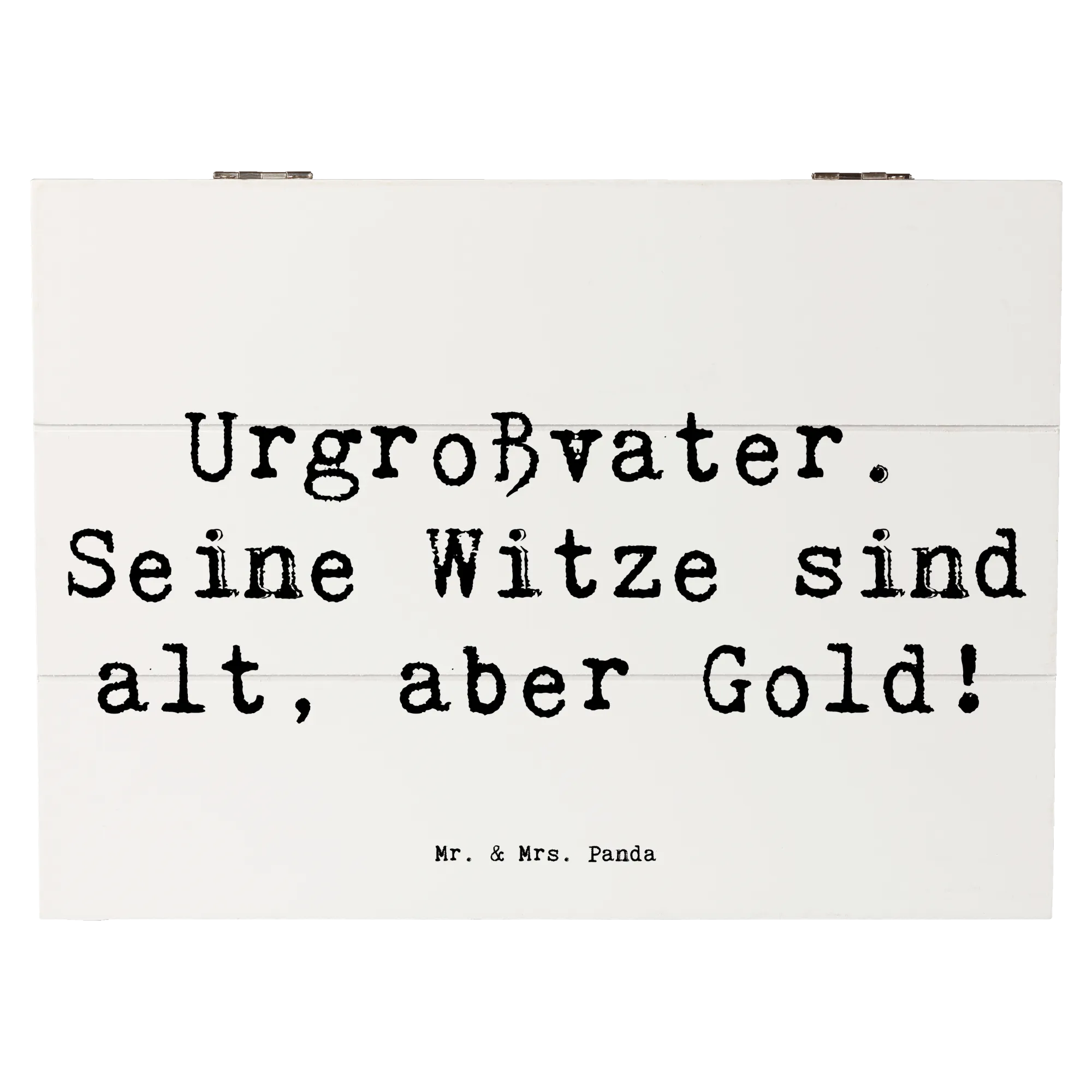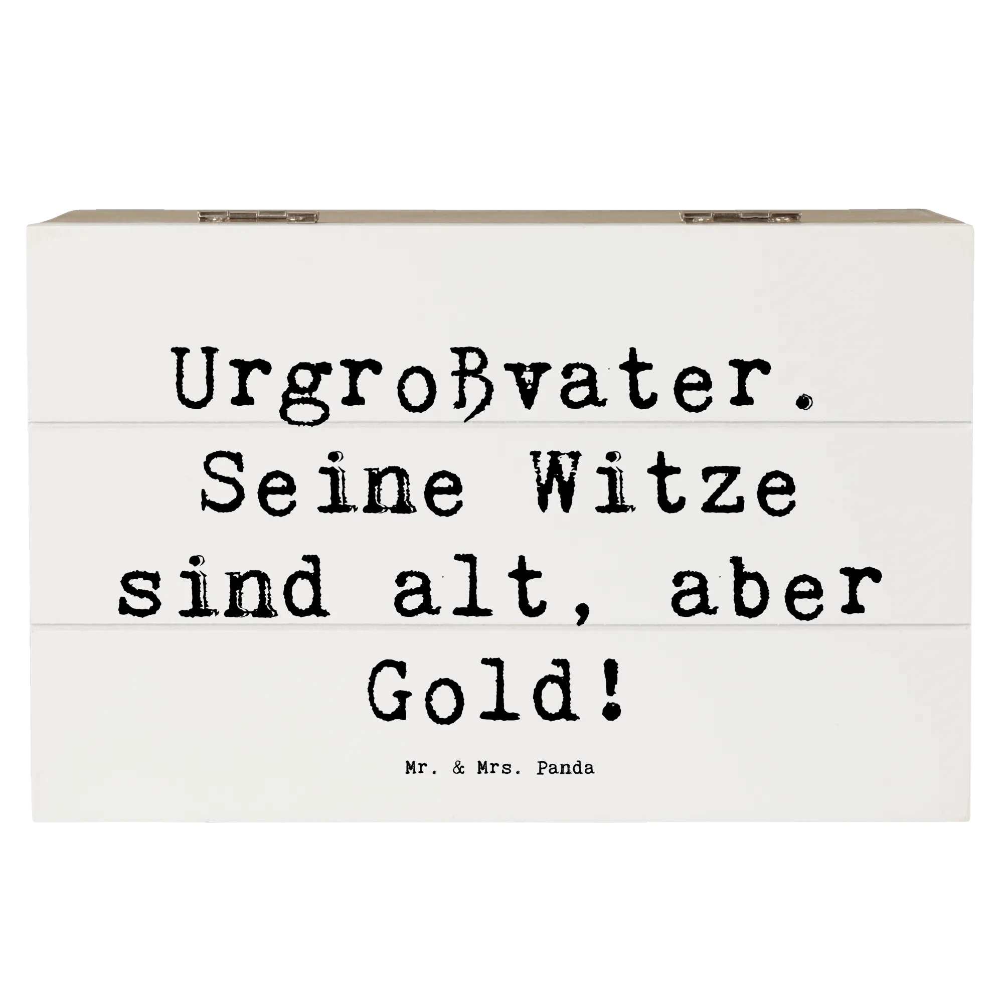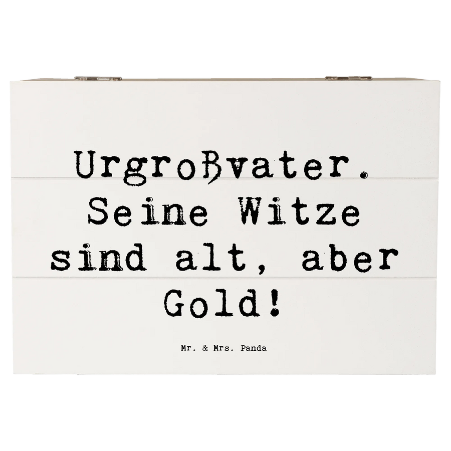 Die wunderschöne Holzkiste von Mr. & Mrs. Panda ist der perfekte Aufbewahrungsort für all die kleinen Schätze, die Dir am Herzen liegen. Mit dem liebevollen Motiv "Urgroßvater. Seine Witze sind alt, aber Gold!" ehrt diese Kiste nicht nur einen ganz besonderen Menschen in Deinem Leben, sondern sorgt auch dafür, dass wertvolle Erinnerungen langfristig bewahrt werden. Egal, ob es sich um Fotos, kleine Geschenke oder besondere Dinge aus der Kindheit handelt – in dieser Erinnerungskiste ist alles bestens aufgehoben.