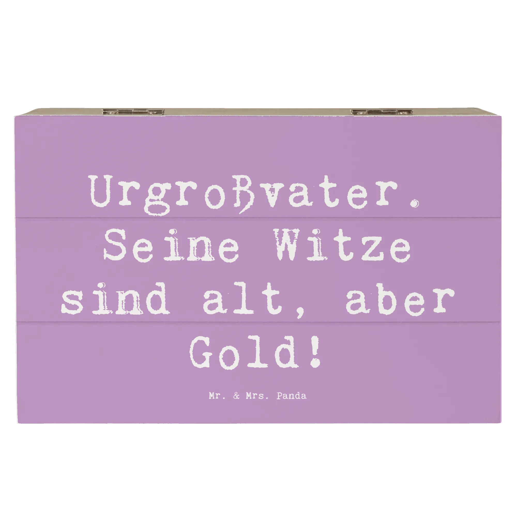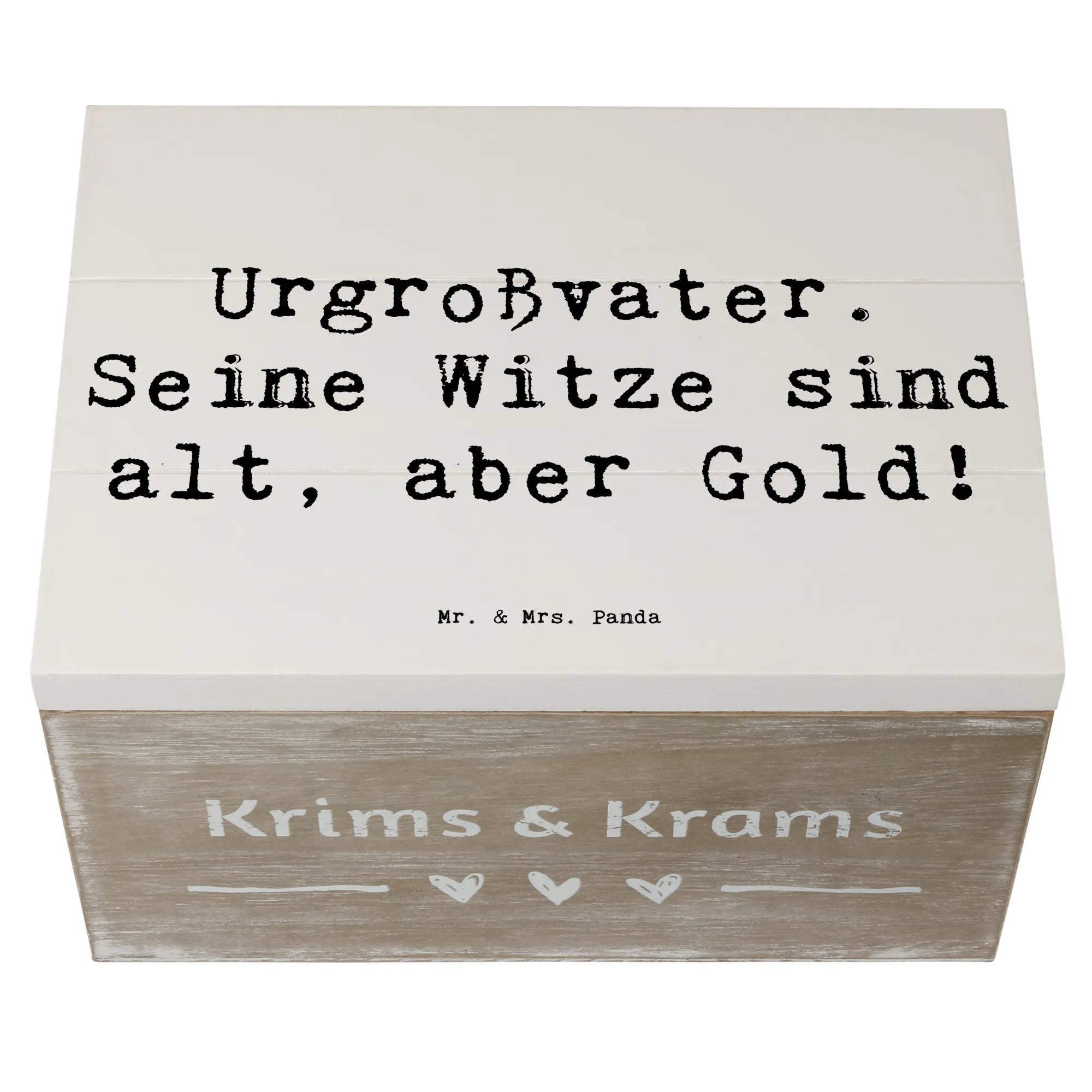 Auf der Kiste steht der witzige Spruch: "Urgroßvater. Seine Witze sind alt, aber Gold!", der mit viel Liebe und Humor gestaltet wurde. Damit ist sie nicht nur eine schöne Dekoration für Dein Zuhause, sondern auch ein echtes Stück Familiengeschichte, das generationsübergreifend Freude bereitet.