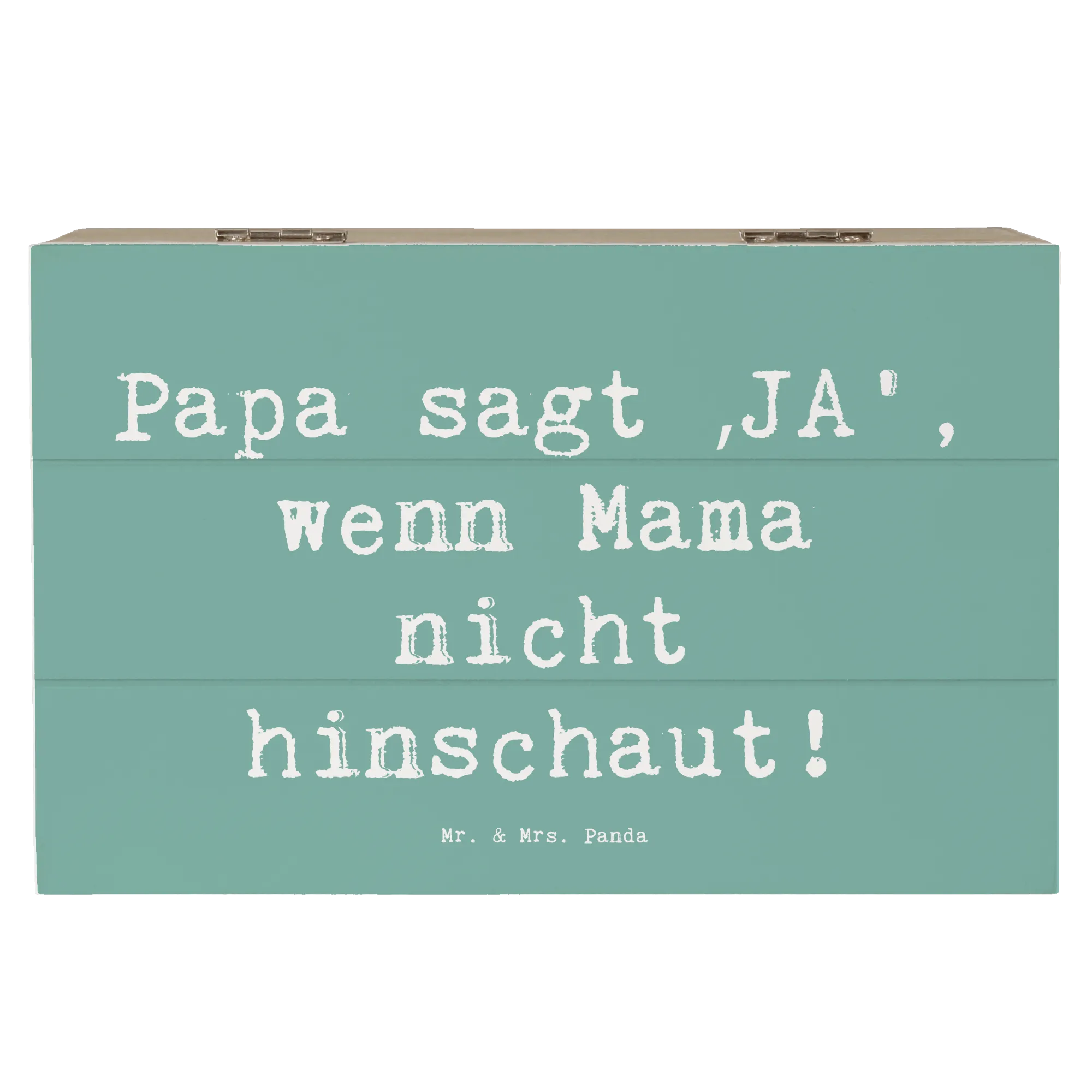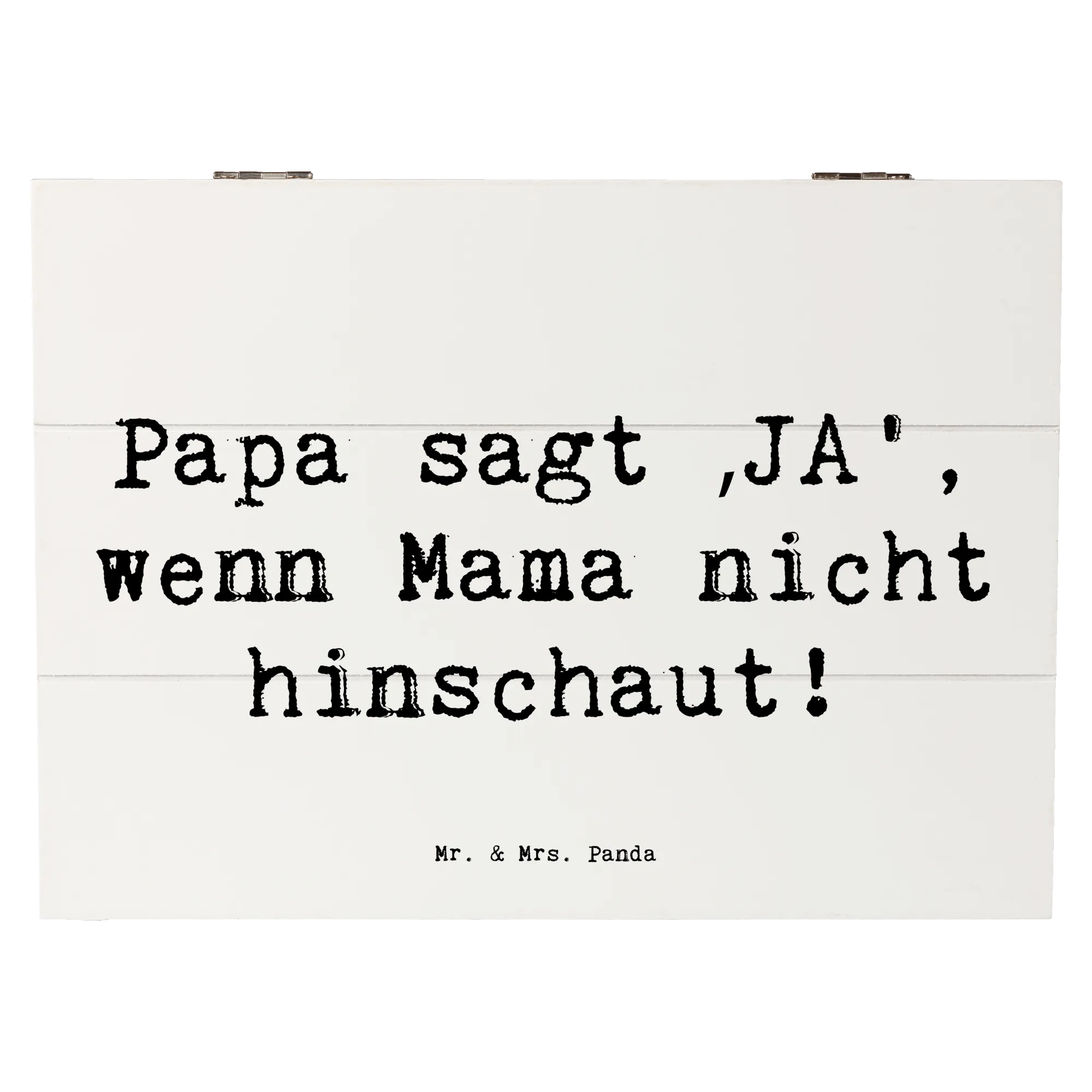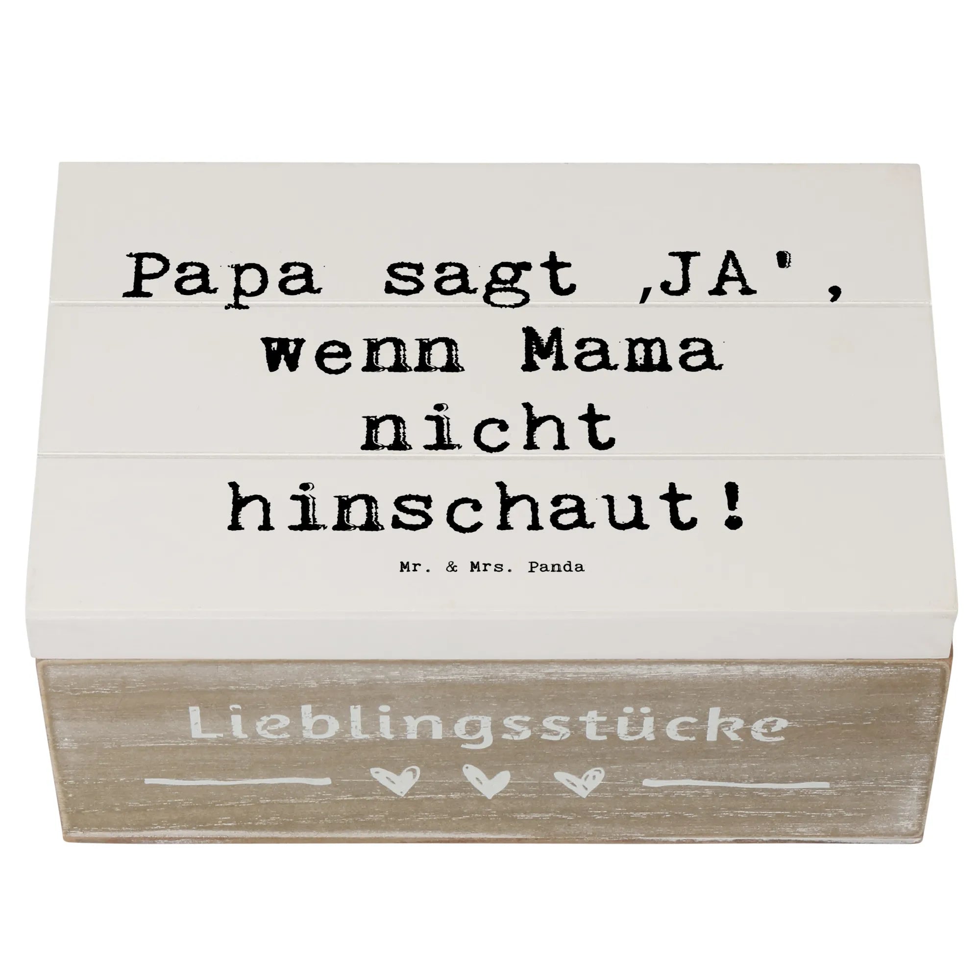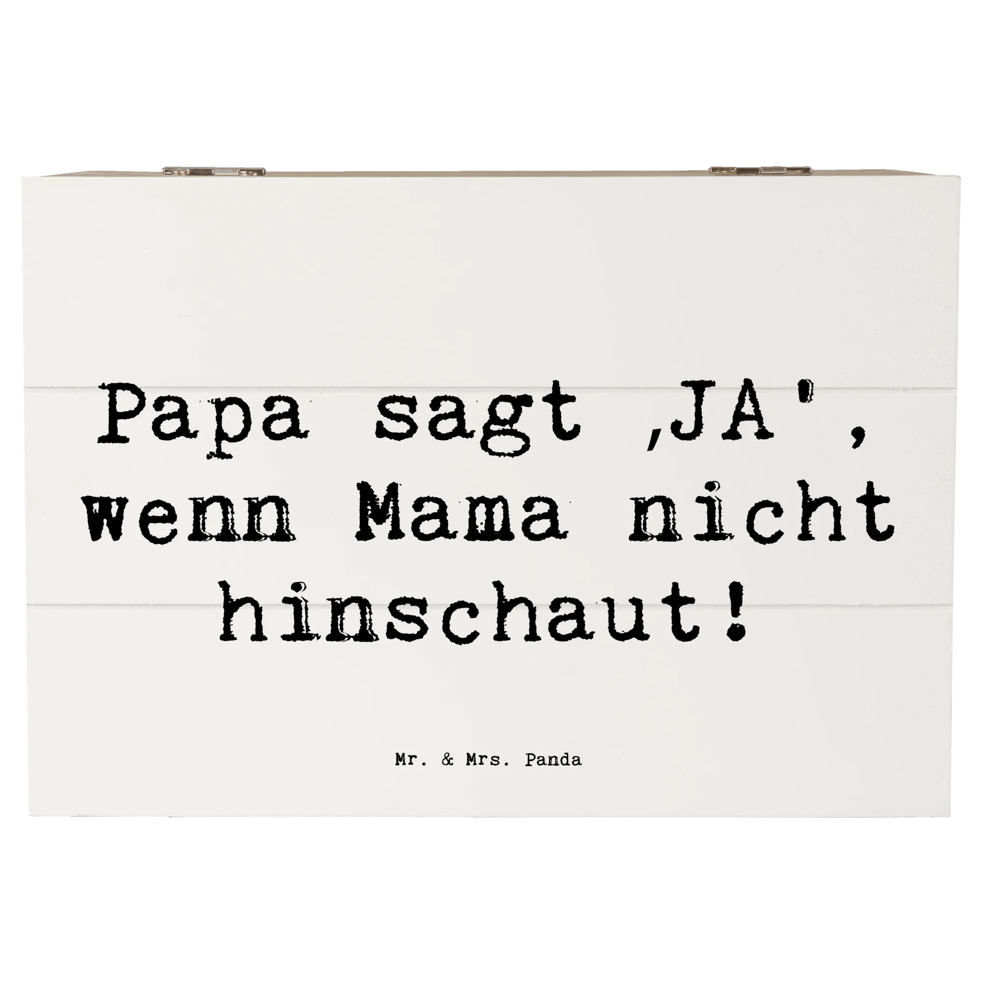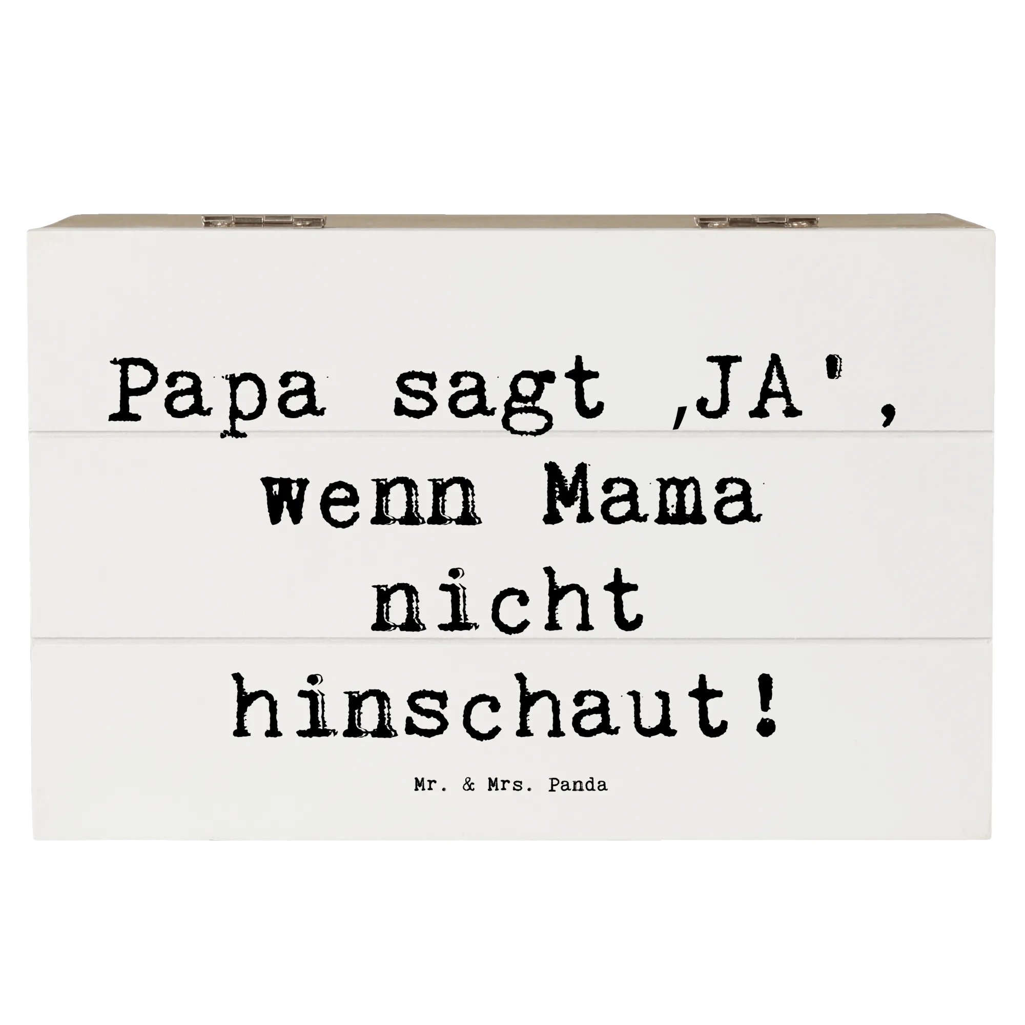 Entdecke die wundervolle Holzkiste von Mr. & Mrs. Panda, perfekt für jeden modernen Vater! Diese zauberhafte Kiste ist nicht nur ein praktischer Aufbewahrungsort, sondern auch eine liebevolle Erinnerung an Momente, die man nie vergessen möchte. Mit einem charmanten Motiv und dem Spruch „Papa sagt ‚JA‘, wenn Mama nicht hinschaut!“ ist diese Holzkiste eine tolle Möglichkeit, die besondere Verbindung zwischen Vätern und ihren Kindern zu zelebrieren.