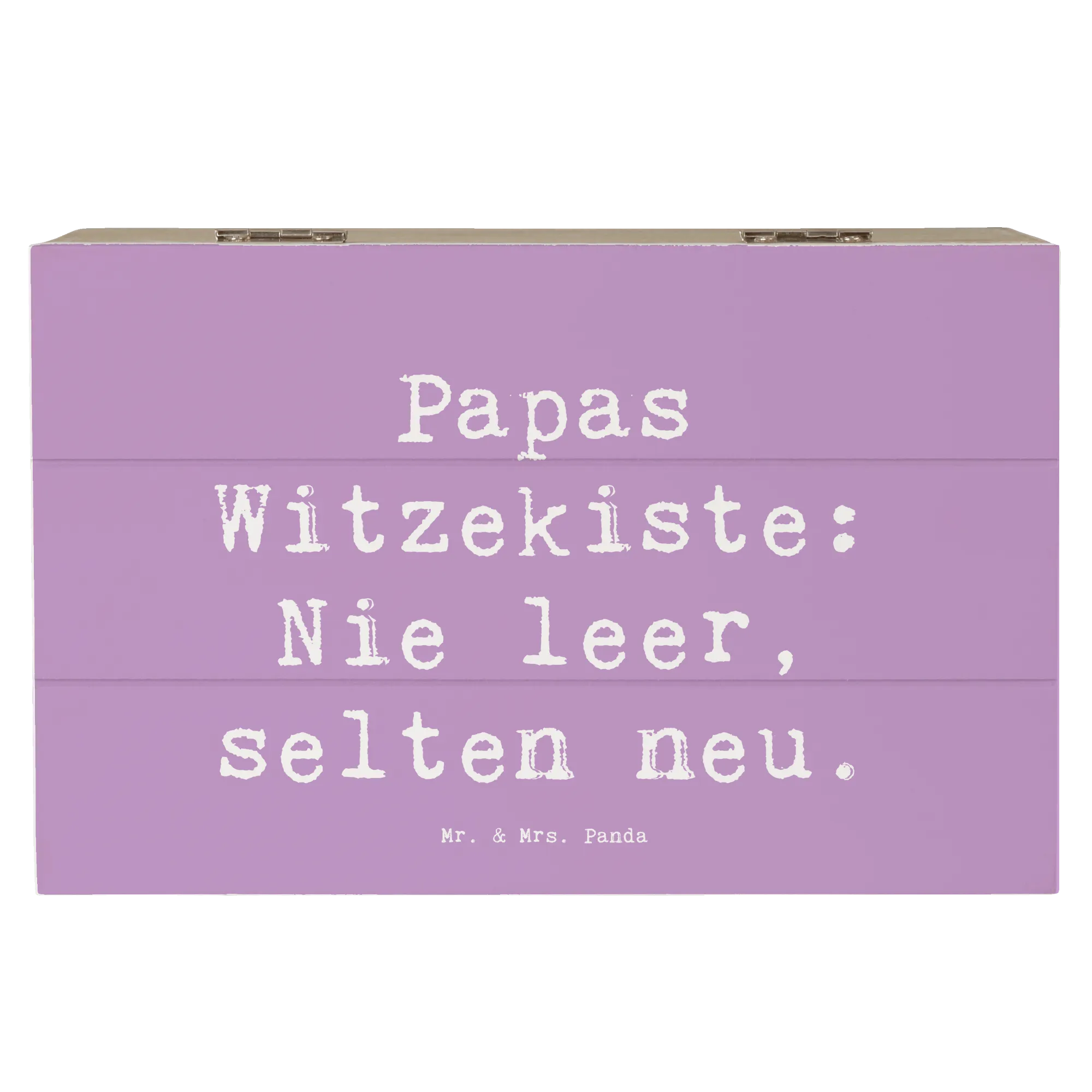 Ob Du die Kiste als Erinnerungskiste für die Kindheit, für den Vatertag oder einfach als liebevolles Dankeschön für Deinen Vater nutzt, sie ist immer eine gute Wahl. Die Kiste ist in einem zauberhaften Lavendeltraum-Farbton gestaltet und ziert das Motiv "Papas Witzekiste: Nie leer, selten neu." Damit wird sie zu einer charmanten Ergänzung in jedem Wohnraum.