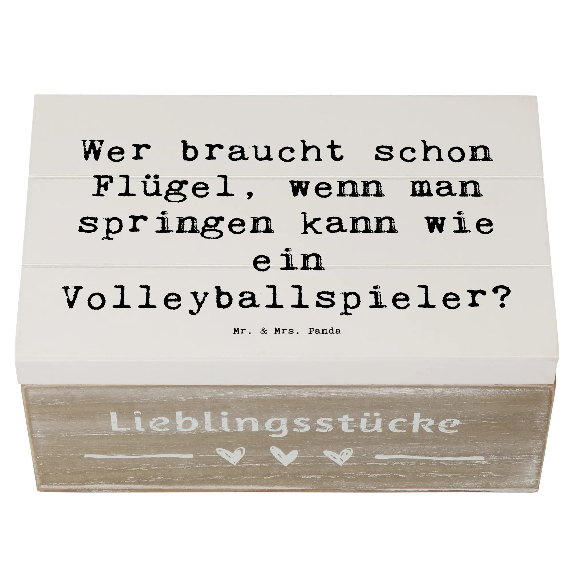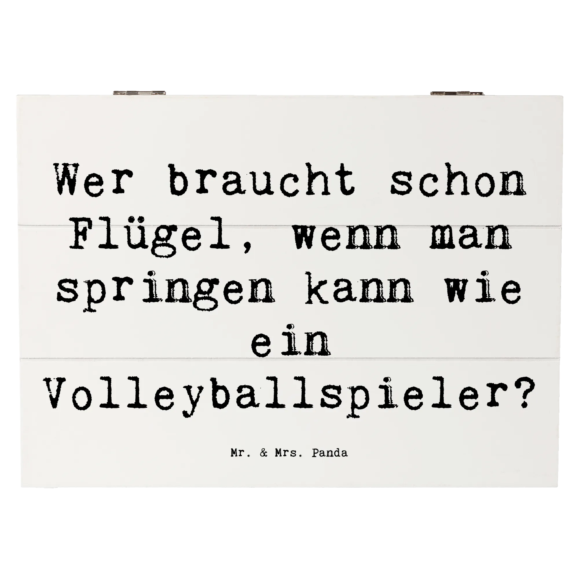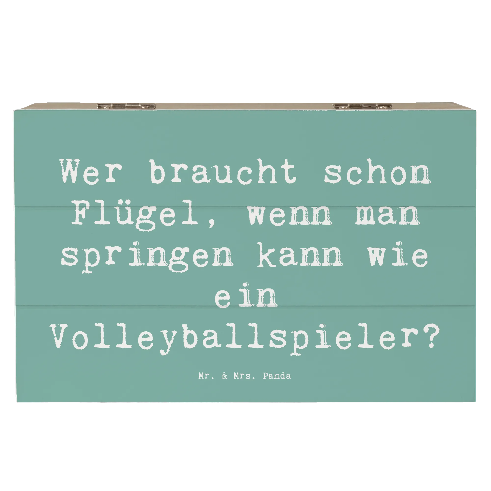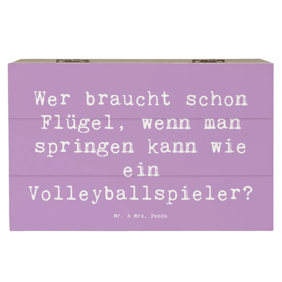 Eine wunderschöne Holzkiste von Mr. & Mrs. Panda – perfekt für alle Volleyball-Fans und Sportler. Diese Holzbox trägt den frechen Spruch „Wer braucht schon Flügel, wenn man springen kann wie ein Volleyballspieler?“ und gehört zur liebevoll gestalteten Sportarten-Kollektion von Mr. & Mrs. Panda. Das Motiv ist von Mrs. Panda aquarellhandgezeichnet und sorgt für eine persönliche, fröhliche Note.