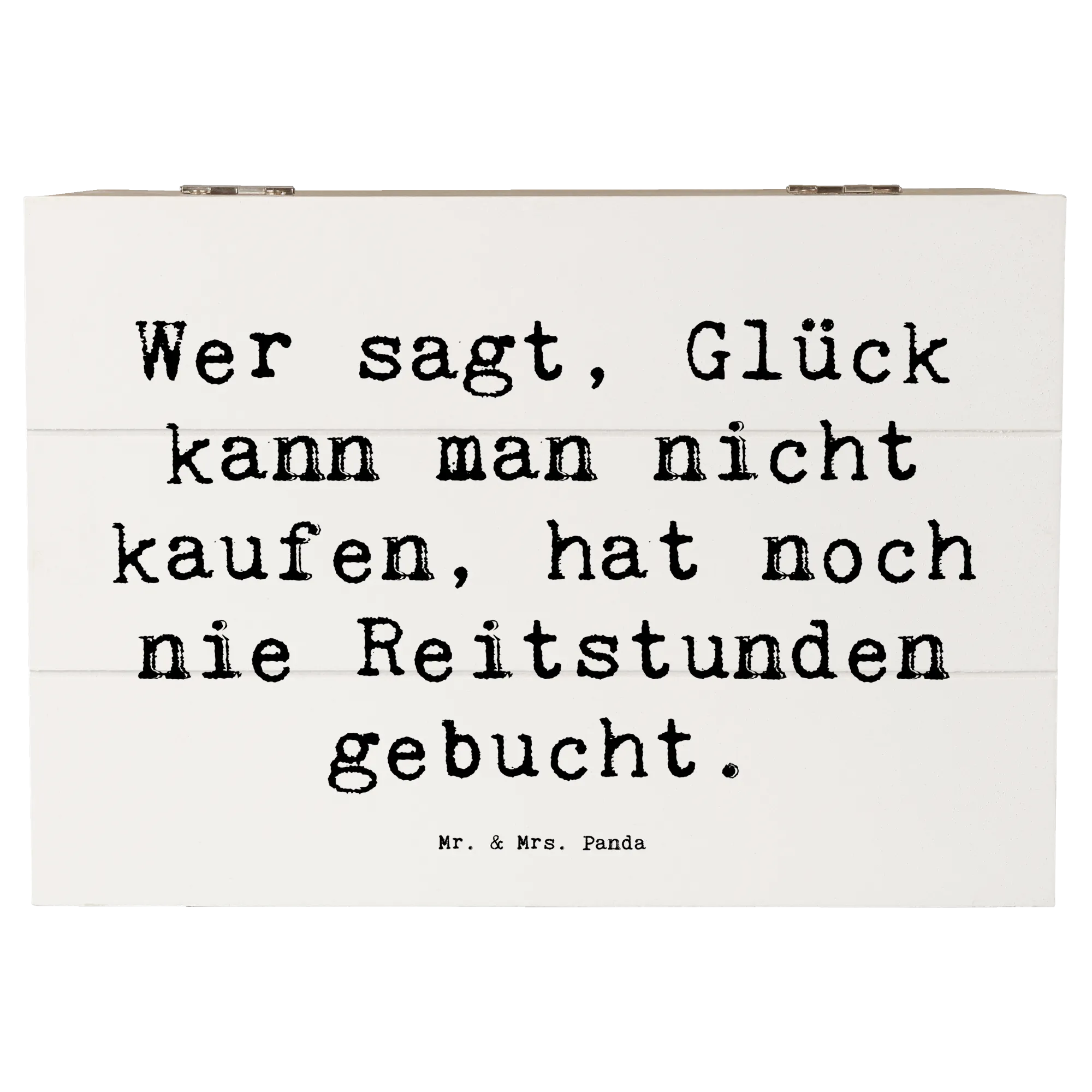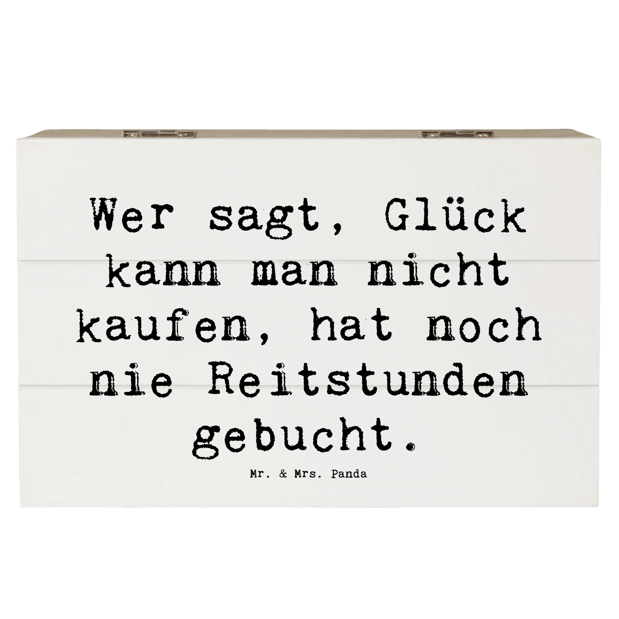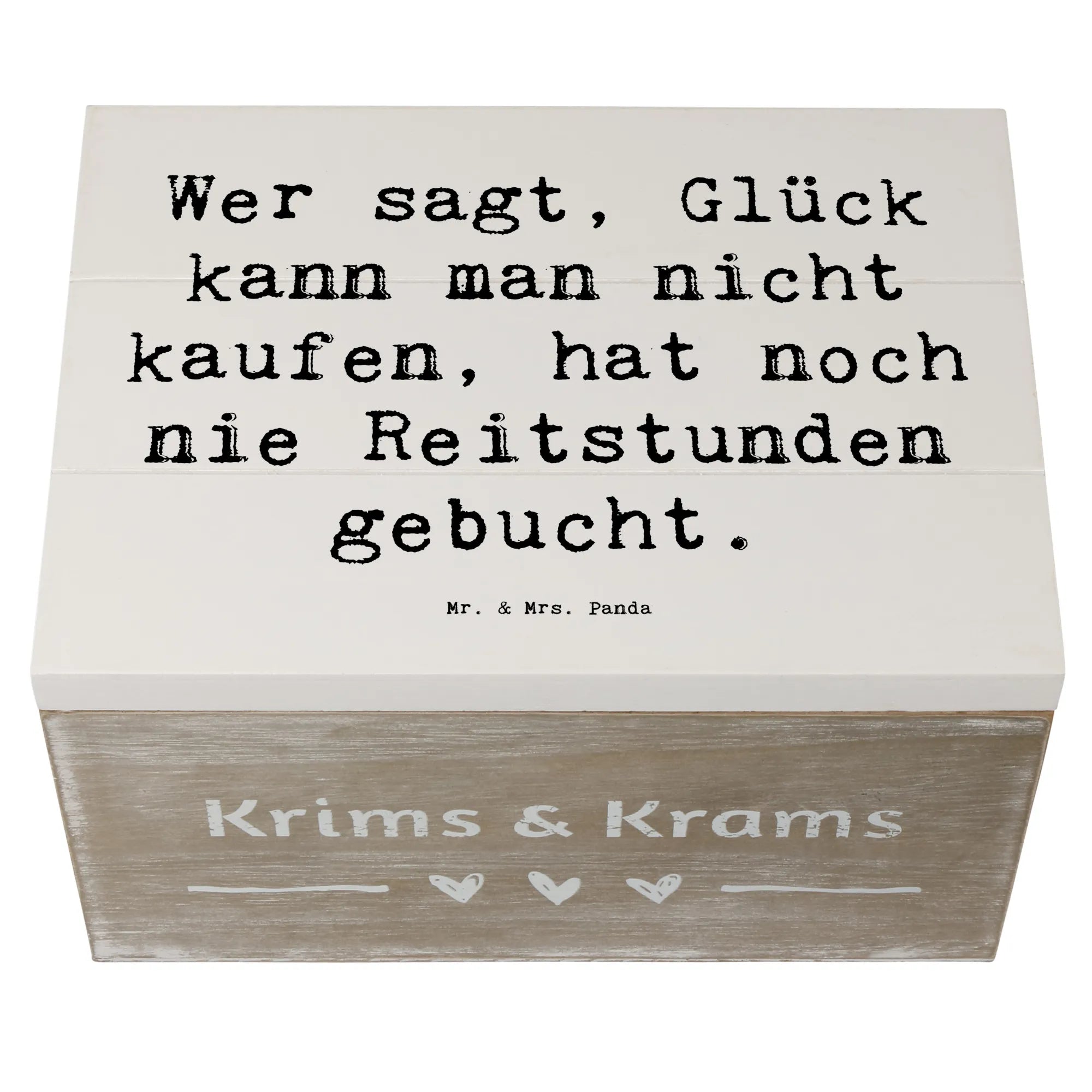 Die Kiste ist mit dem liebevollen Spruch 'Wer sagt, Glück kann man nicht kaufen, hat noch nie Reitstunden gebucht.' verziert, der all die Freude und Leidenschaft widerspiegelt, die mit dem Reiten verbunden ist. Ein ideales Geschenk für Geburtstage, Berufsabschiede oder einfach nur, um deiner Reitlehrerin zu danken!