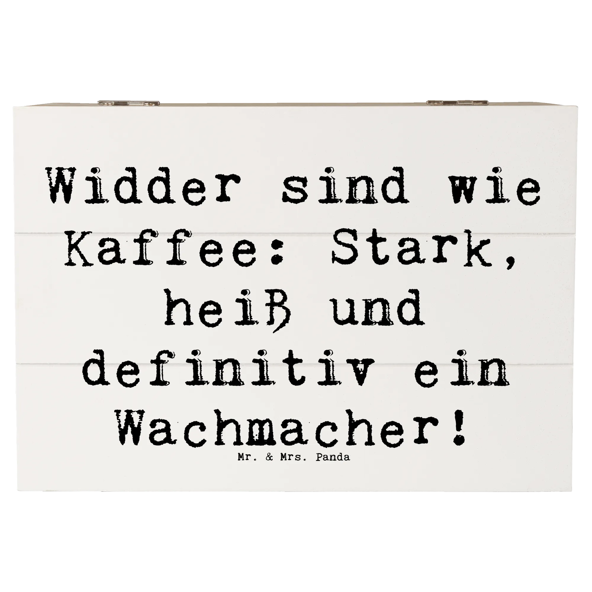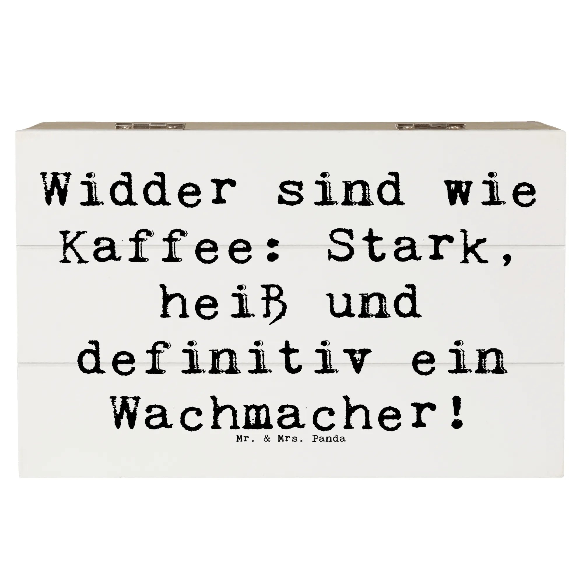 Du suchst nach dem perfekten Geschenk für einen Widder oder einen astrologiebegeisterten Freund? Dann ist die wunderschöne Holzkiste von Mr. & Mrs. Panda genau das Richtige! Jede Kiste ist aus hochwertiger, robuster Holzfaser gefertigt und trägt das wunderschöne Widder-Motiv, das mit dem spritzigen Spruch "Widder sind wie Kaffee: Stark, heiß und definitiv ein Wachmacher!" verziert ist.