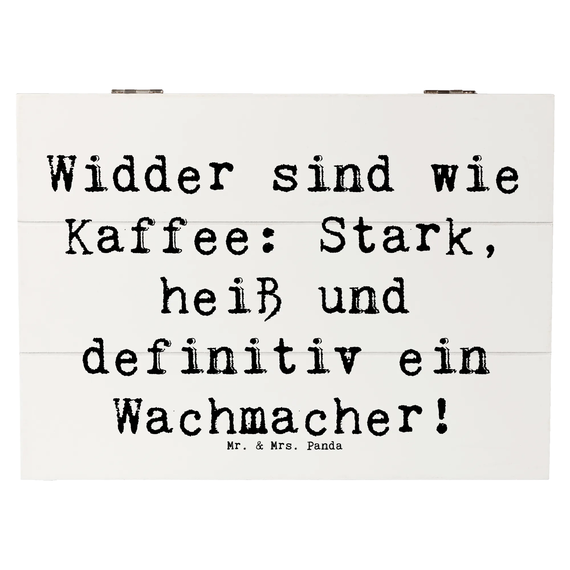 Die wunderschöne Holzkiste im Widder-Motiv von Mr. & Mrs. Panda ist das perfekte Geschenk für astrologie-begeisterte Menschen! Mit einer liebevollen Darstellung des Widders und dem Spruch "Widder sind wie Kaffee: Stark, heiß und definitiv ein Wachmacher!" ist diese Kiste nicht nur eine stilvolle Dekoration, sondern auch ein idealer Aufbewahrungsort für kostbare Erinnerungen. Ob Fotos von unvergesslichen Momenten, kleine Schätze aus der Kindheit oder Erinnerungsstücke zu besonderen Anlässen – diese Erinnerungskiste bietet genügend Platz für all das und mehr!