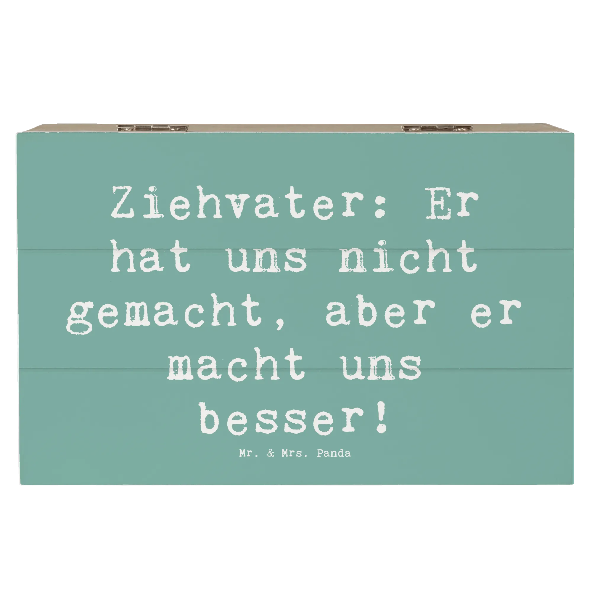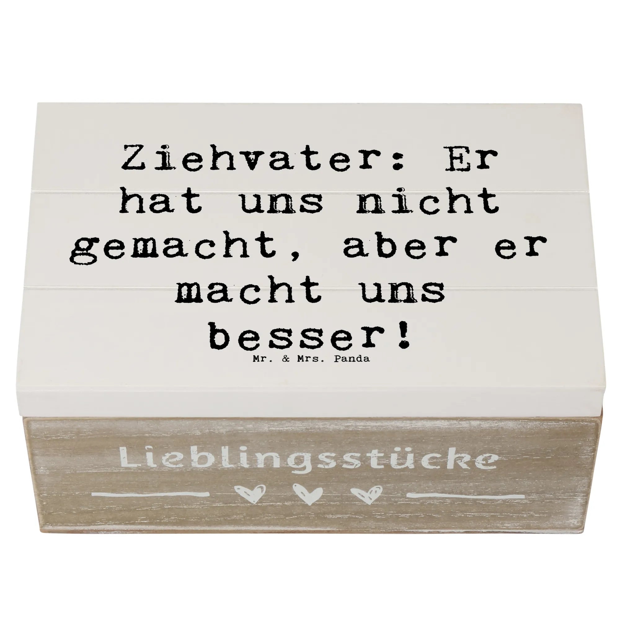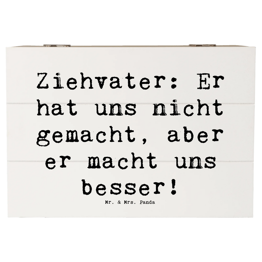Entdecke die wunderschöne Holzkiste von Mr. & Mrs. Panda mit dem besonderen Motiv "Ziehvater: Er hat uns nicht gemacht, aber er macht uns besser!" Diese Kiste ist nicht nur ein praktischer Aufbewahrungsort für all deine wertvollen Schätze, sondern auch ein tolles Geschenk für alle Ziehväter da draußen, die im Leben vieler eine prägende Rolle spielen.