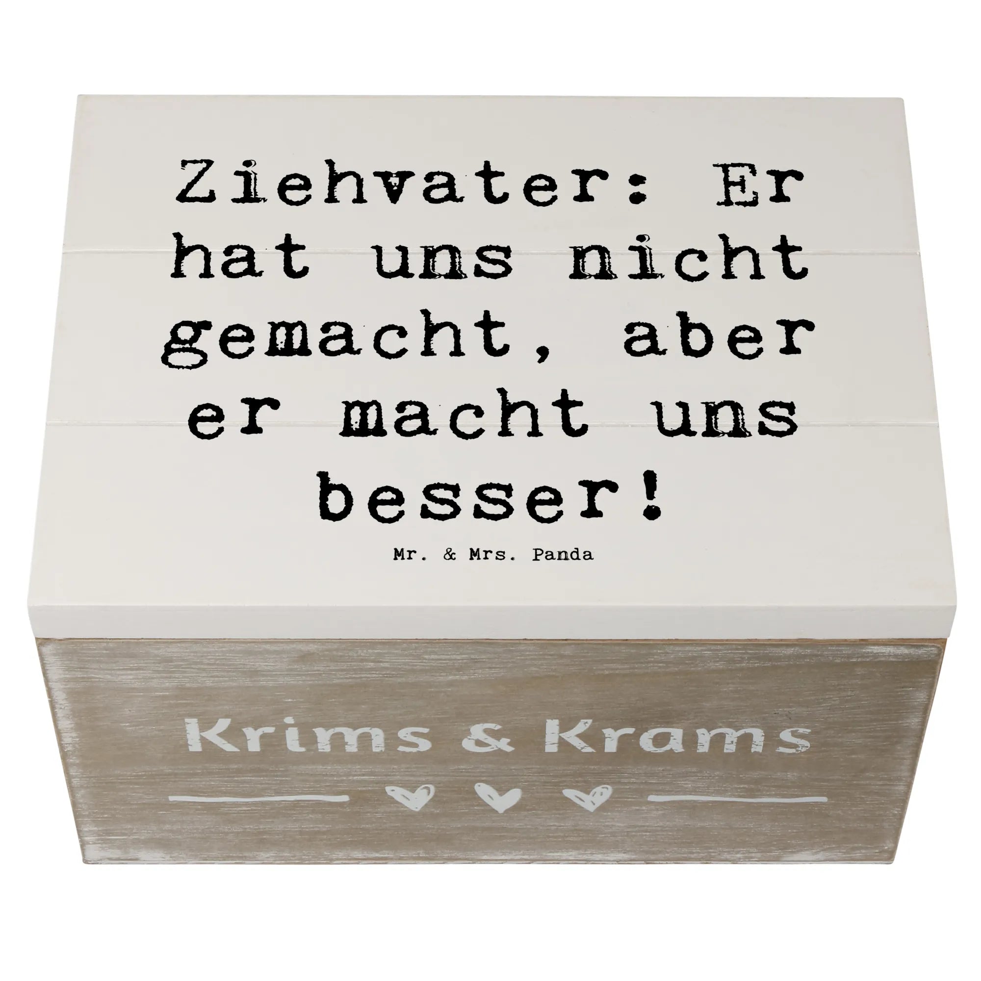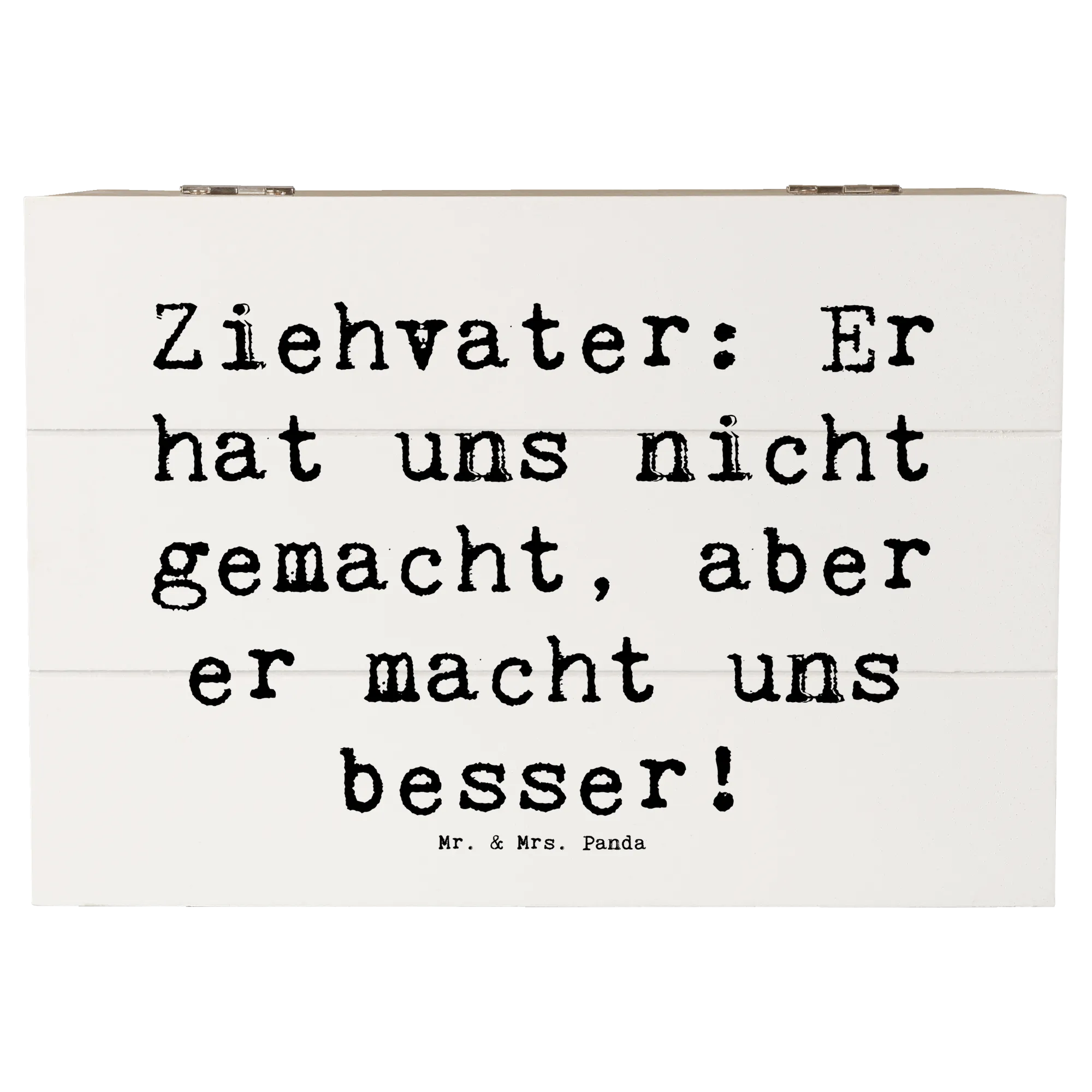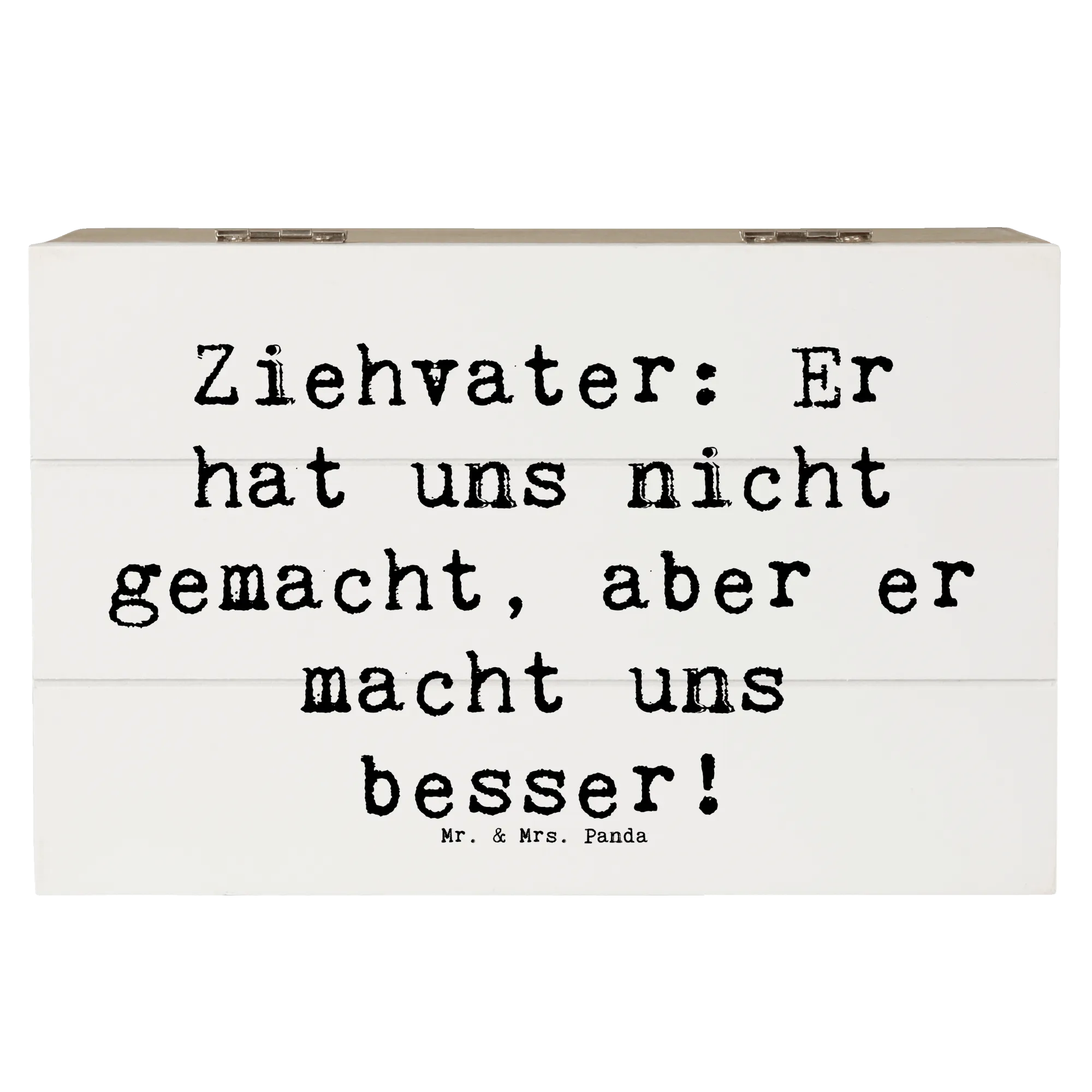 Entdecke die wunderschöne Holzkiste von Mr. & Mrs. Panda mit dem besonderen Motiv "Ziehvater: Er hat uns nicht gemacht, aber er macht uns besser!" Diese Kiste ist nicht nur ein praktischer Aufbewahrungsort für all deine wertvollen Schätze, sondern auch ein tolles Geschenk für alle Ziehväter da draußen, die im Leben vieler eine prägende Rolle spielen.