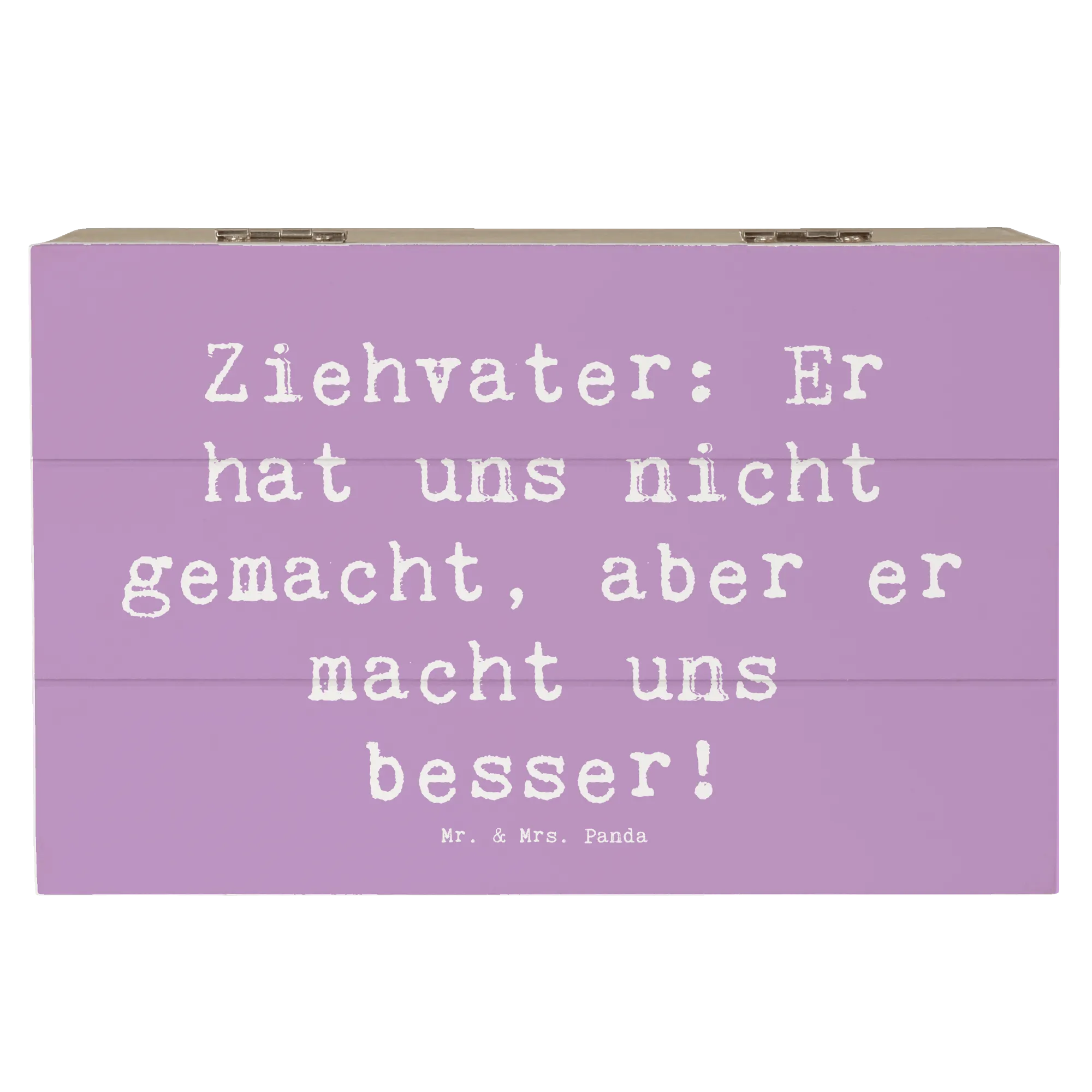 Die wunderschöne Holzkiste von Mr. & Mrs. Panda ist das perfekte Geschenk für alle, die einen besonderen Ziehvater in ihrem Leben haben. Mit dem liebevollen Spruch "Ziehvater: Er hat uns nicht gemacht, aber er macht uns besser!" ist diese Kiste eine herzliche Hommage an all die Liebe, Fürsorge und Unterstützung, die ein Ziehvater gibt.