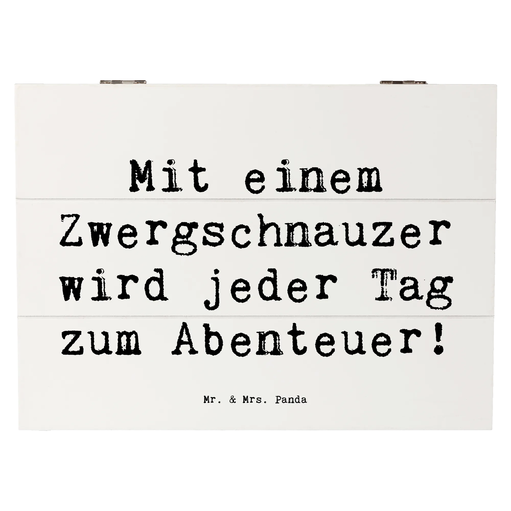 Die wunderschöne Holzkiste von Mr. & Mrs. Panda mit dem Motiv des Zwergschnauzers ist das perfekte Geschenk für jeden Hundefreund! Ob zur Geburt, zur Taufe, für die Kommunion oder einfach nur als liebevolles Geschenk zwischendurch – diese Kiste ist nicht nur praktisch, sondern auch besonders herzlich. Sie bietet dir einen idealen Ort, um wertvolle Erinnerungen aufzubewahren – sei es für Fotos, kleine Schätze oder besondere Andenken aus der Kindheit. Mit liebevollen Sprüchen, wie 'Mit einem Zwergschnauzer wird jeder Tag zum Abenteuer!', bringt diese Kiste eine Portion Freude in dein Zuhause.