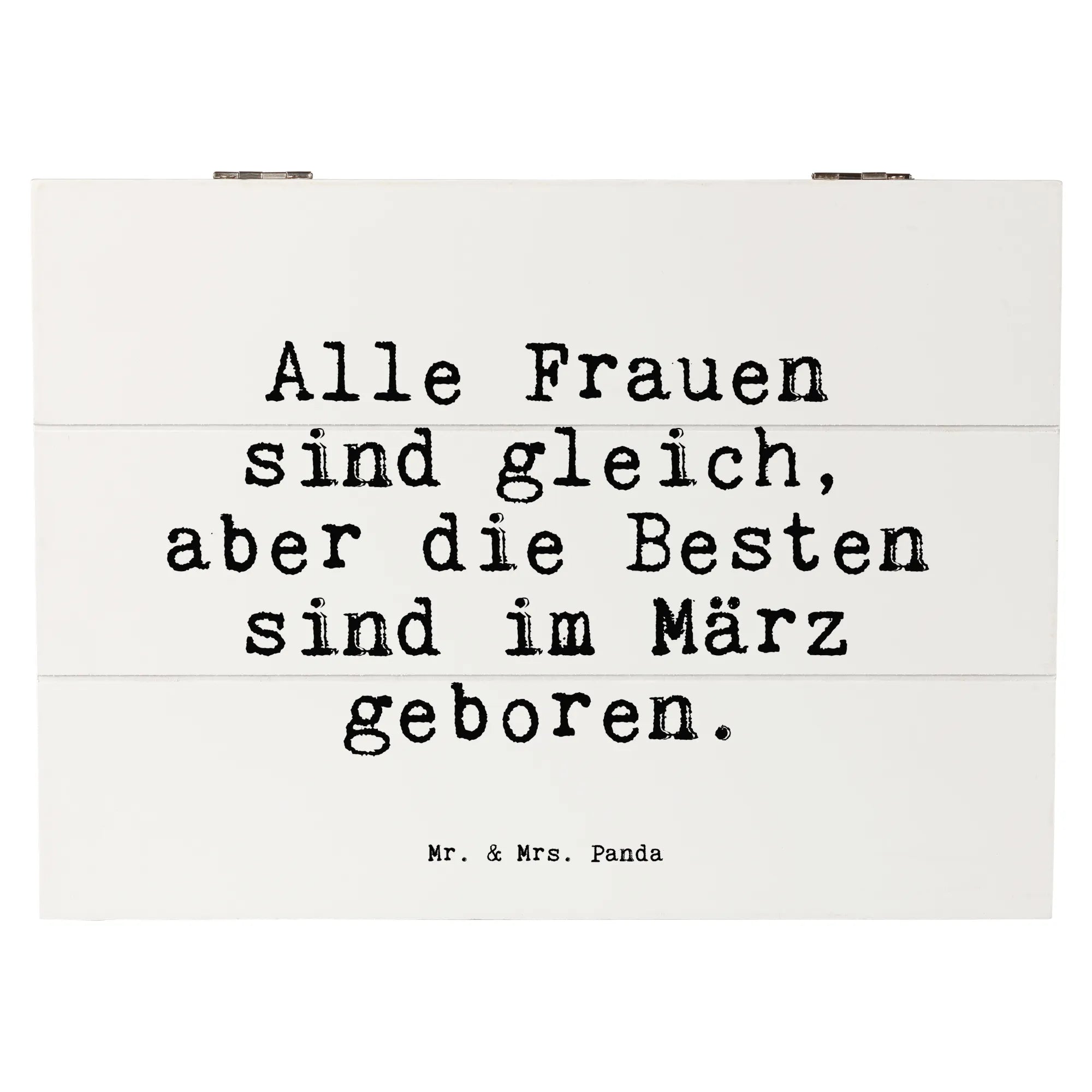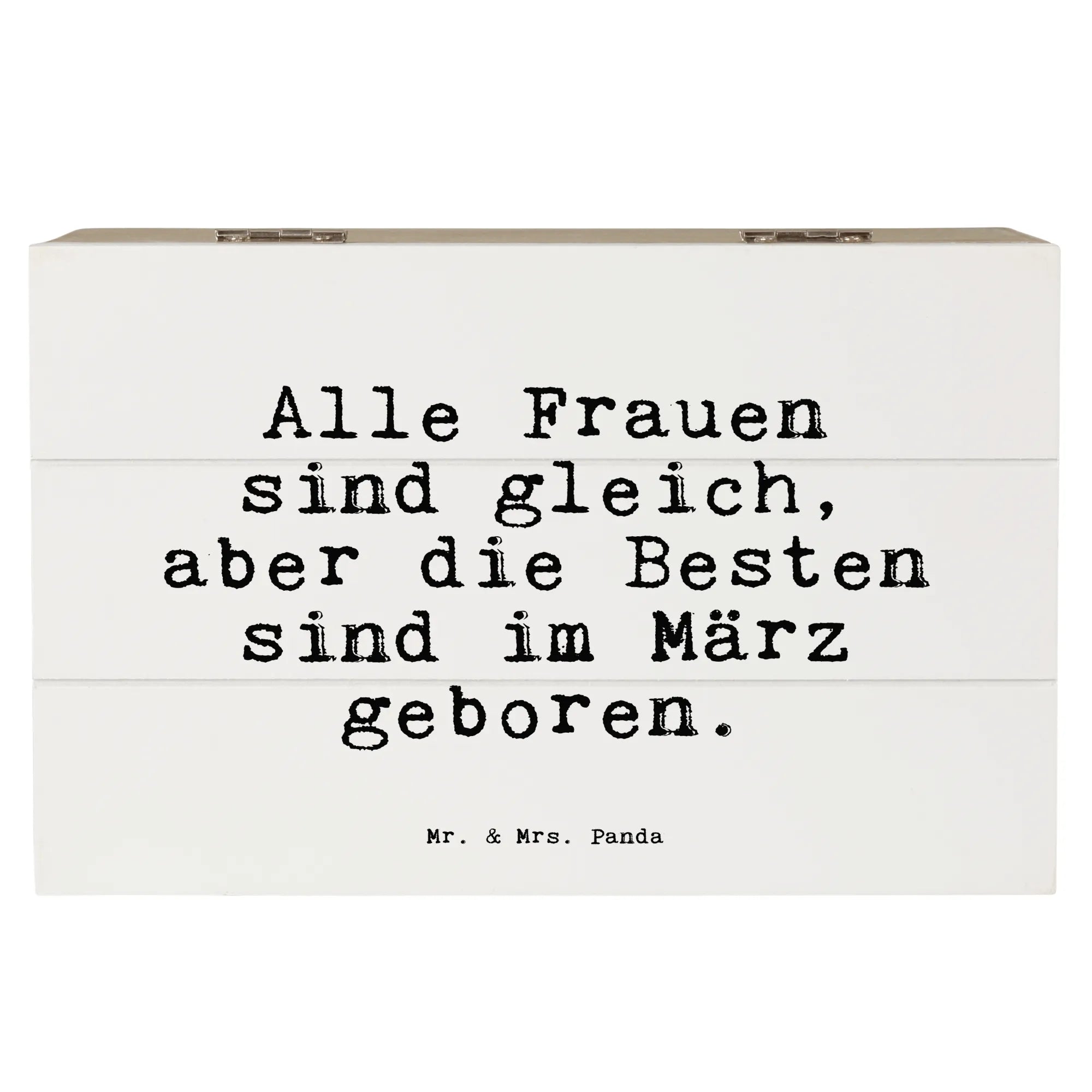 Die wunderschöne Holzkiste "Alle Frauen sind gleich, aber die Besten sind im März geboren" von Mr. & Mrs. Panda ist das perfekte Geschenk für alle besonderen Frauen, die im Monat März das Licht der Welt erblickt haben. Egal ob zum Geburtstag, zur Kommunion, Konfirmation oder einfach nur als liebevolle Geste – diese Kiste ist ideal, um unvergessliche Erinnerungen aufzubewahren.