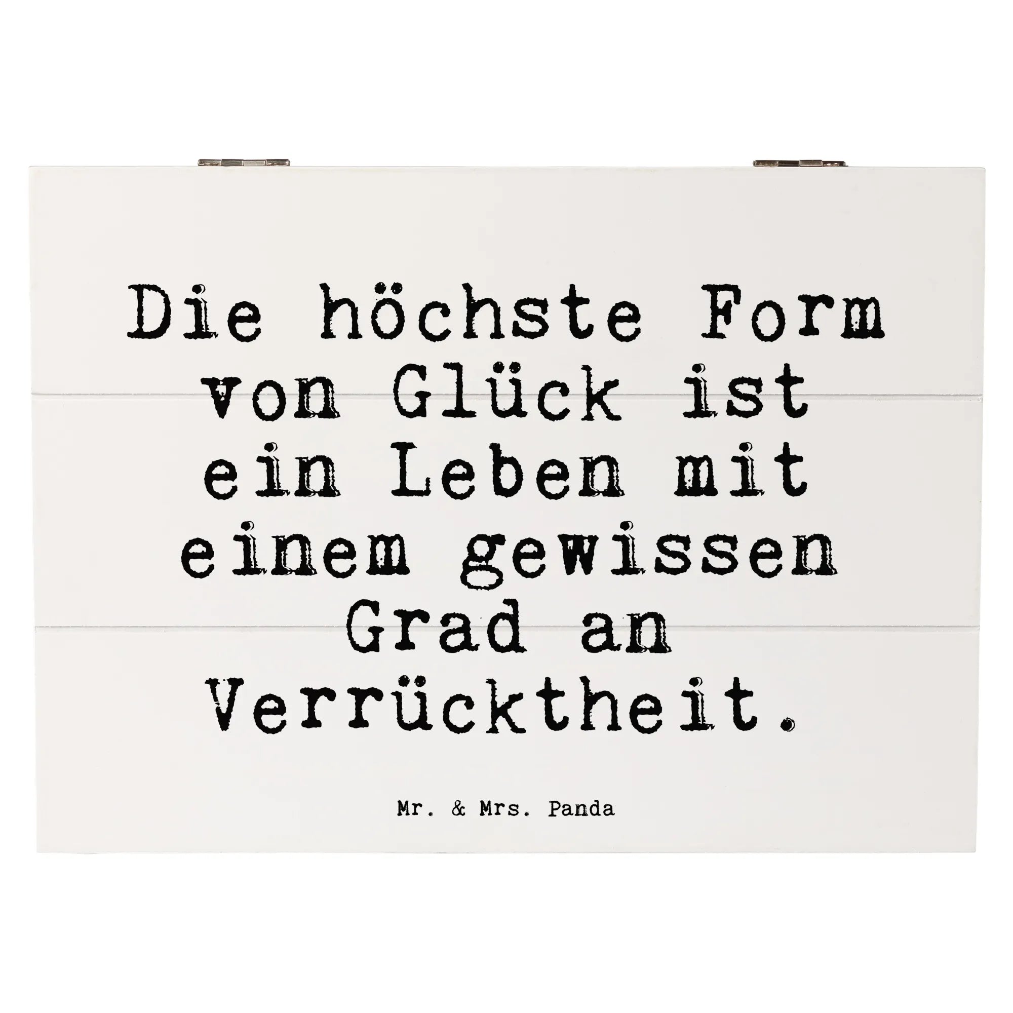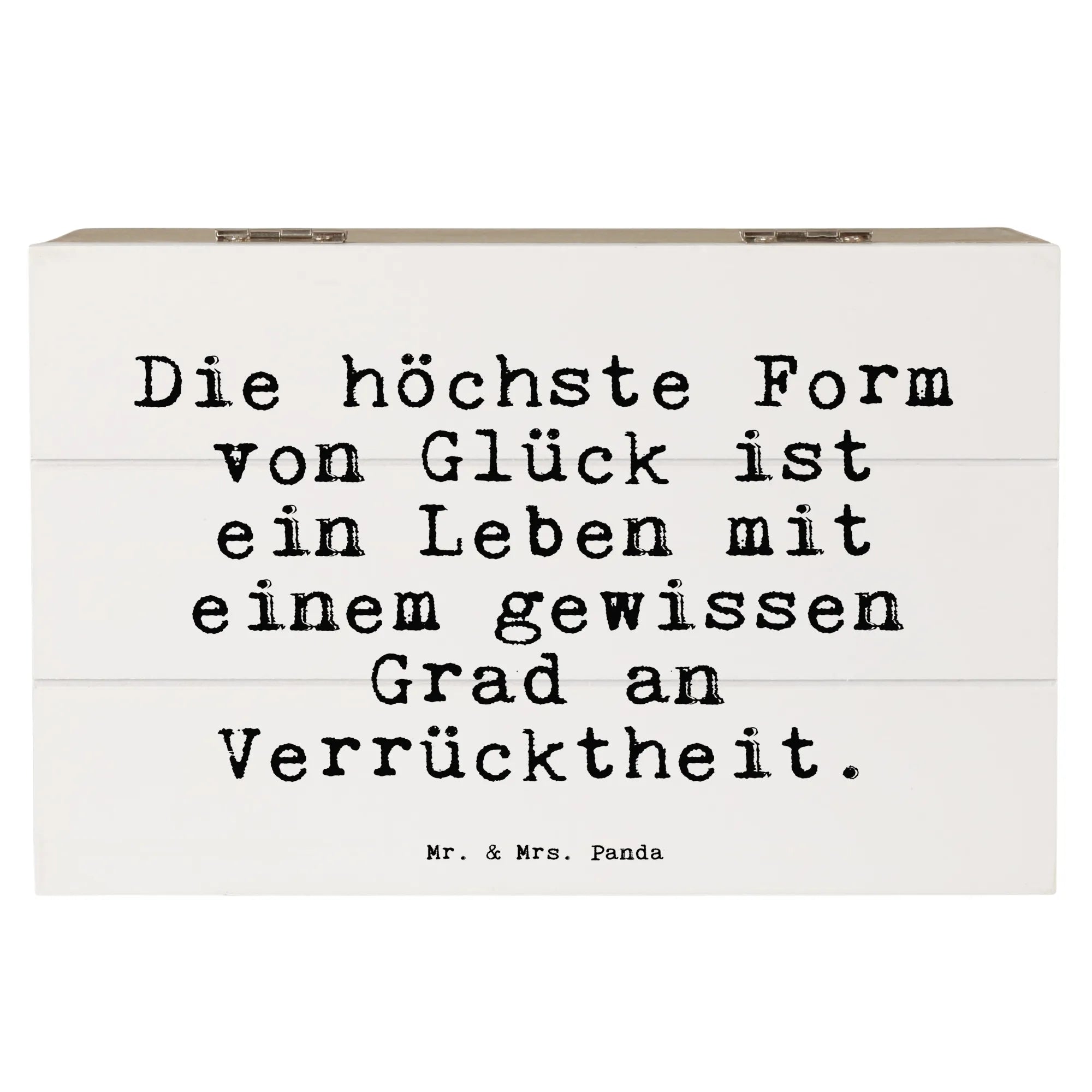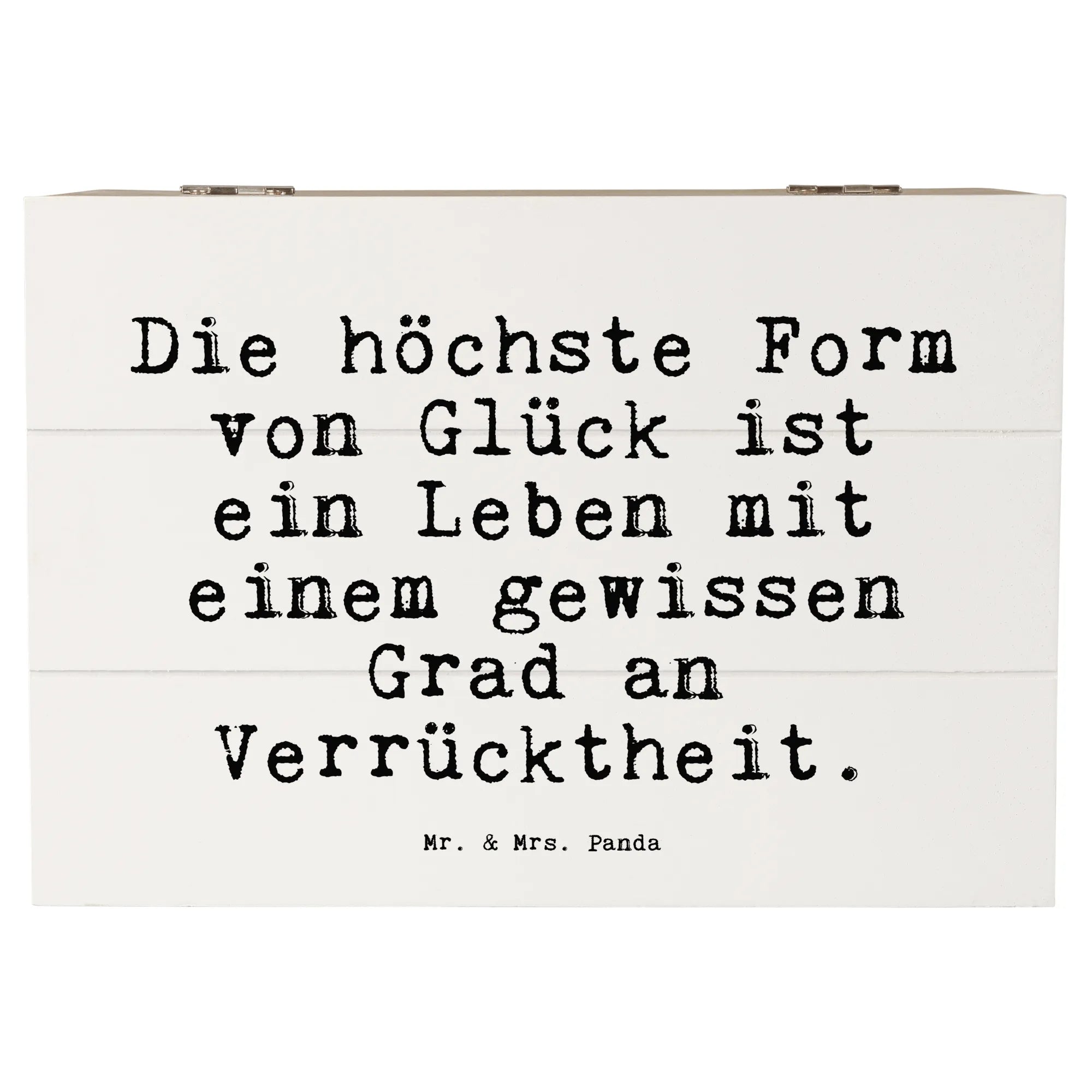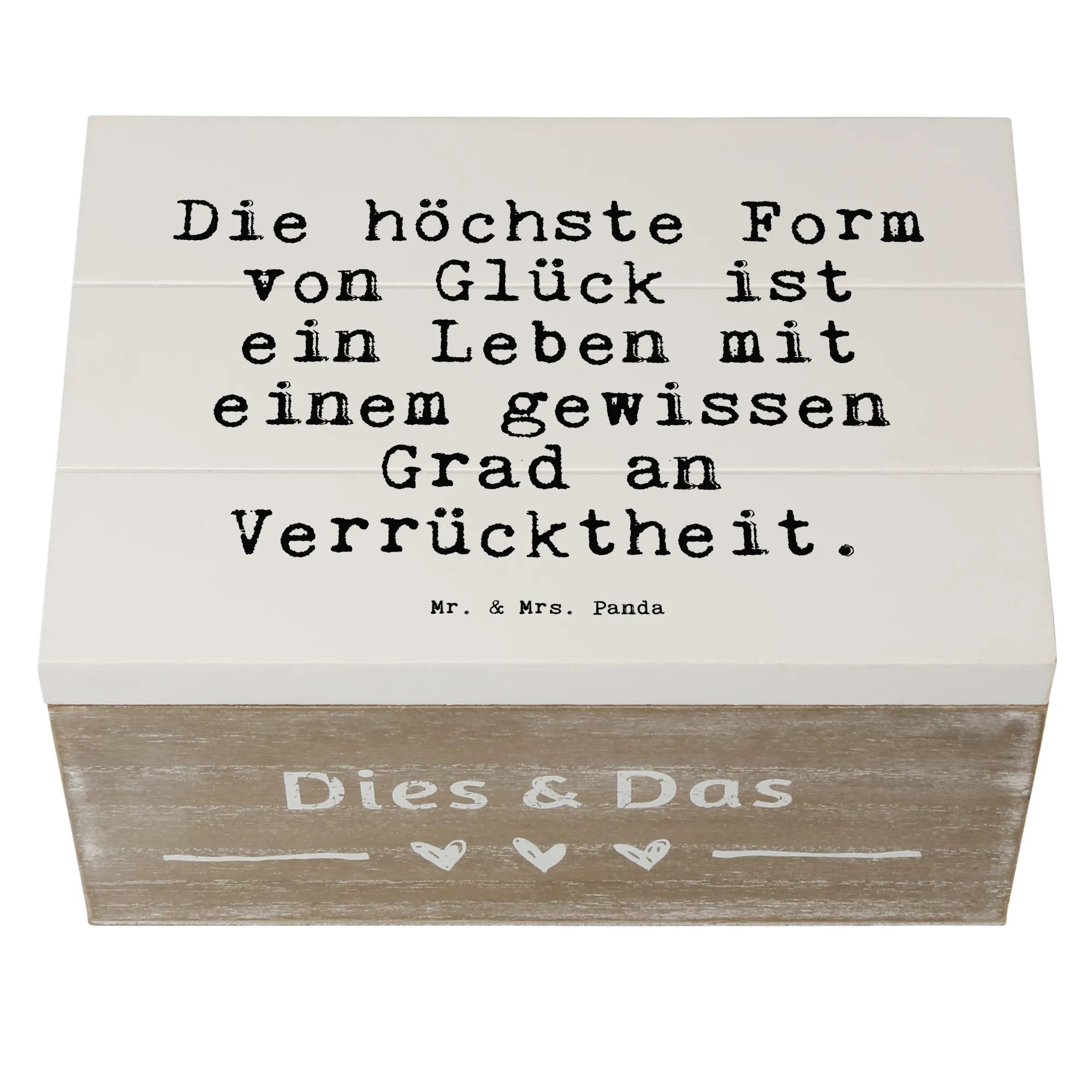 Die wunderschöne Holzkiste von Mr. & Mrs. Panda ist ein einzigartiges Geschenk, das perfekte Erinnerungen bewahrt. Diese nostalgische Erinnerungskiste, bedruckt mit dem inspirierenden Spruch 'Die höchste Form von Glück ist ein Leben mit einem gewissen Grad an Verrücktheit.', lädt dazu ein, all die kleinen Schätze, die das Leben zu bieten hat, stilvoll aufzubewahren.