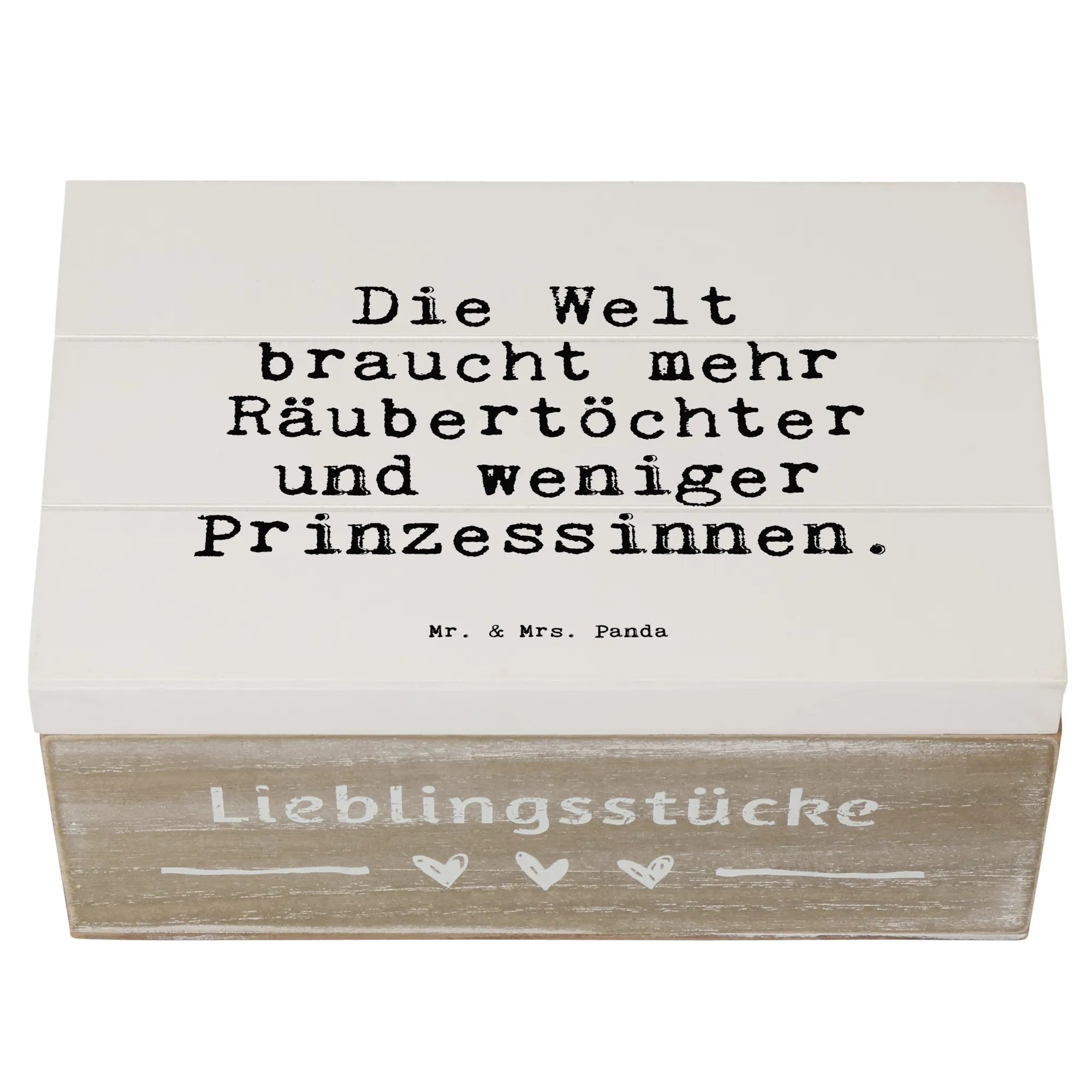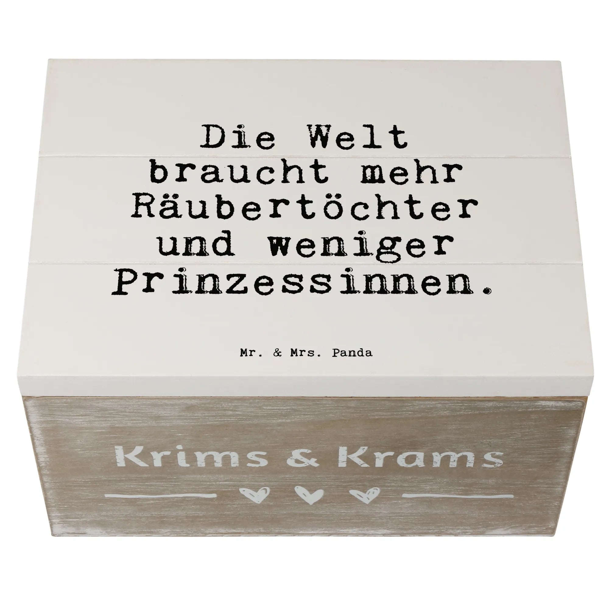 Diese wunderschöne Holzkiste von Mr. & Mrs. Panda ist mehr als nur eine Aufbewahrungsbox - sie ist ein Ort für Deine besten Erinnerungen! Mit dem bezaubernden Spruch 'Die Welt braucht mehr Räubertöchter und weniger Prinzessinnen.' ist sie das perfekte Geschenk für kleine Abenteurerinnen und starke Mädchen.