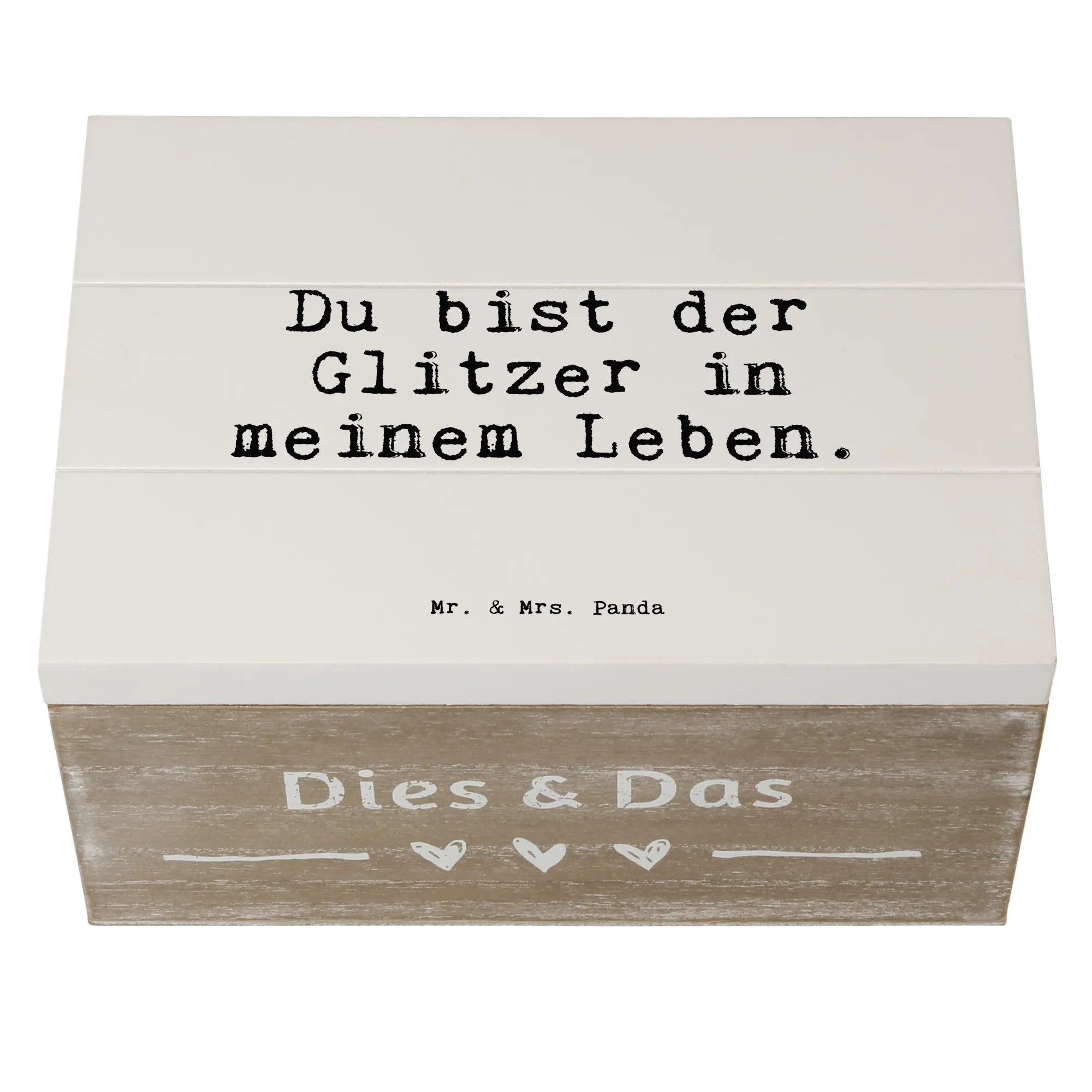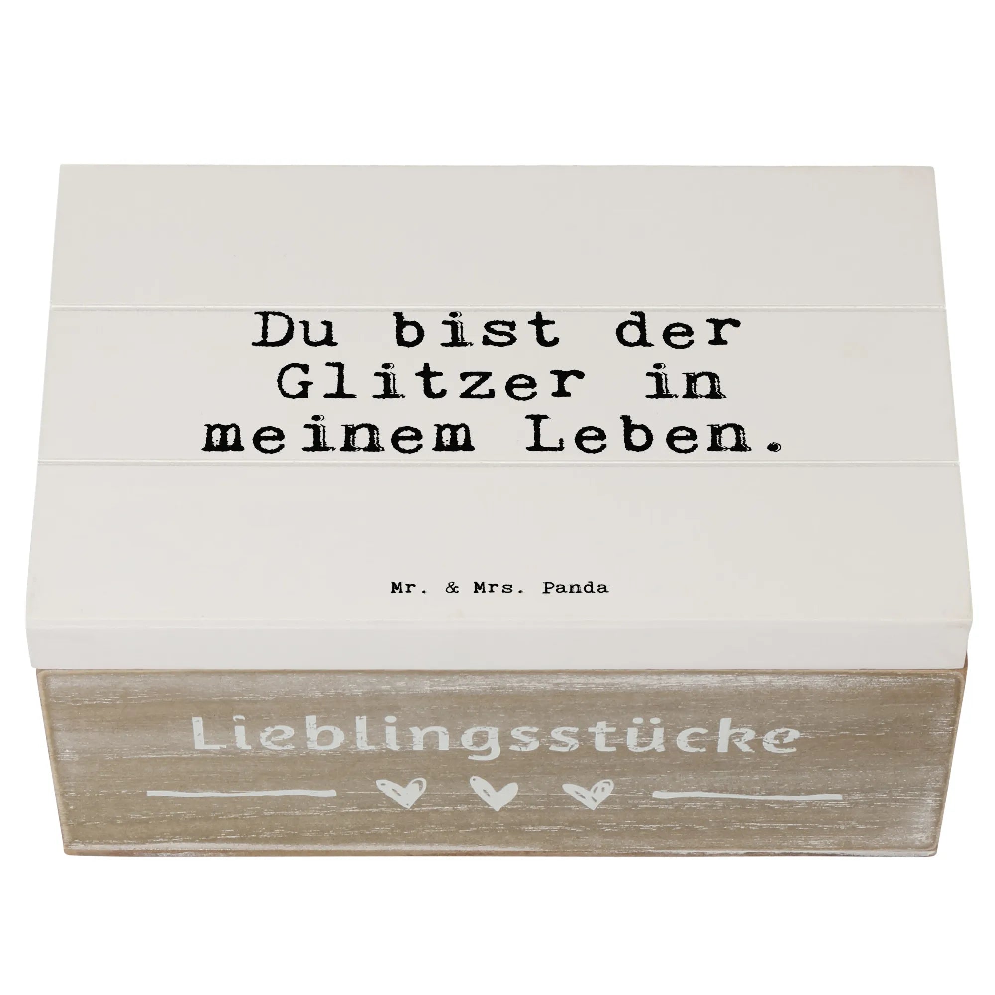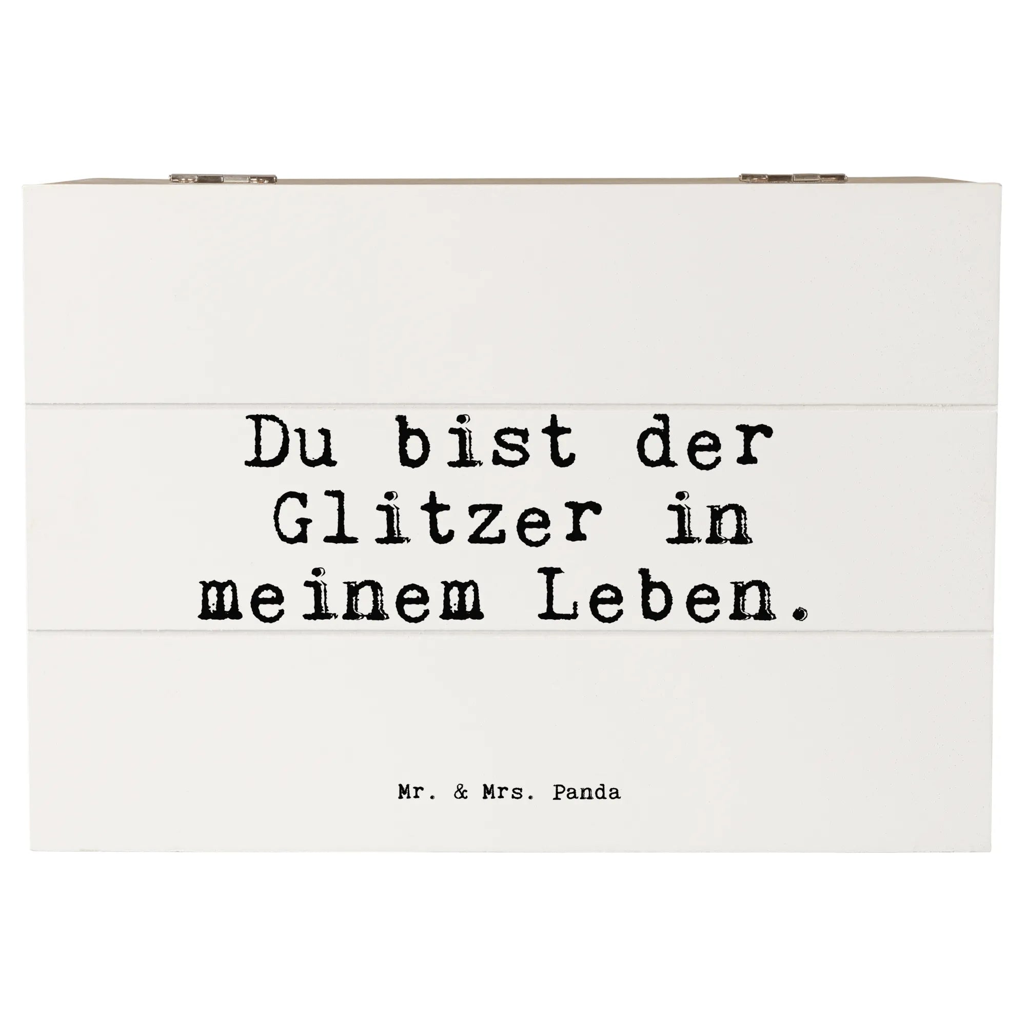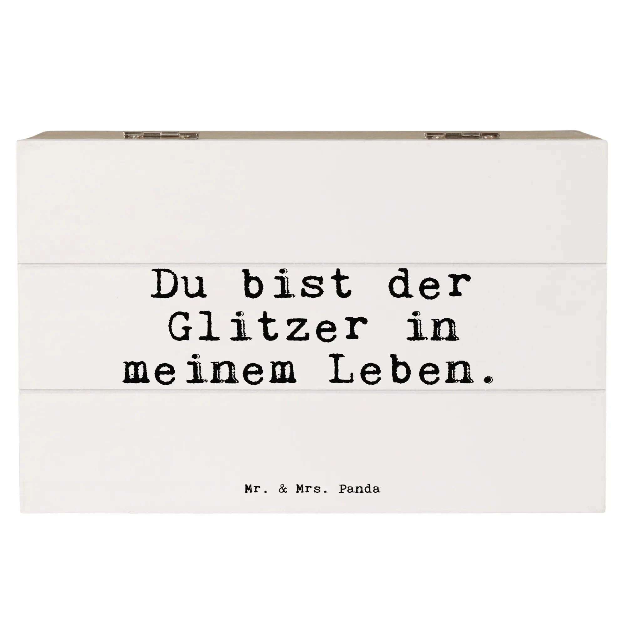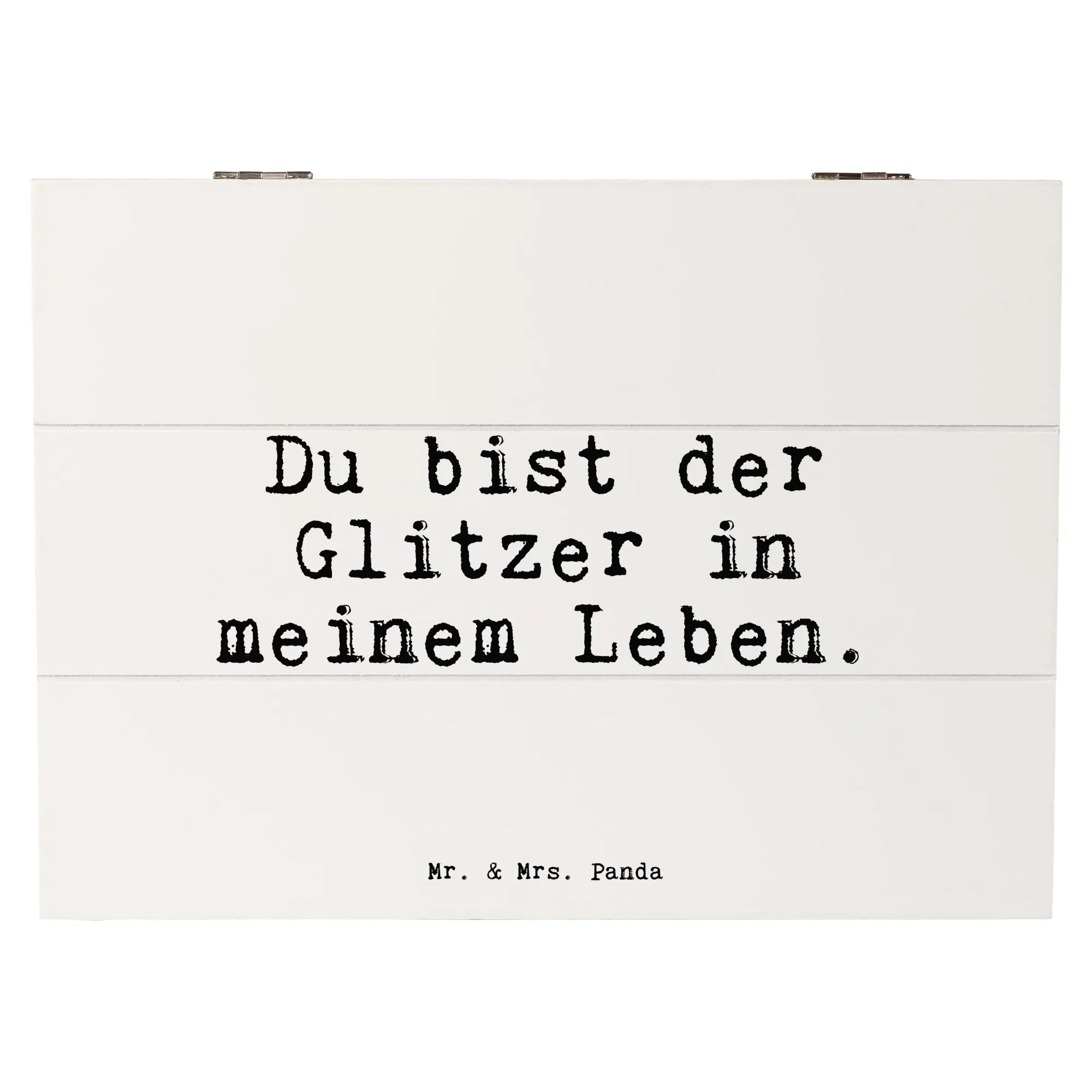 Suchst Du nach einem ganz besonderen Geschenk? Dann ist die Holzkiste "Du bist der Glitzer in meinem Leben" von Mr. & Mrs. Panda genau das Richtige! Diese wunderschöne Kiste ist nicht nur eine praktische Aufbewahrungsbox, sondern auch ein echter Hingucker für jeden Anlass.
