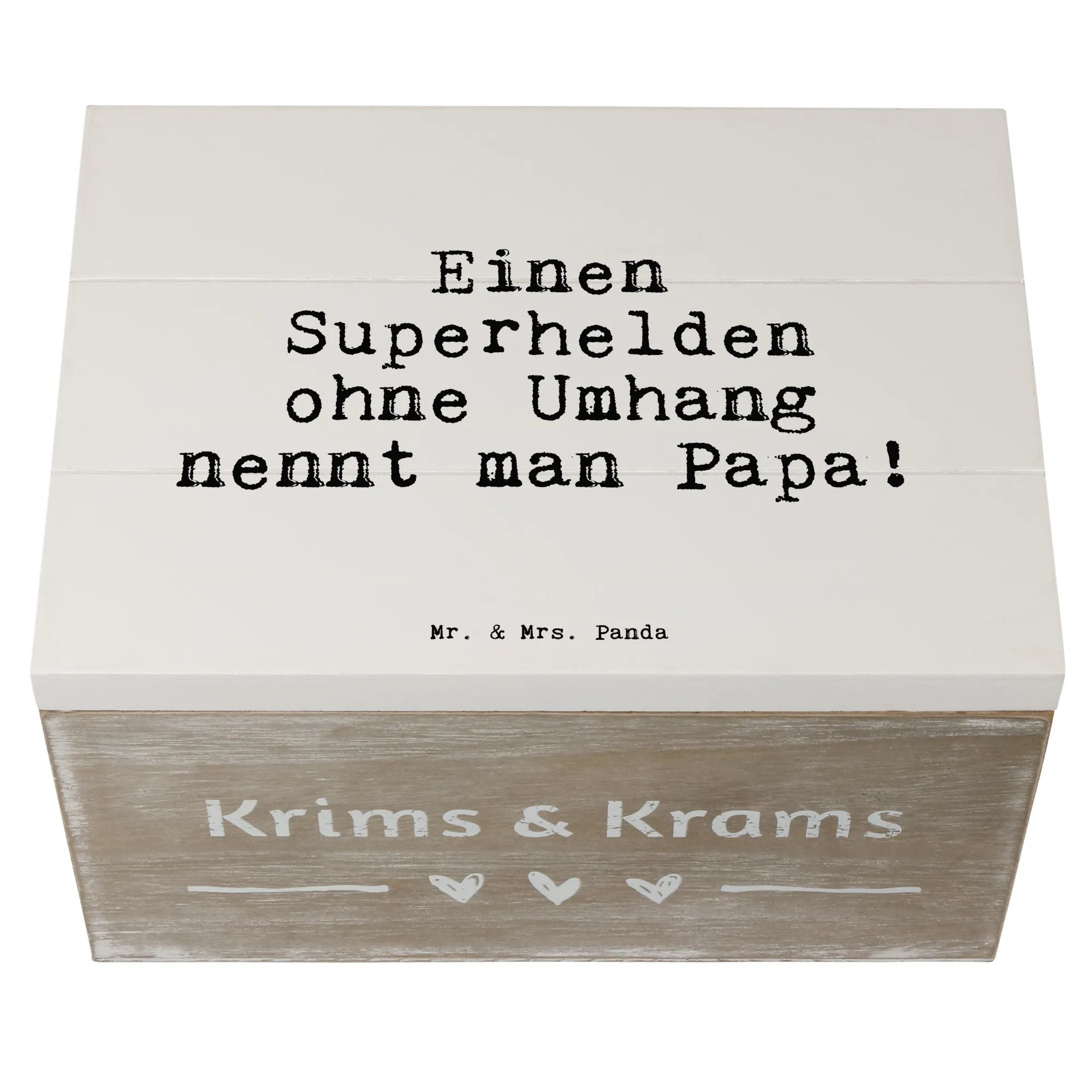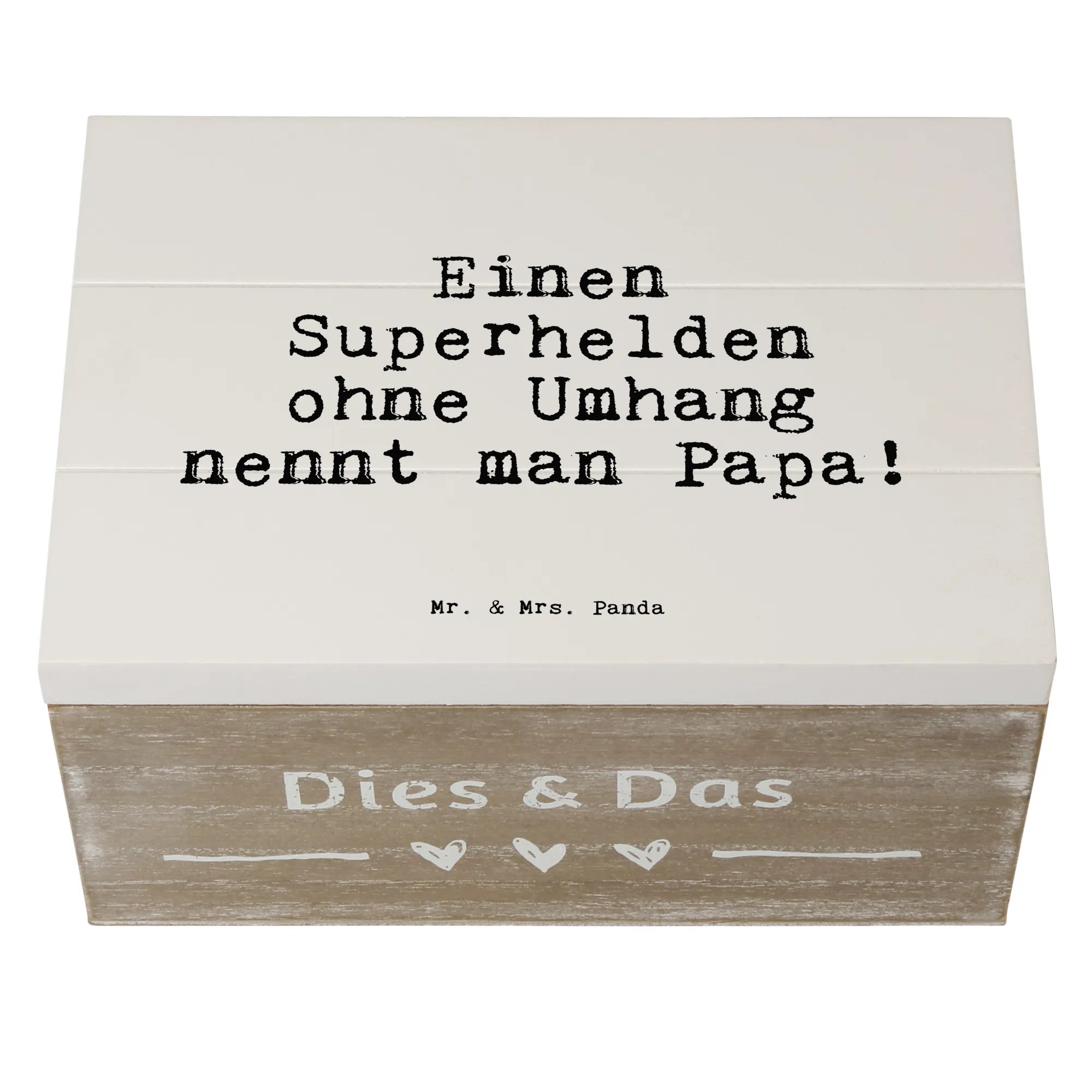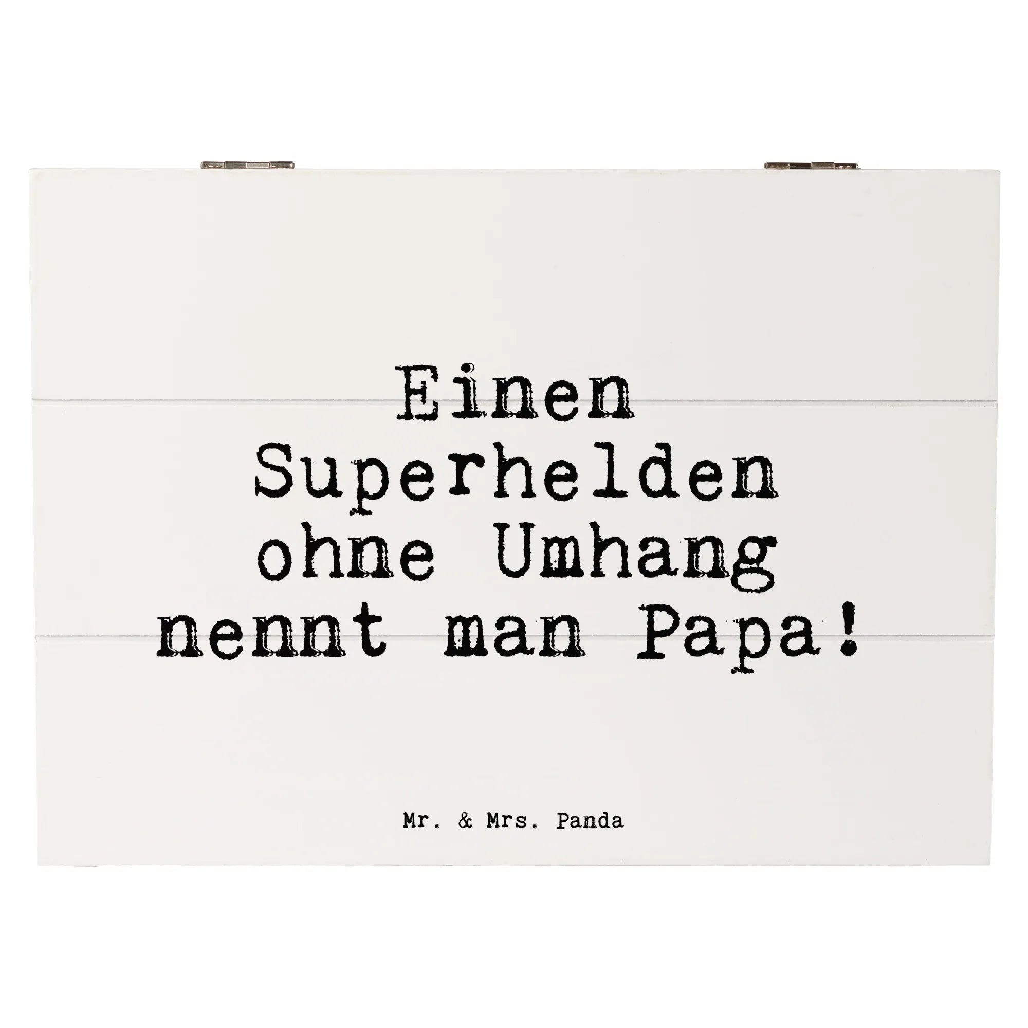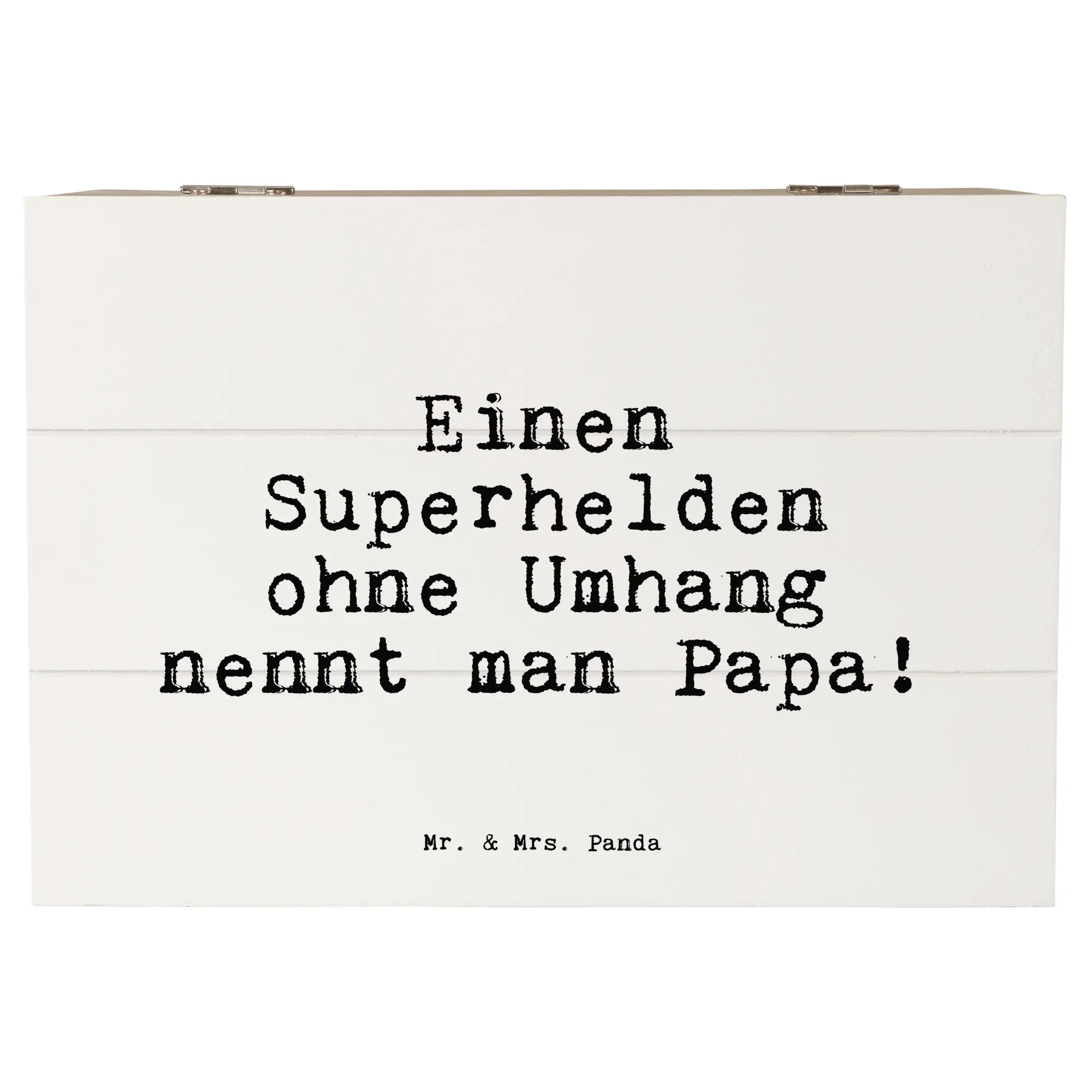 Die wunderschöne Holzkiste von Mr. & Mrs. Panda, bedruckt mit dem liebevollen Spruch 'Einen Superhelden ohne Umhang nennt man Papa!', ist das perfekte Geschenk für alle tollen Väter. Diese zauberhafte Truhe bietet nicht nur Platz für all die kleinen Schätze und Erinnerungen, sondern sieht auch noch richtig gut aus!