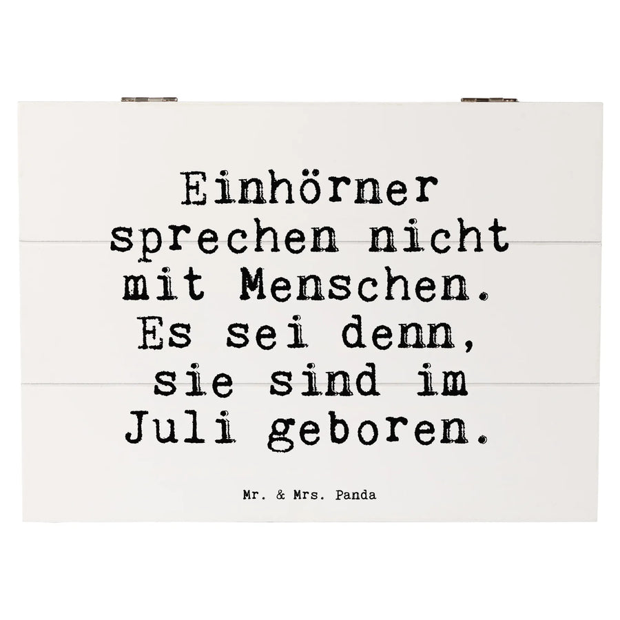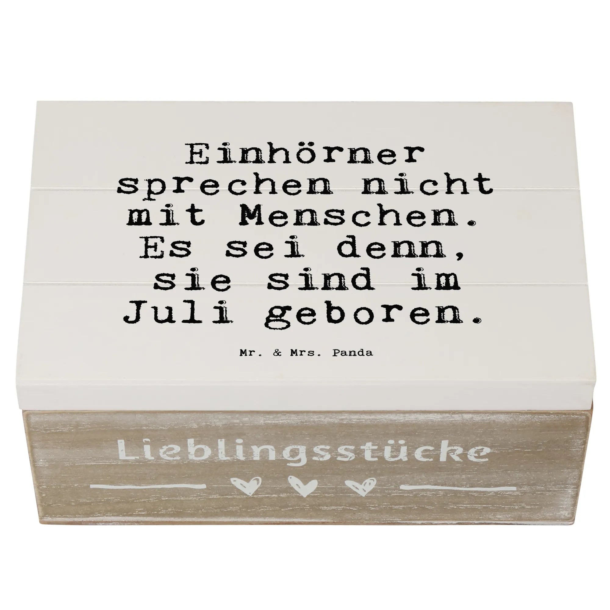 Die wunderschöne Holzkiste von Mr. & Mrs. Panda ist das perfekte Geschenk für alle Einhornliebhaber, besonders für die, die im Juli geboren wurden! Mit dem liebevollen Spruch "Einhörner sprechen nicht mit Menschen. Es sei denn, sie sind im Juli geboren." wird diese Kiste schnell zum Highlight jedes Geschenks.
