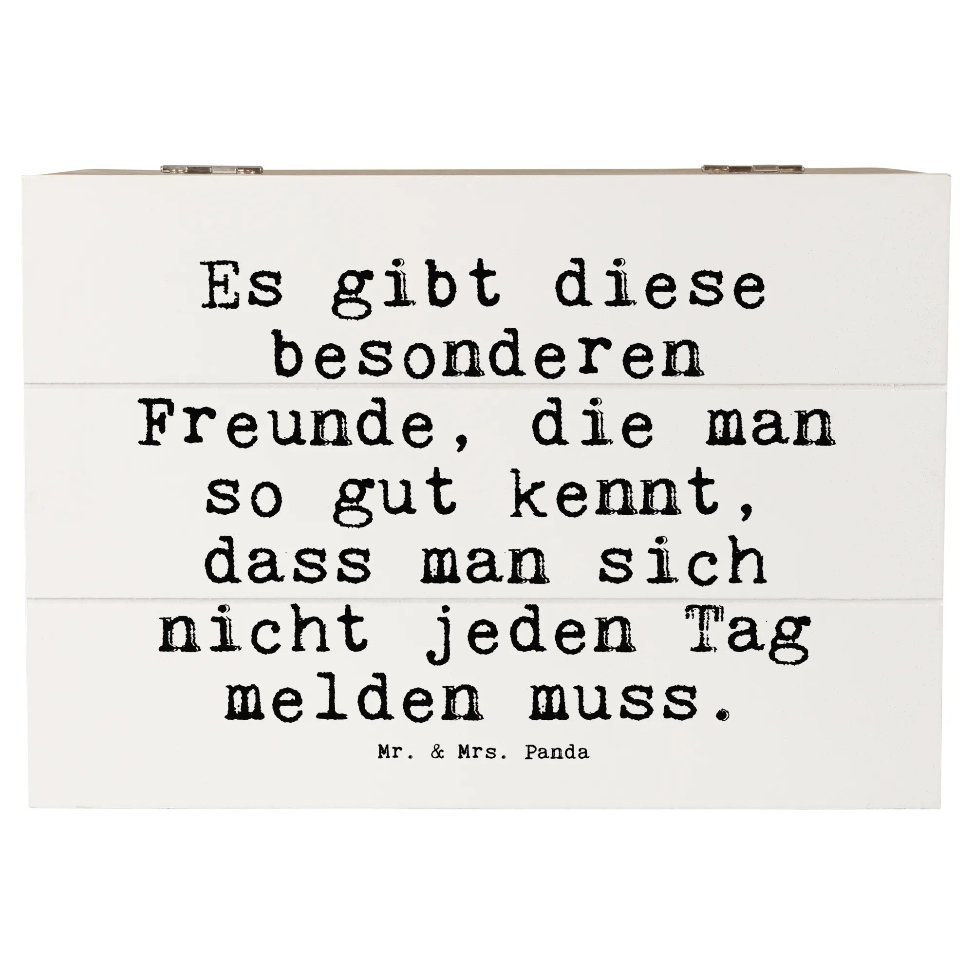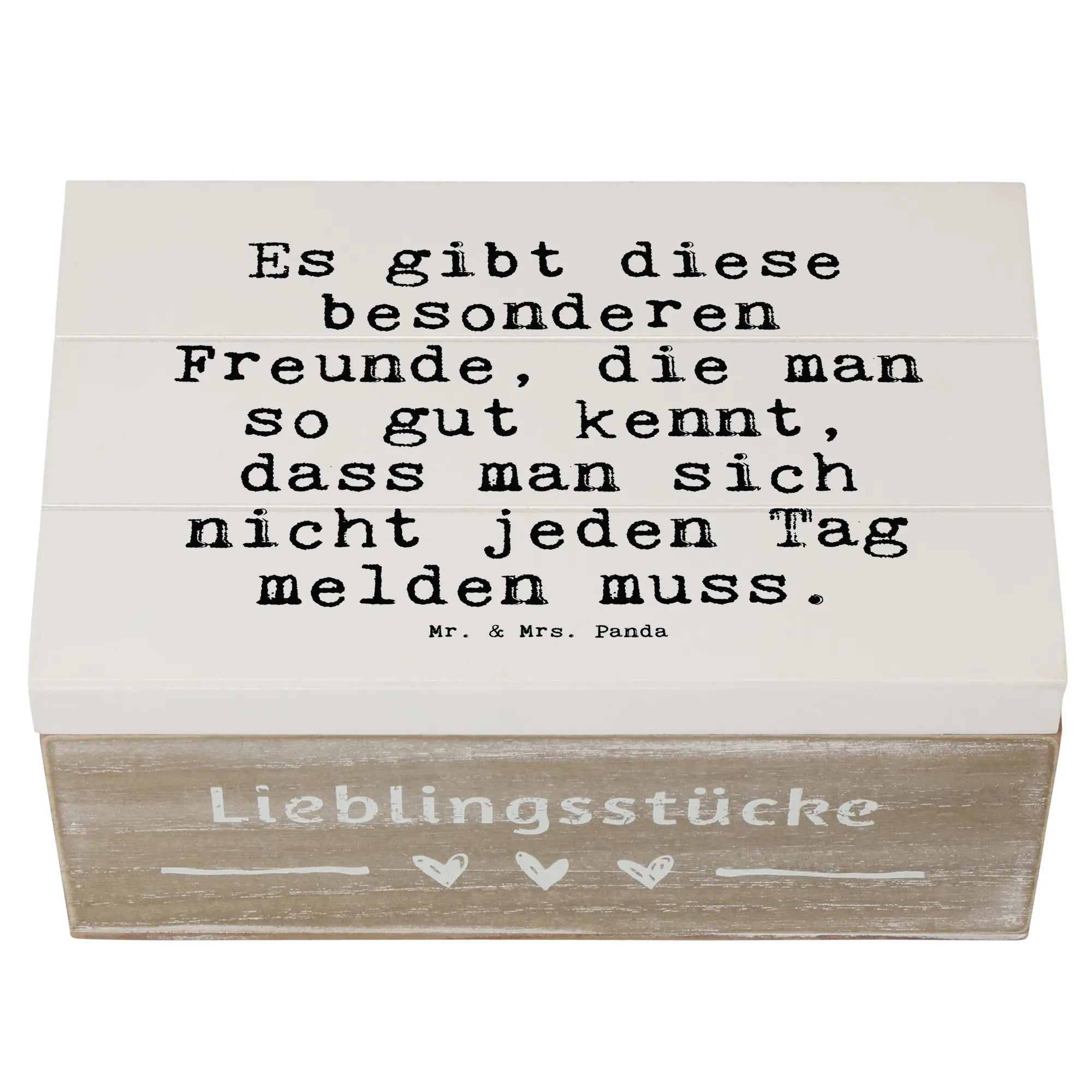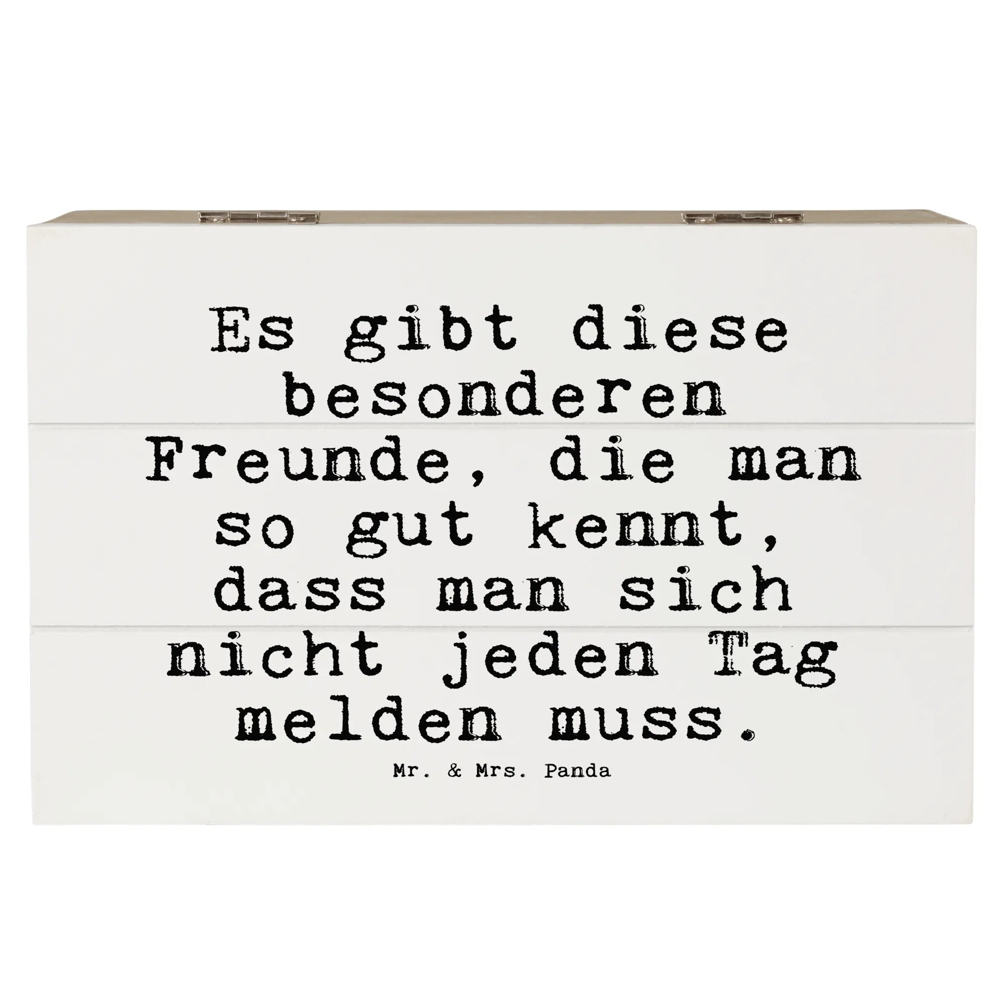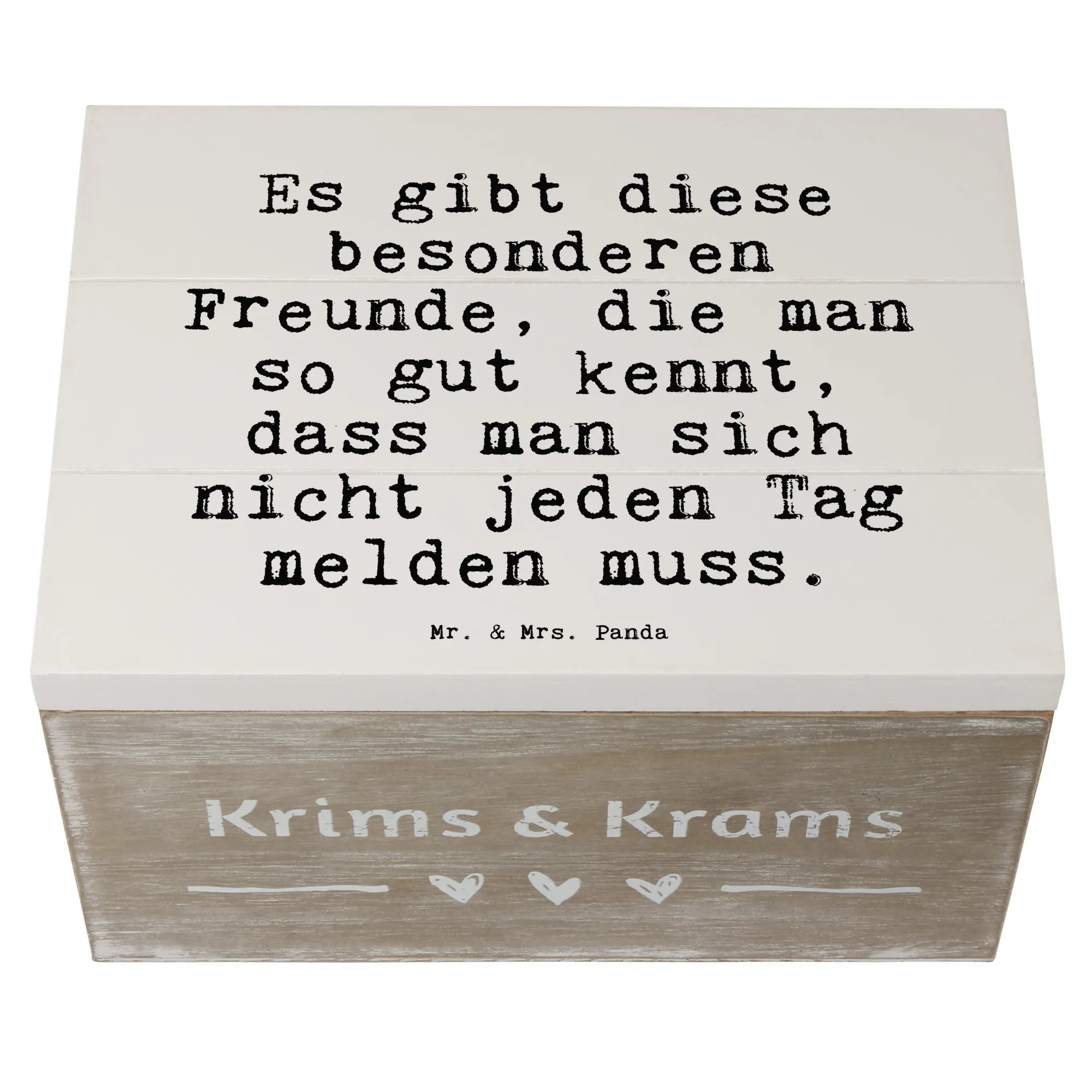 Du suchst nach dem perfekten Geschenk für deine besonderen Freunde? Unsere wunderschöne Holzkiste von Mr. & Mrs. Panda ist genau das, was du brauchst! Mit dem liebevollen Slogan "Es gibt diese besonderen Freunde, die man so gut kennt, dass man sich nicht jeden Tag melden muss" ist sie nicht nur eine dekorative Aufbewahrung, sondern auch ein uraltes Symbol von Freundschaft.
