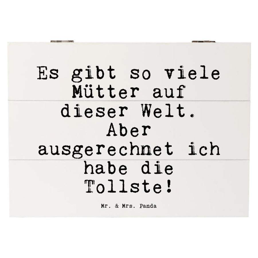 Eine Holzkiste für die tollste Mama: Diese zauberhafte Holzkiste von Mr. & Mrs. Panda trägt den liebevollen Spruch „Es gibt so viele Mütter auf dieser Welt. Aber ausgerechnet ich habe die Tollste!“ und ist das perfekte Geschenk für Muttertag, Geburtstag oder einfach als Dankeschön. Die Aufbewahrungsbox verbindet Gefühl und Funktion und bietet Platz für Erinnerungen, Fotos und kleine Kostbarkeiten.