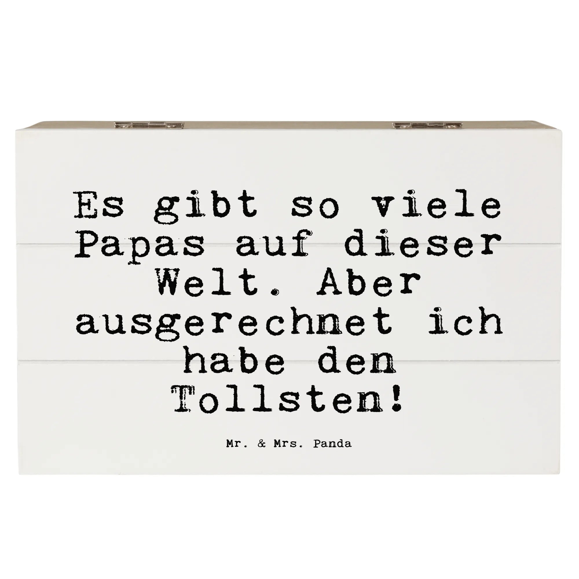 Diese wunderschöne Holzkiste von Mr. & Mrs. Panda ist das perfekte Geschenk für alle, die ihren Vätern eine besondere Freude machen wollen. Mit dem liebevollen Slogan "Es gibt so viele Papas auf dieser Welt. Aber ausgerechnet ich habe den Tollsten!" wird diese Kiste zu einem wertvollen Aufbewahrungsort für einzigartige Erinnerungen. Egal, ob für einen Anlass wie den Vatertag, einen Geburtstag oder einfach als nette Geste – diese Schatzkiste passt immer!