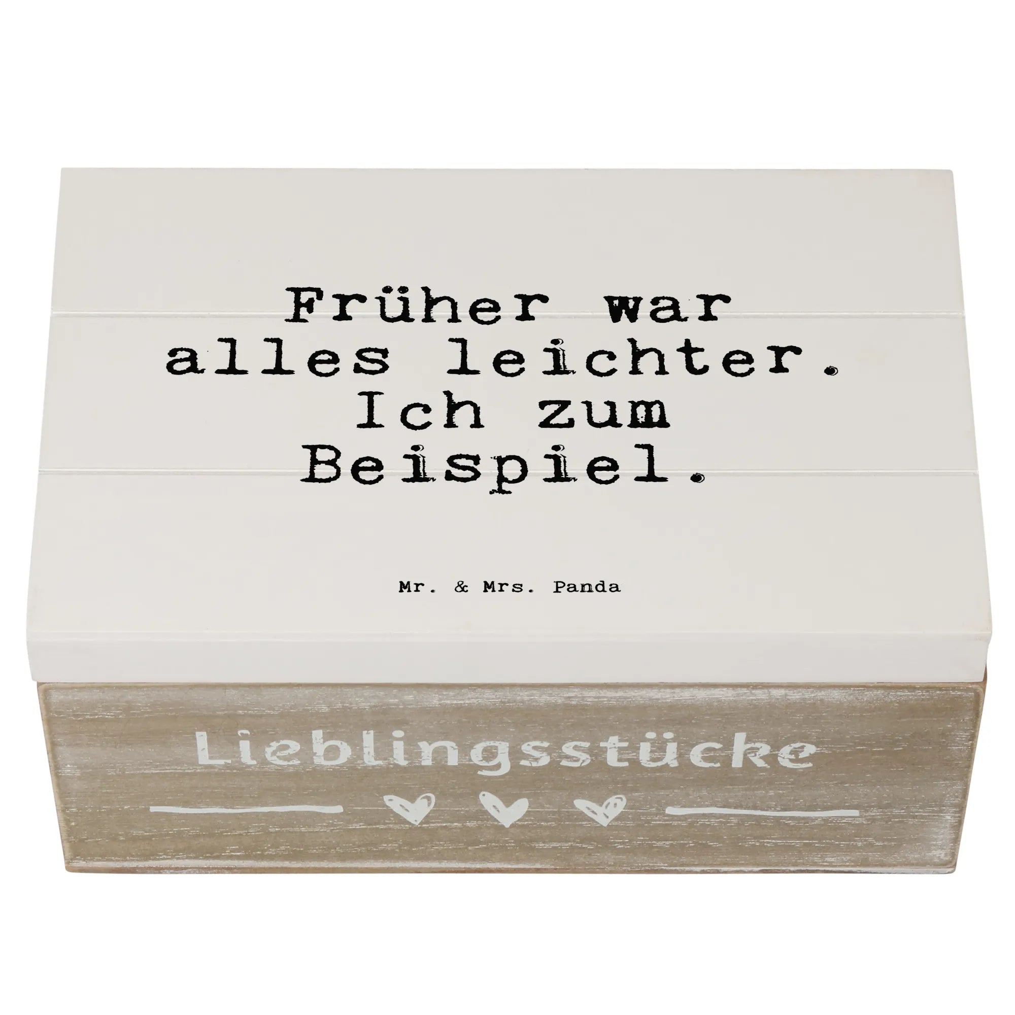 Diese wunderschöne Holzkiste von Mr. & Mrs. Panda ist das perfekte Geschenk für jeden Anlass! Mit dem liebevollen Spruch 'Früher war alles leichter. Ich zum Beispiel.' bringt sie ein Schmunzeln in jedes Zuhause.
