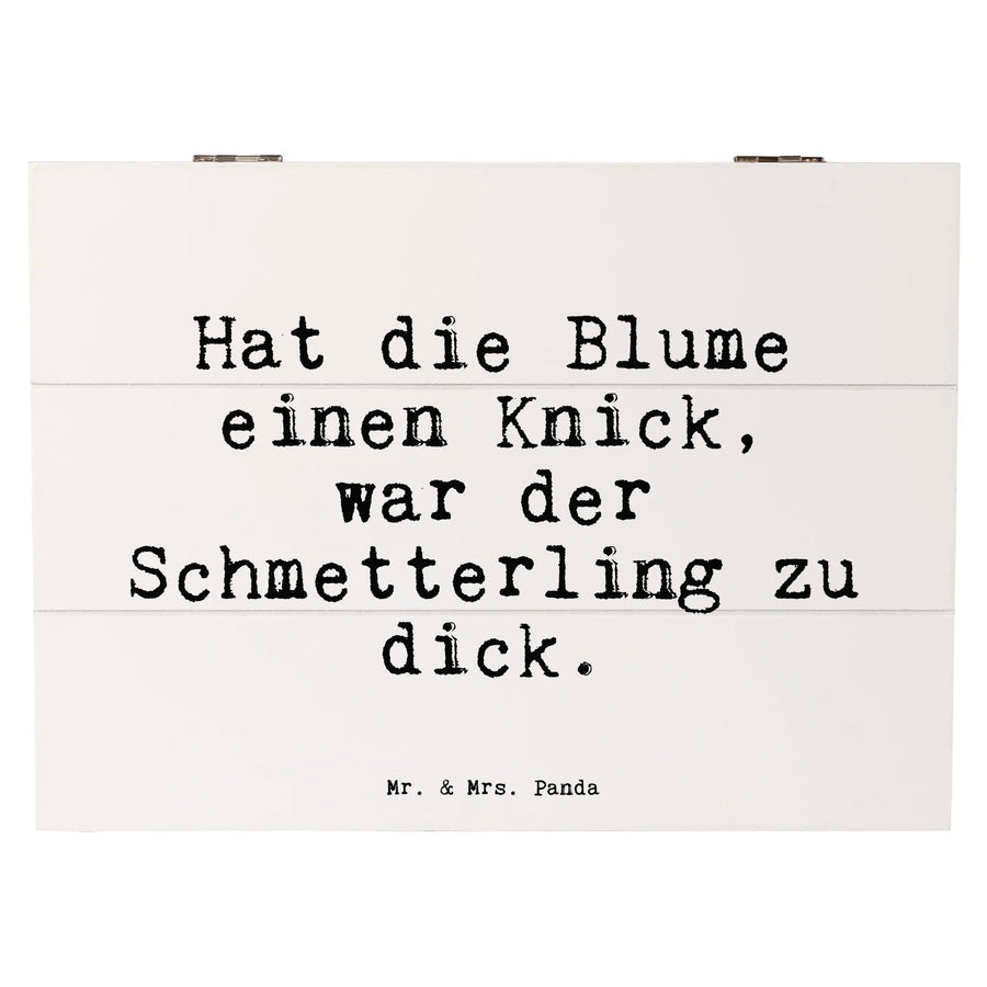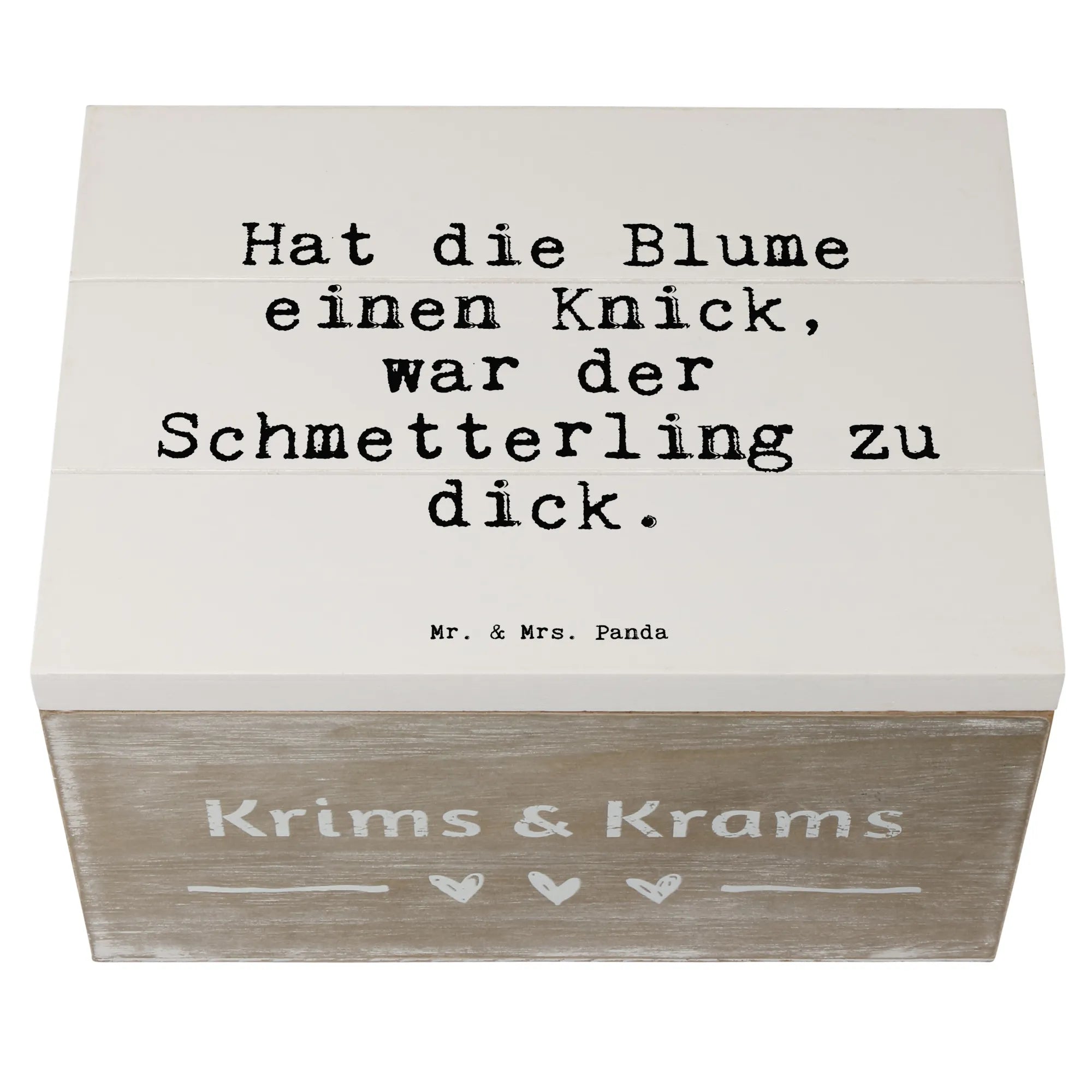 Wunderschöne Holzkiste von Mr. & Mrs. Panda – mit dem frechen Spruch: „Hat die Blume einen Knick, war der Schmetterling zu dick.“ Diese hübsche Schatulle vereint Humor, Stil und Funktionalität und ist perfekt als Geschenk oder für die eigene Aufbewahrung von Erinnerungen.