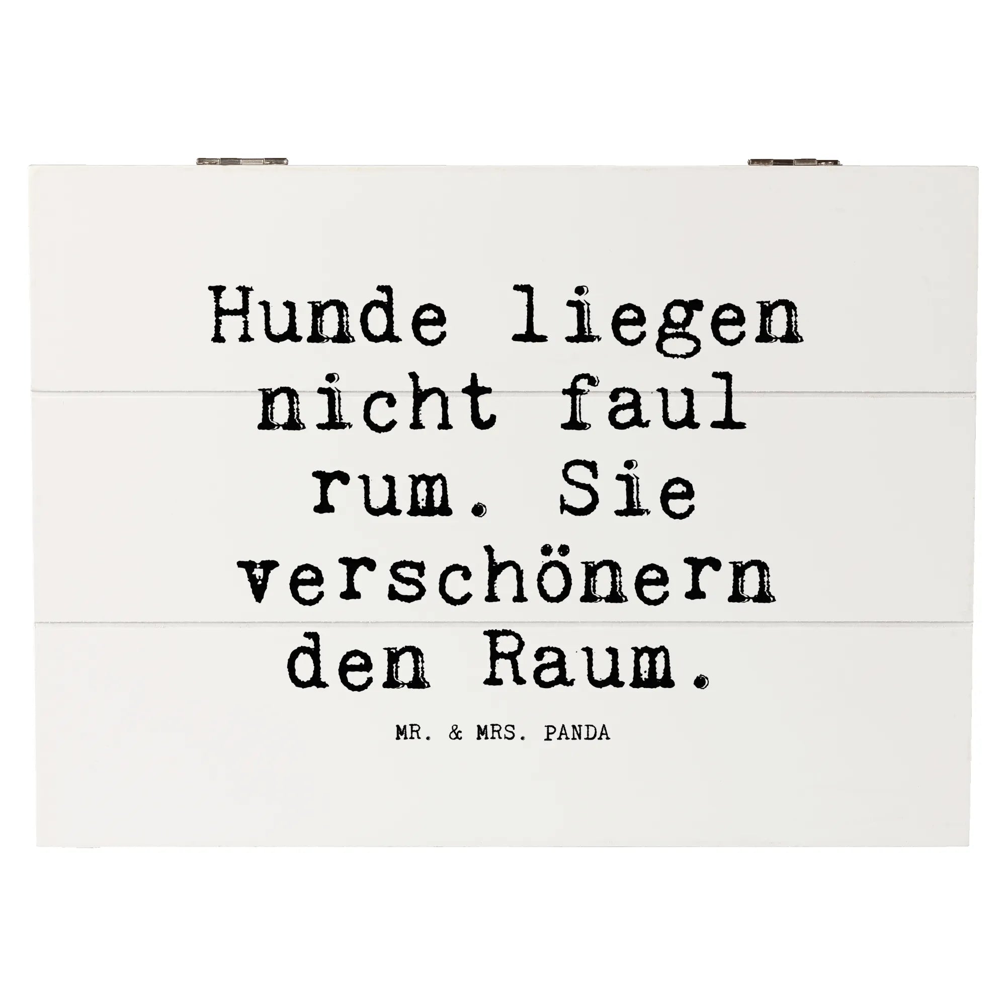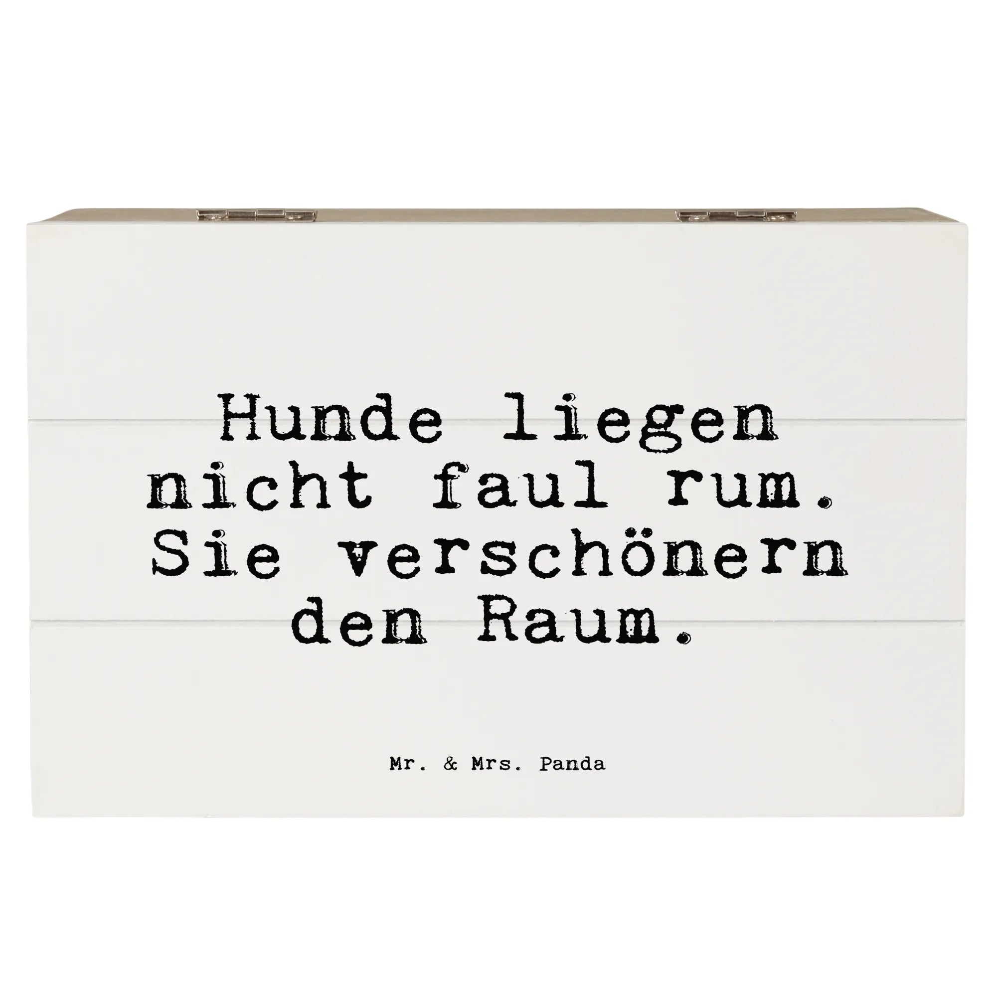 Suchst Du das perfekte Geschenk für einen Hundeliebhaber oder möchtest Du selbst ein stilvolles Accessoire für Dein Zuhause? Dann ist die wunderschöne Holzkiste "Hunde liegen nicht faul rum. Sie verschönern den Raum." von Mr. & Mrs. Panda genau das Richtige für Dich! Diese einzigartige Kiste aus robuster Hartfaser ist nicht nur ein echter Hingucker, sondern auch ein praktischer Aufbewahrungsort für all Deine kleinen Schätze.