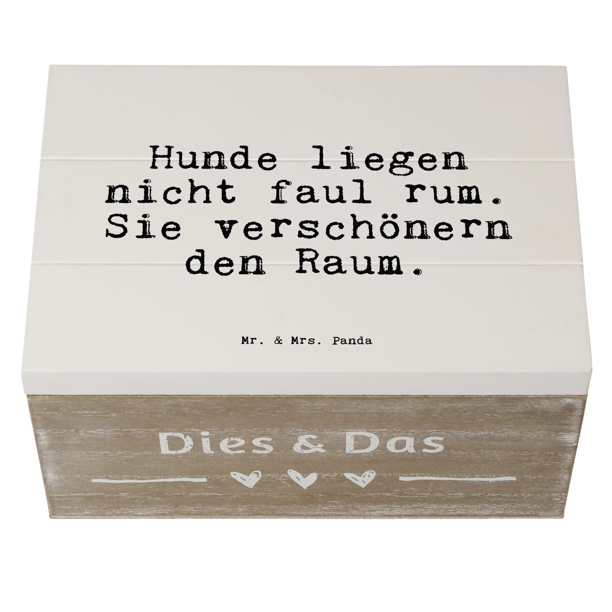Die wunderschöne Holzkiste "Hunde liegen nicht faul rum. Sie verschönern den Raum." von Mr. & Mrs. Panda ist mehr als nur ein Aufbewahrungsort – sie ist ein echtes Schmuckstück für dein Zuhause!