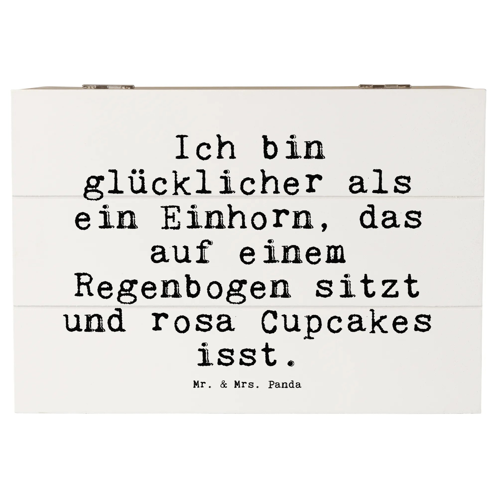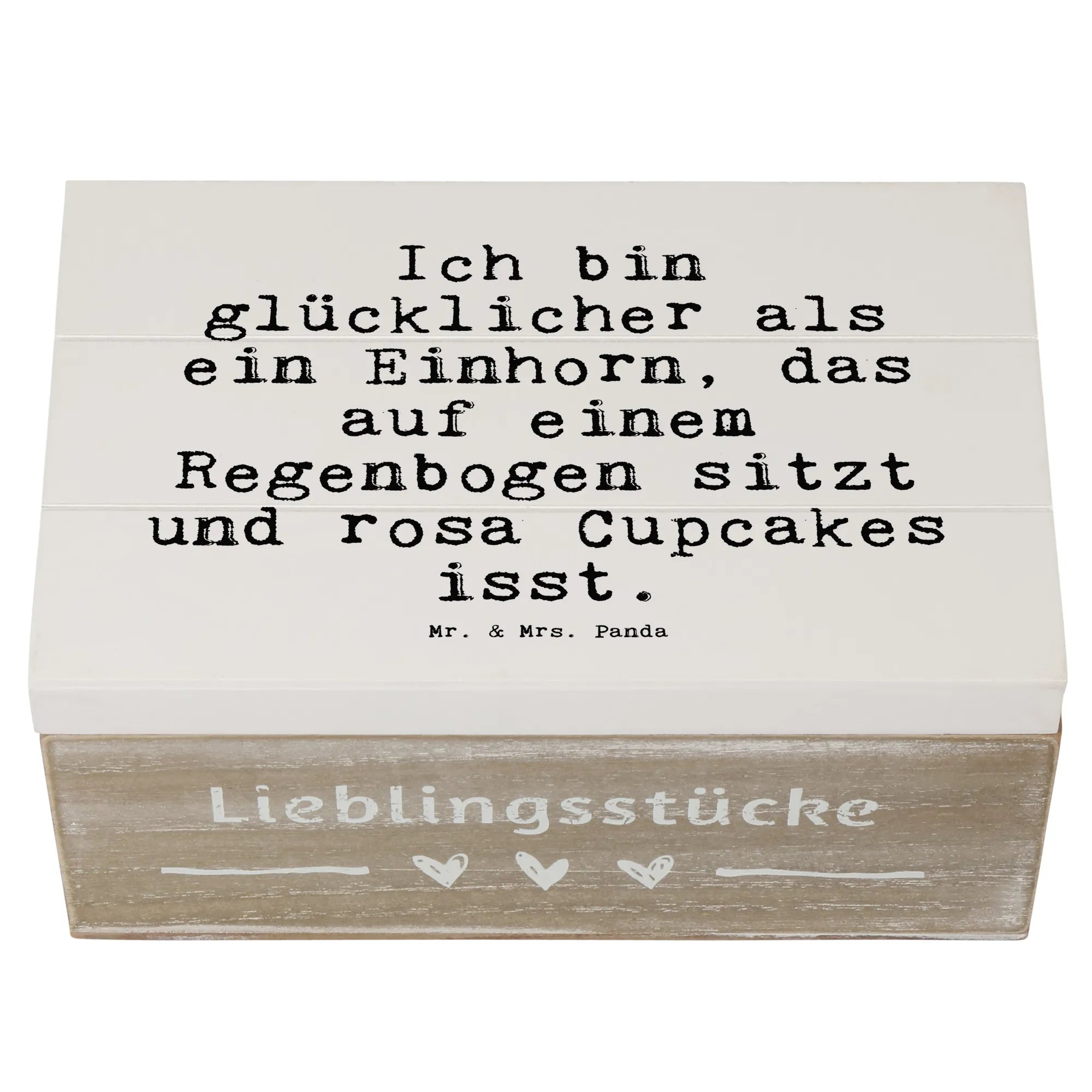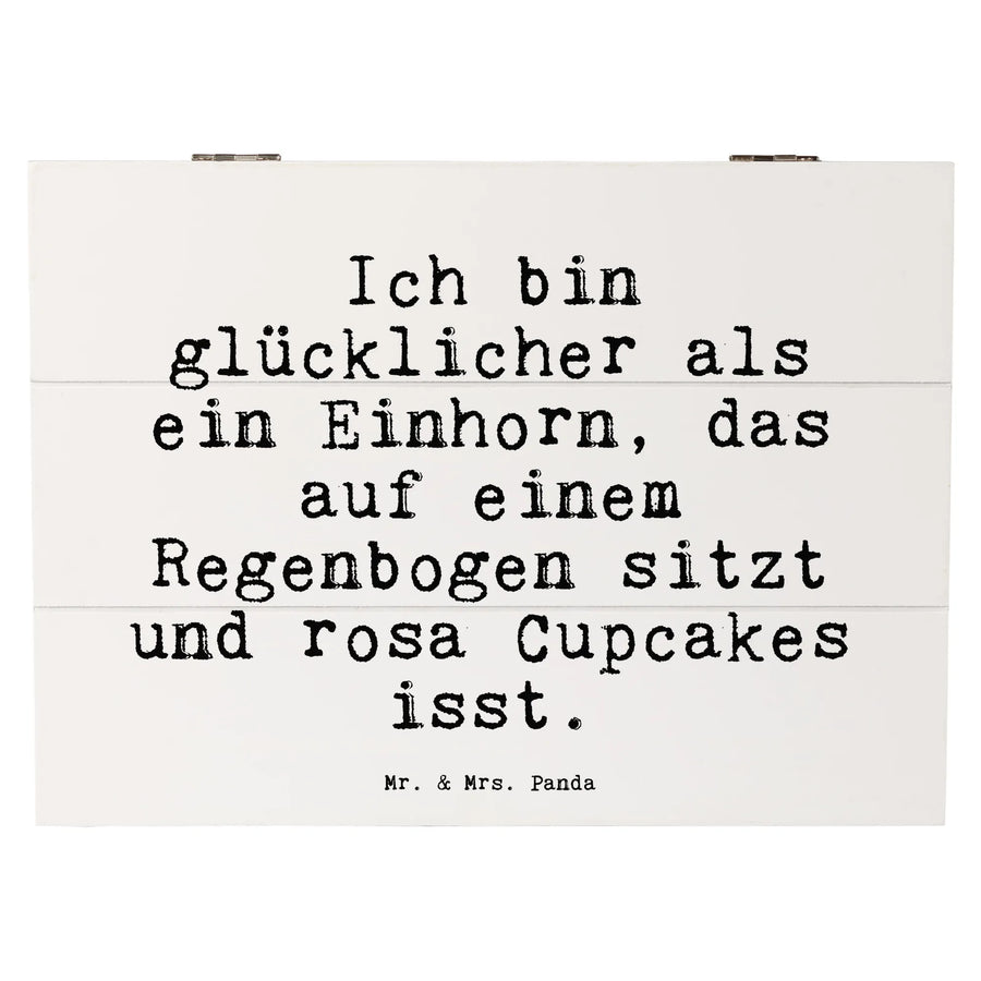 Die wunderschöne Holzkiste "Ich bin glücklicher als ein Einhorn, das auf einem Regenbogen sitzt und rosa Cupcakes isst" von Mr. & Mrs. Panda ist der perfekte Aufbewahrungsort für all deine kostbaren Erinnerungen!