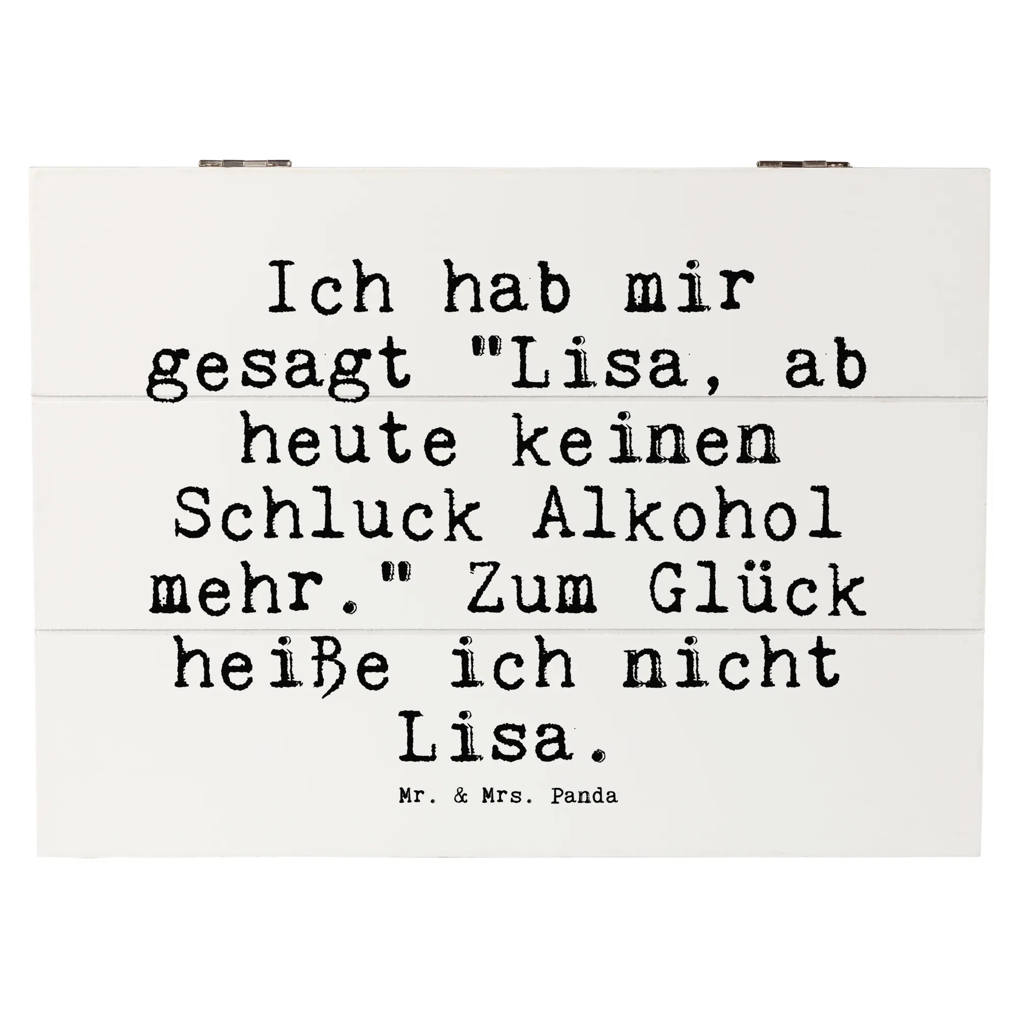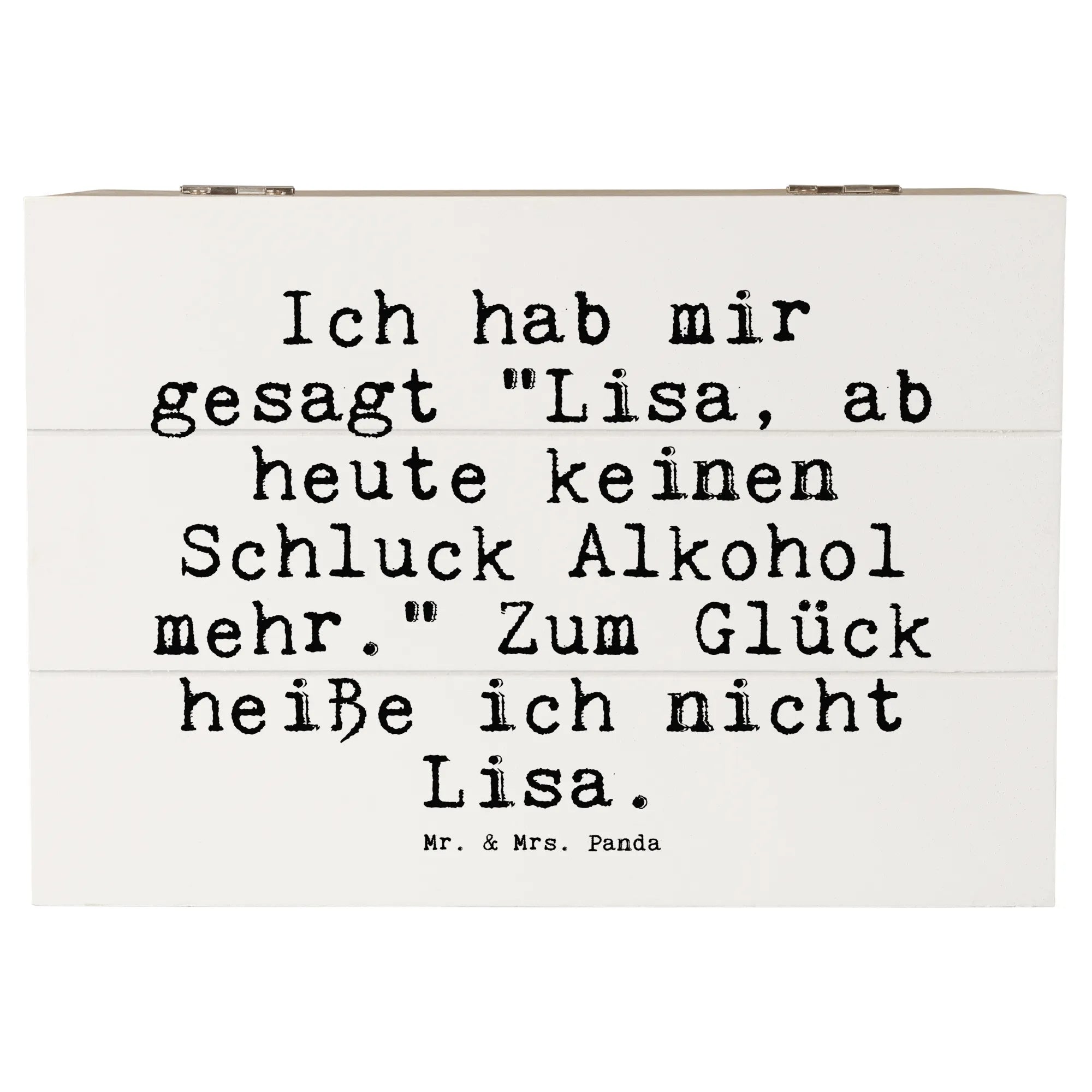 Suchst du nach dem perfekten Geschenk für deine beste Freundin oder eine liebe Frau? Unsere wunderschöne Holzkiste mit dem Spruch "Ich hab mir gesagt 'Lisa, ab heute keinen Schluck Alkohol mehr.' Zum Glück heiße ich nicht Lisa." ist genau das Richtige! Diese hübsche Kiste von Mr. & Mrs. Panda bietet nicht nur genügend Platz für all deine wertvollen Erinnerungen, sondern sorgt auch für ein Schmunzeln beim Beschenkten. Ganz gleich, ob für einen besonderen Anlass wie einen Geburtstag, einen Junggesellenabschied oder einfach als nette Geste – diese Kiste ist vielseitig einsetzbar!