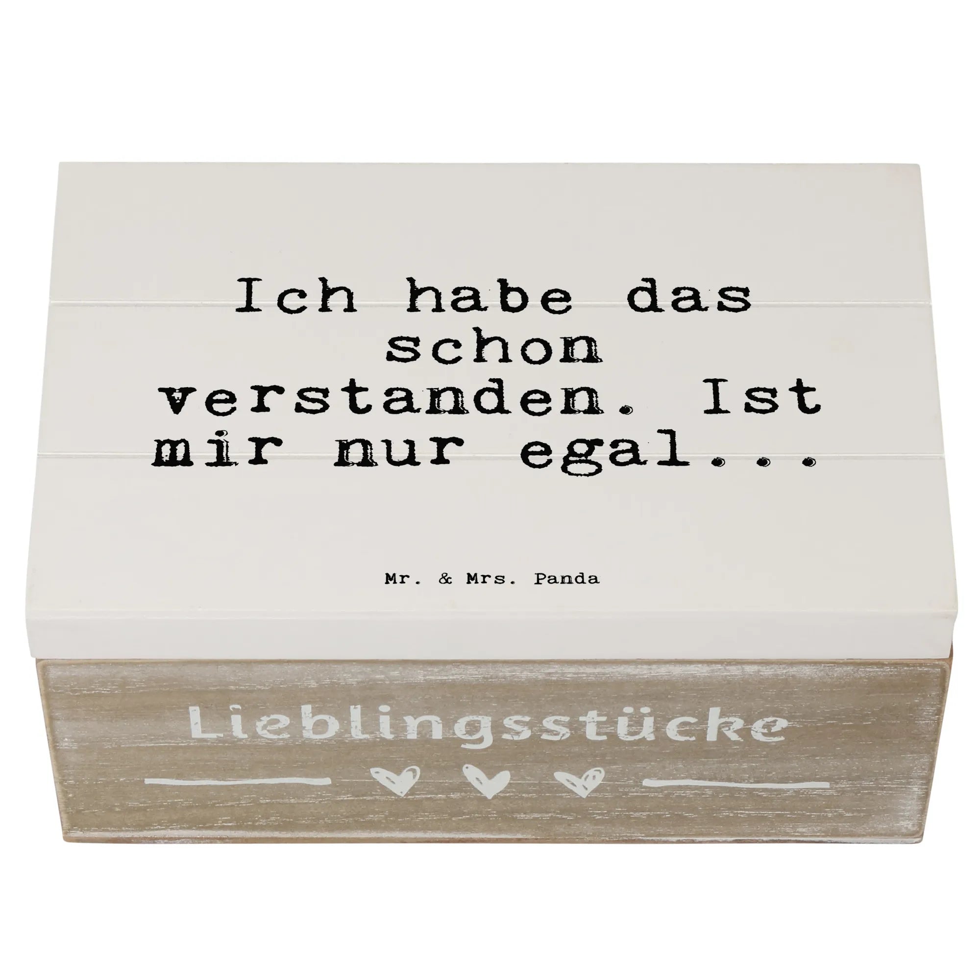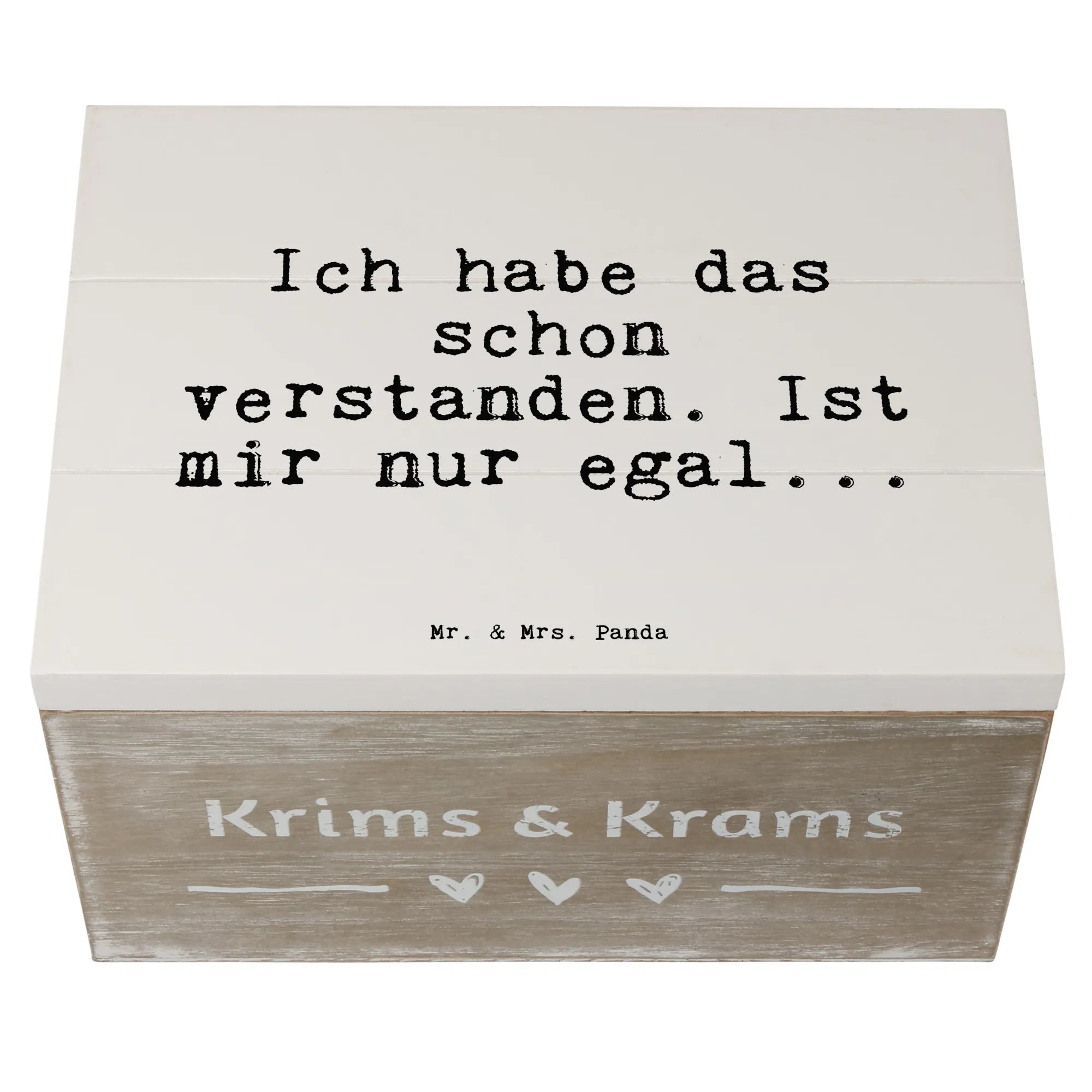 Diese wunderschöne Holzkiste von Mr. & Mrs. Panda ist das perfekte Geschenk für viele Anlässe! Mit dem charmanten Spruch 'Ich habe das schon verstanden. Ist mir nur egal...' sorgt sie bestimmt für Schmunzeln und Freude. Ideal als Erinnerungskiste für Deine tollen Kindheitserinnerungen, Hochzeitsfotos oder andere kostbare Schätze – diese Kiste ist nicht nur praktisch, sondern auch ein echter Hingucker.