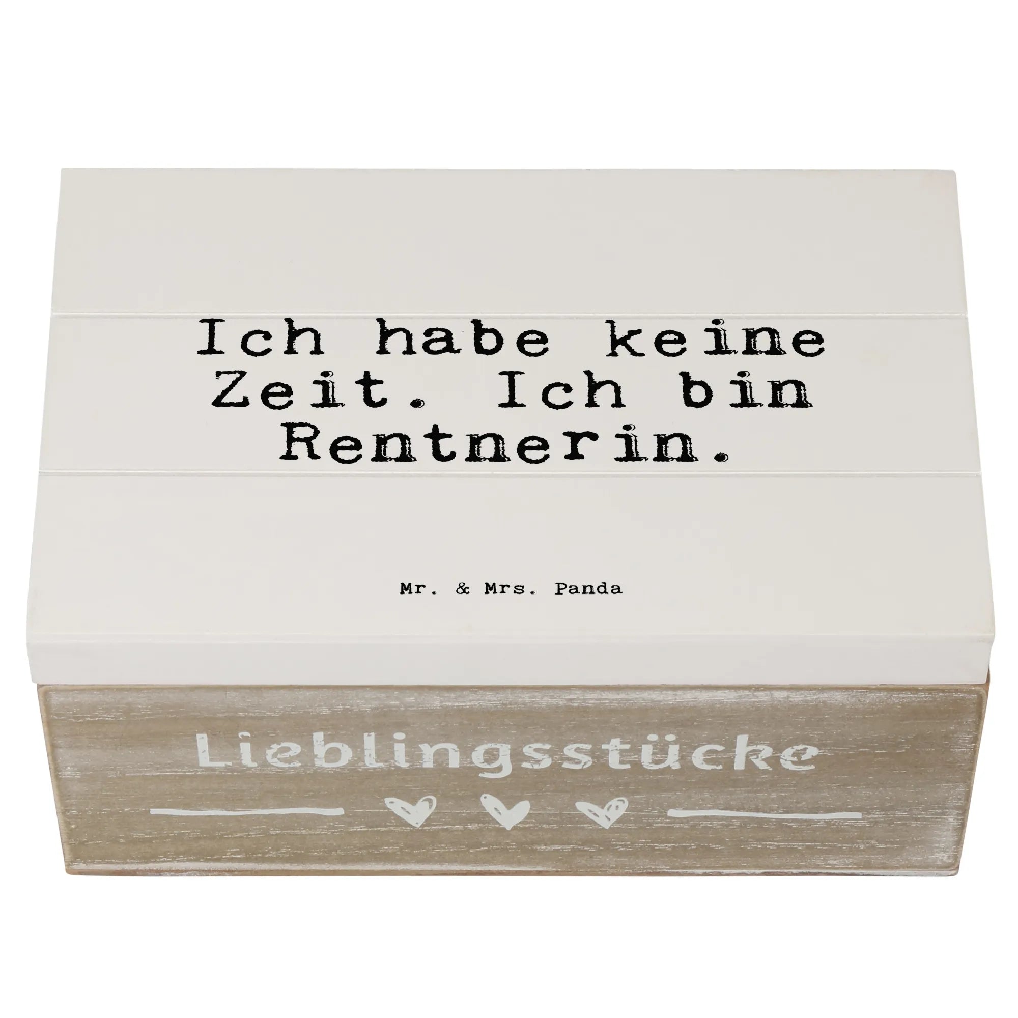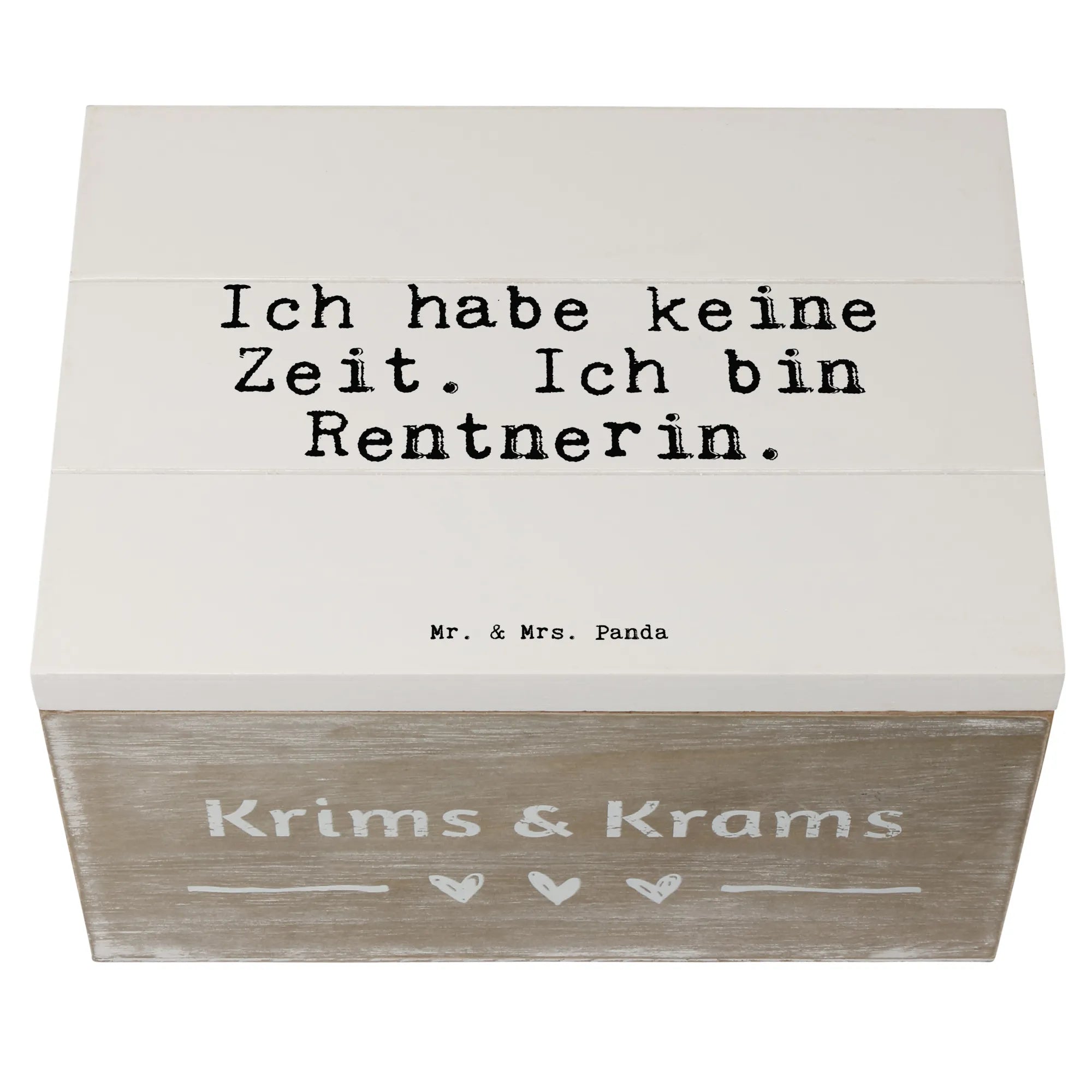 Die wunderschöne Holzkiste "Ich habe keine Zeit. Ich bin Rentnerin." von Mr. & Mrs. Panda ist das perfekte Geschenk für alle, die in den Ruhestand gehen. Sie bietet nicht nur eine stilvolle Aufbewahrung für persönliche Schätze, sondern bringt auch die Bedeutung des Genießens der freien Zeit zum Ausdruck.