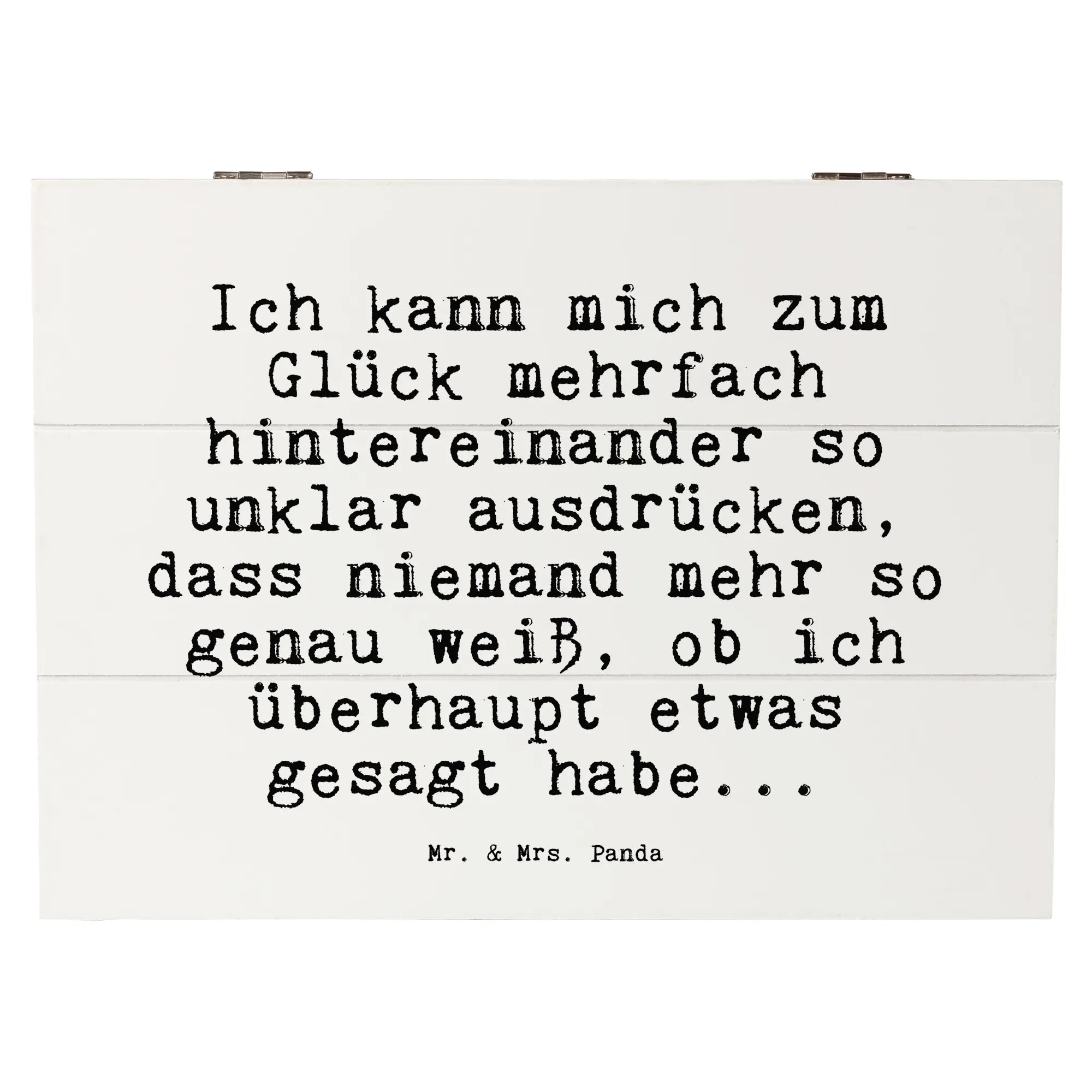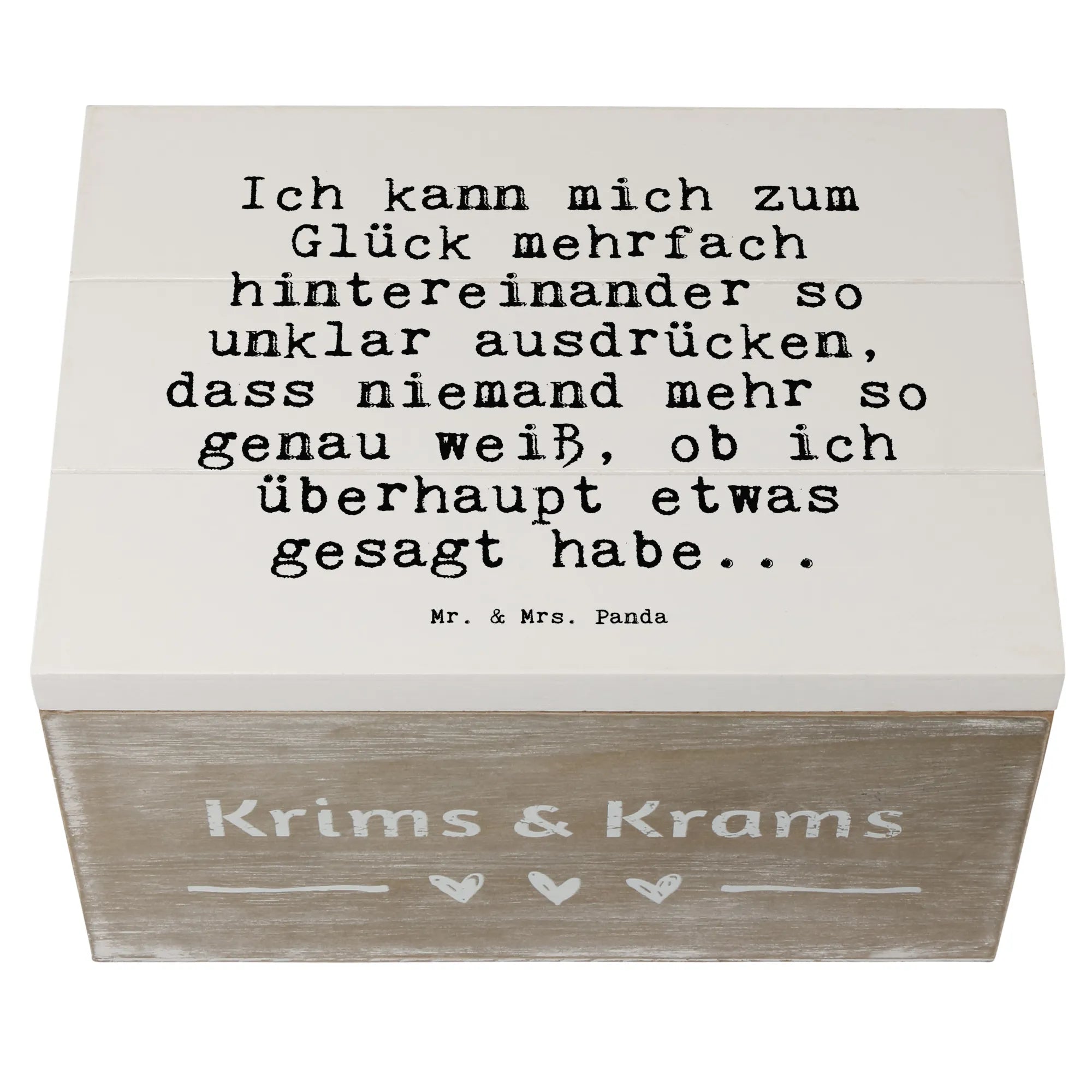 Die wunderschöne Holzkiste von Mr. & Mrs. Panda mit dem Spruch 'Ich kann mich zum Glück mehrfach hintereinander so unklar ausdrücken, dass niemand mehr so genau weiß, ob ich überhaupt etwas gesagt habe...' ist das perfekte Geschenk für all jene, die Humor und Stil schätzen. Diese Kiste ist nicht nur ein Blickfang, sondern auch extrem funktional.