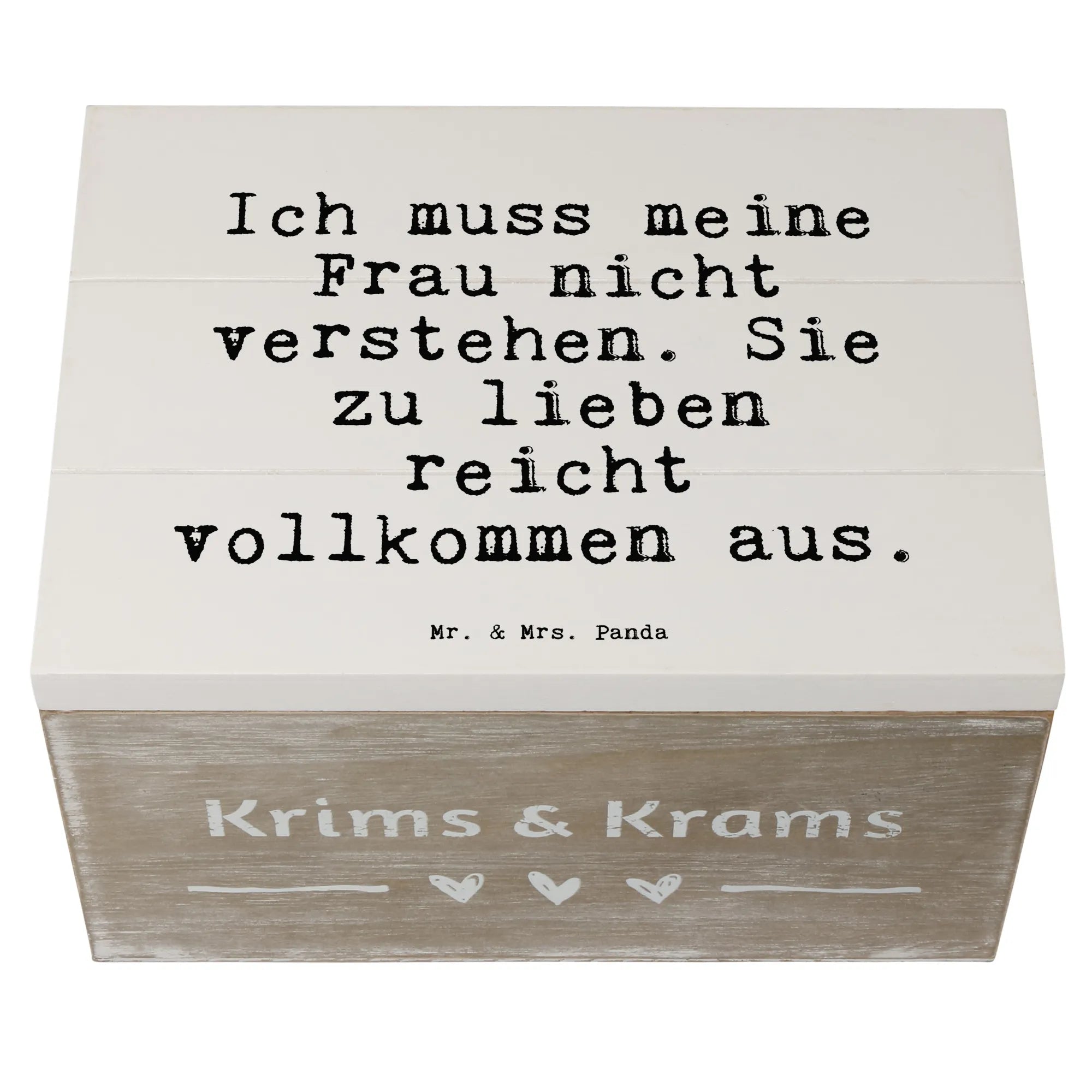 Du suchst das perfekte Geschenk für deinen Lieblingsmenschen? Diese bezaubernde Holzkiste von Mr. & Mrs. Panda ist nicht nur funktional, sondern auch ein echter Blickfang! Mit dem liebevollen Spruch "Ich muss meine Frau nicht verstehen. Sie zu lieben reicht vollkommen aus." zaubert sie jedem ein Lächeln ins Gesicht.