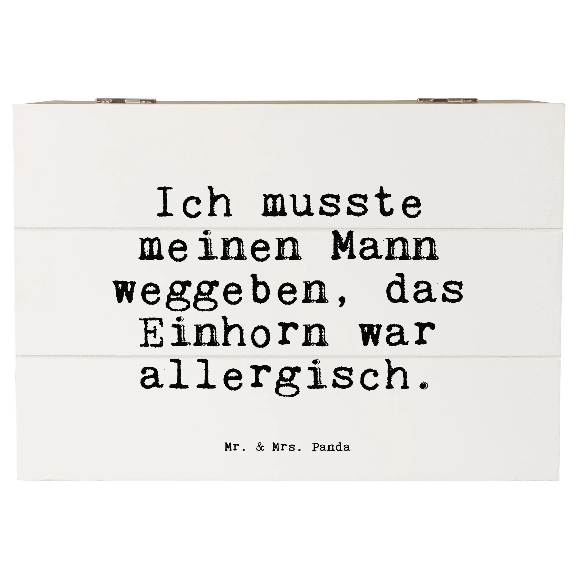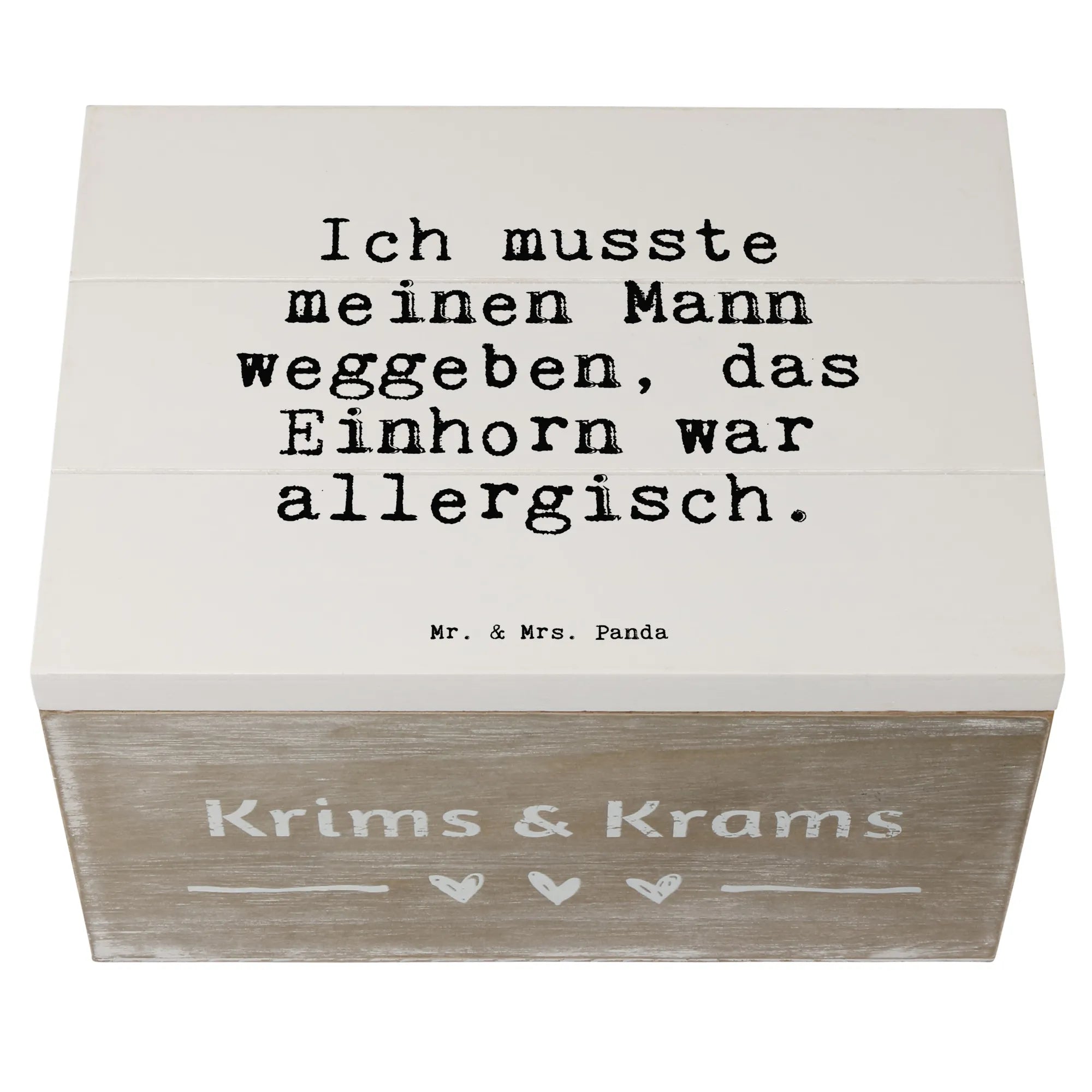 Die wunderschöne Holzkiste von Mr. & Mrs. Panda mit dem witzigen Spruch "Ich musste meinen Mann weggeben, das Einhorn war allergisch." ist der perfekte Aufbewahrungsort für all deine wertvollen Schätze!